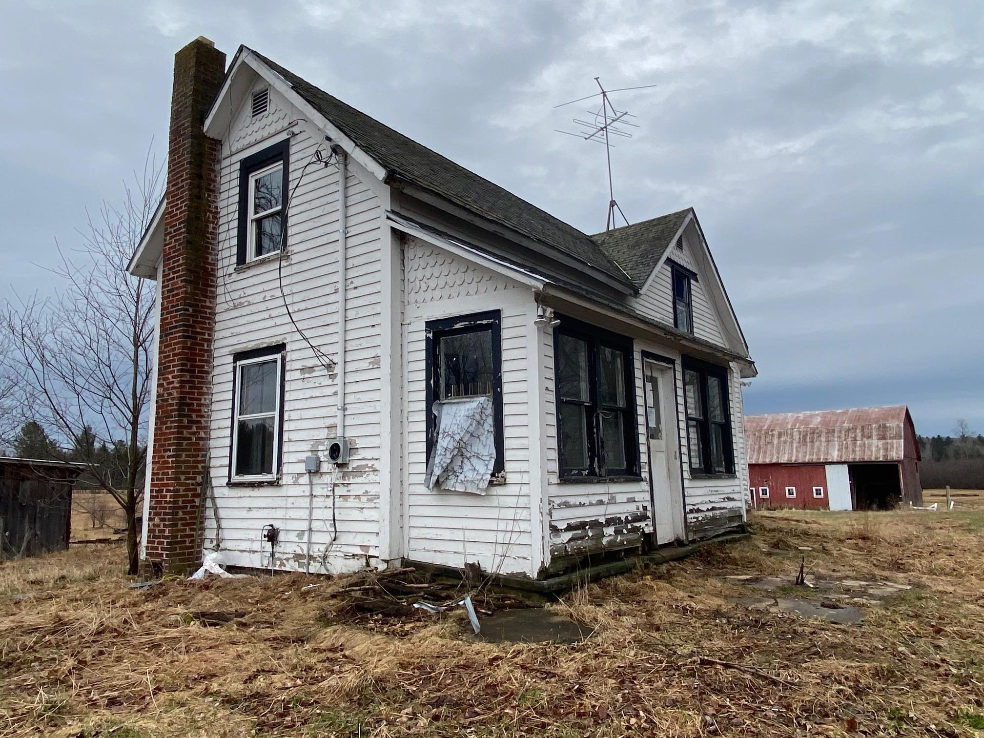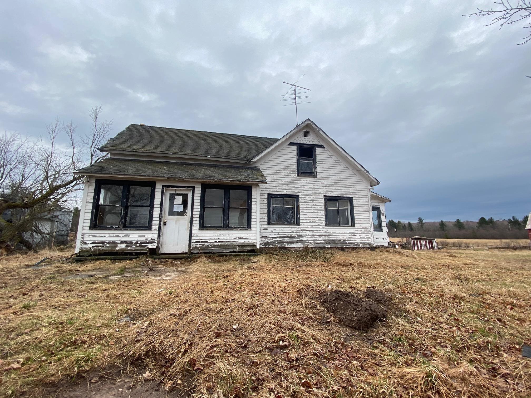 Looking for land and a project? This one has both! This 3 BR, 2 BA home sits on 10 acres and is being sold strictly as-is. The house is in very poor condition and likely a tear down but the property holds potential for the right buyer. Two outbuildings may be salvageable: a 24x30 pole building and a 45x26 barn offering a head start of storage, workshop space, or future development. Some of the rooms in the home are missing flooring. This is an REO property and all potential buyers must sign a release before entering the property.