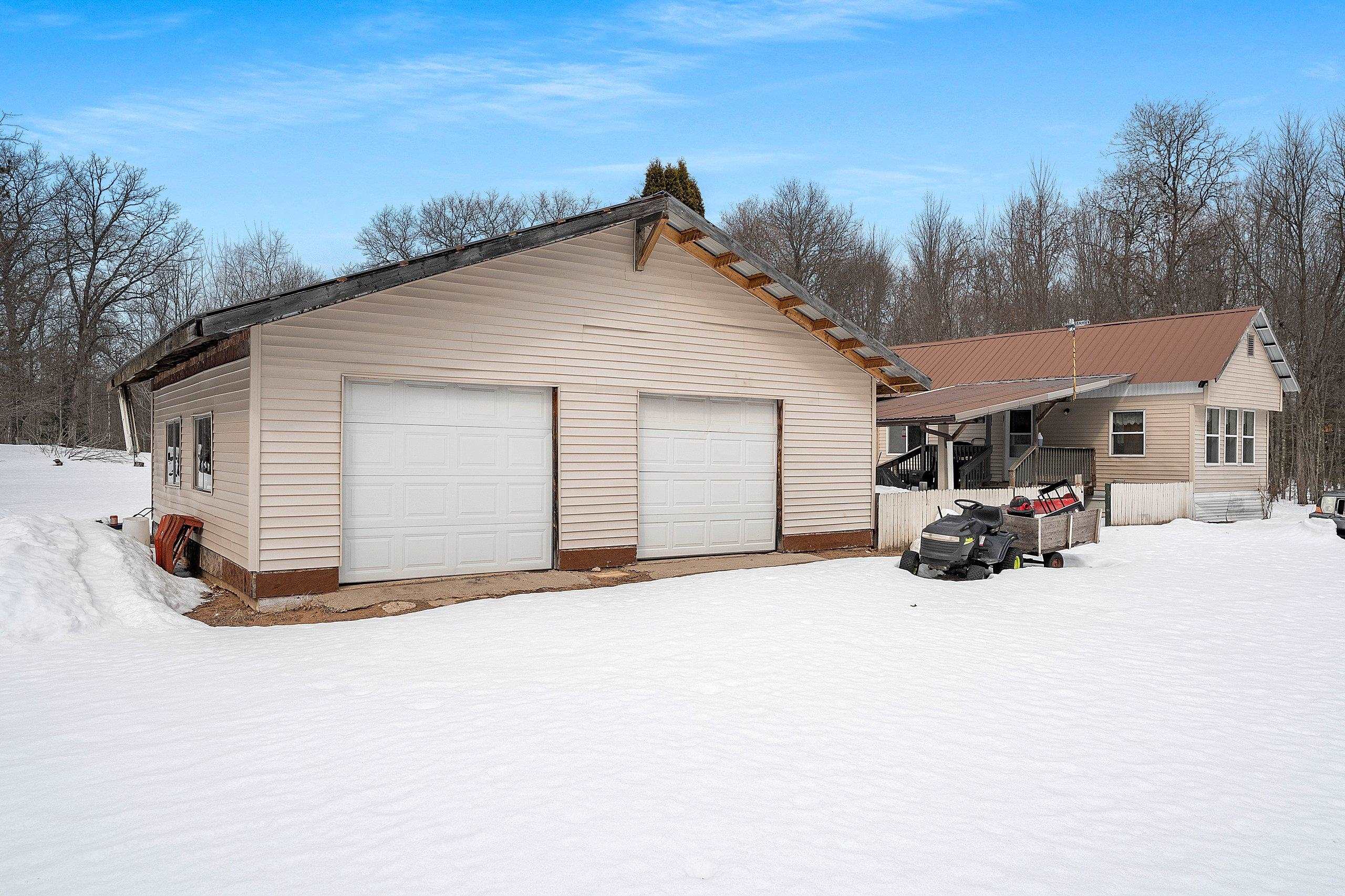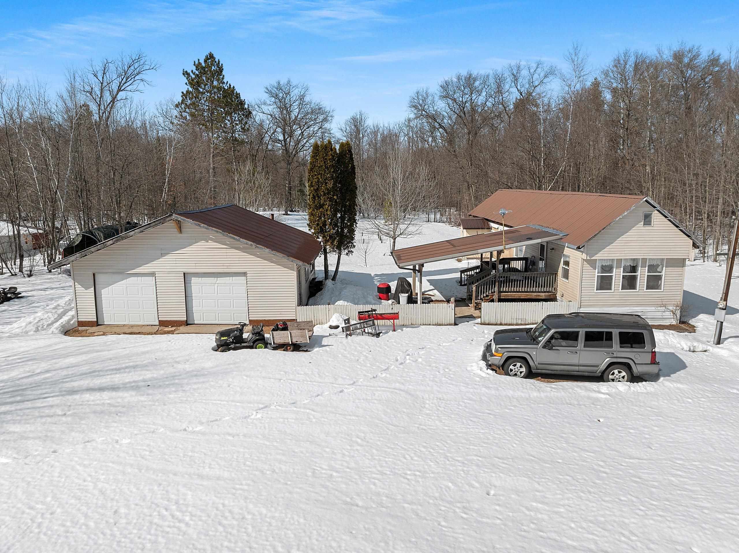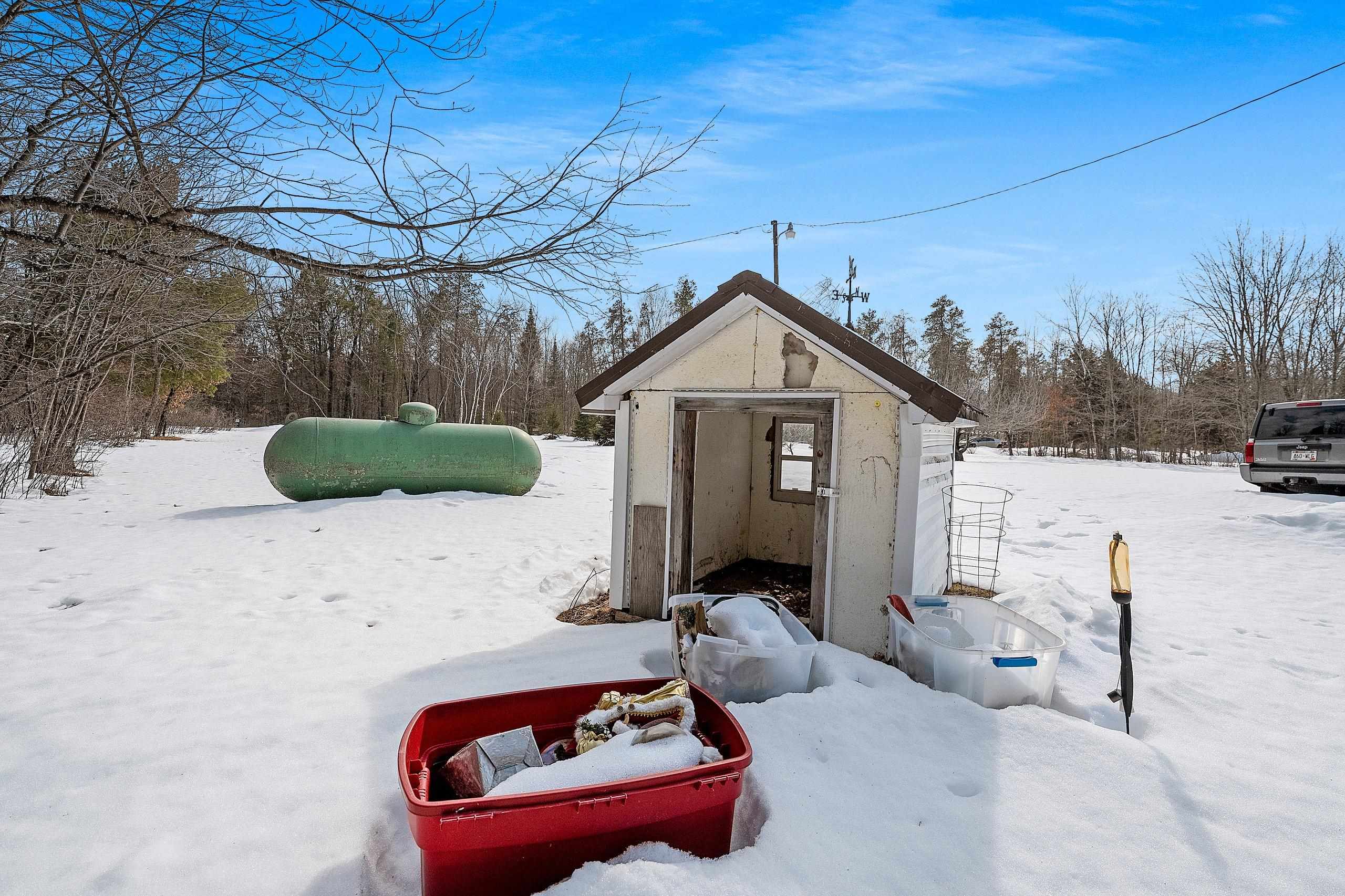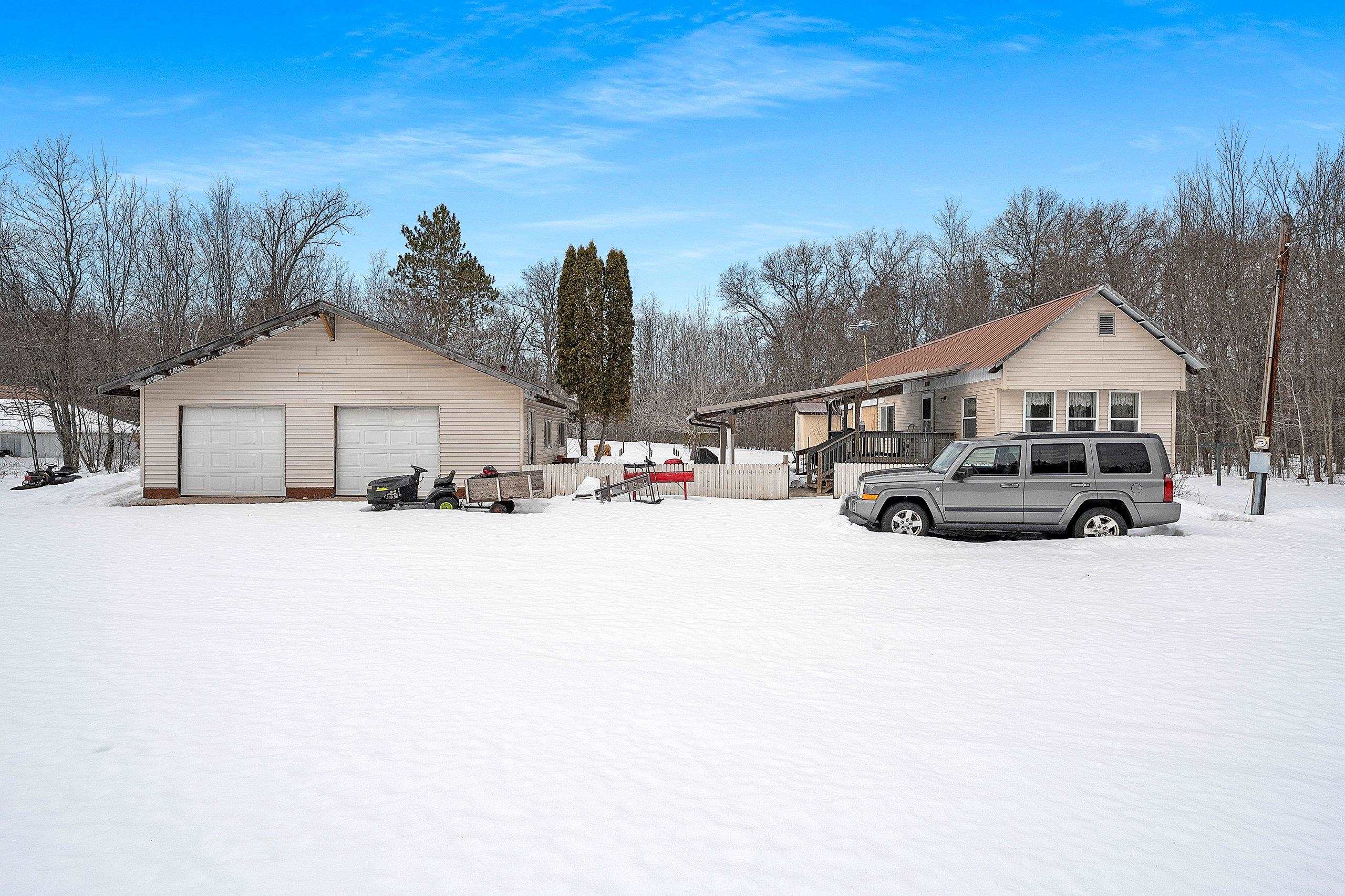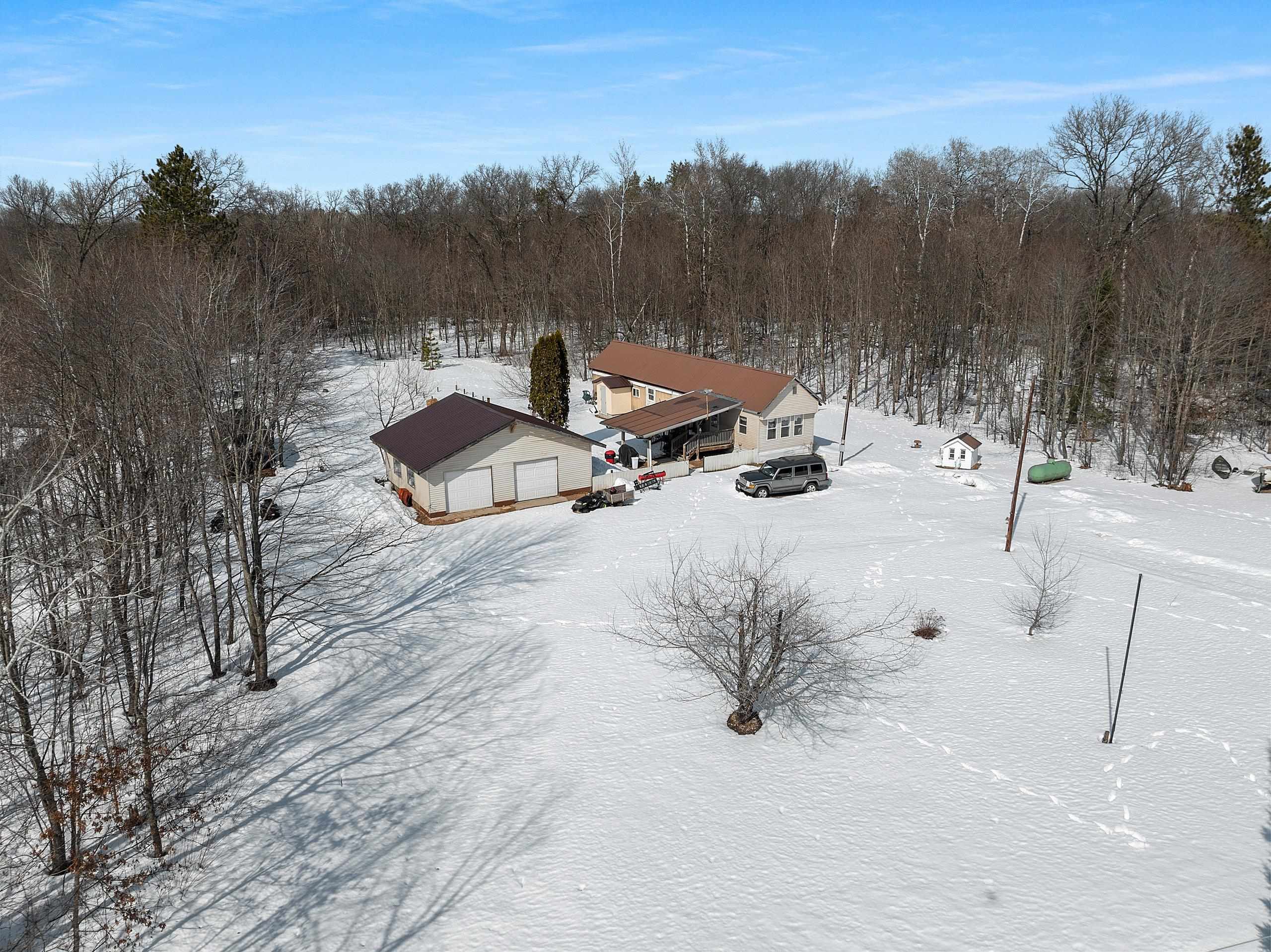 Excellent opportunity to own 3.46 acres in an outstanding location in the north woods! This parcel is situated on a quiet, dead end road near ATV/UTV trails as well as snowmobile trails, plenty of restaurants in the surrounding areas and many bodies of water to enjoy including but not limited to Big and Little Newton Lake, High Falls Flowage and Caldron Falls. Large garage, structure on site could make a great hunting cabin, or, tear it down, start fresh and build! Per Seller, there is a fully functioning conventional drilled well as well as conventional septic. Well was previously shared, however, there is no shared well agreement recorded. Well is owned by this Property. LP tank owned. Measurements are approximate, Buyer to verify. Property is being sold as-is to settle an estate.