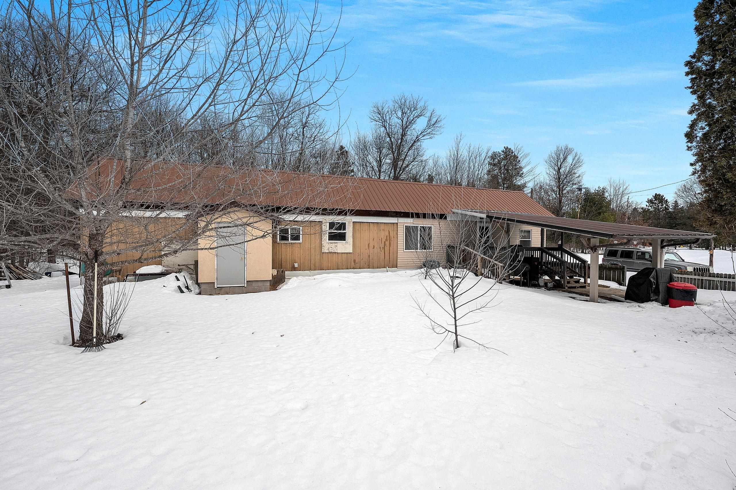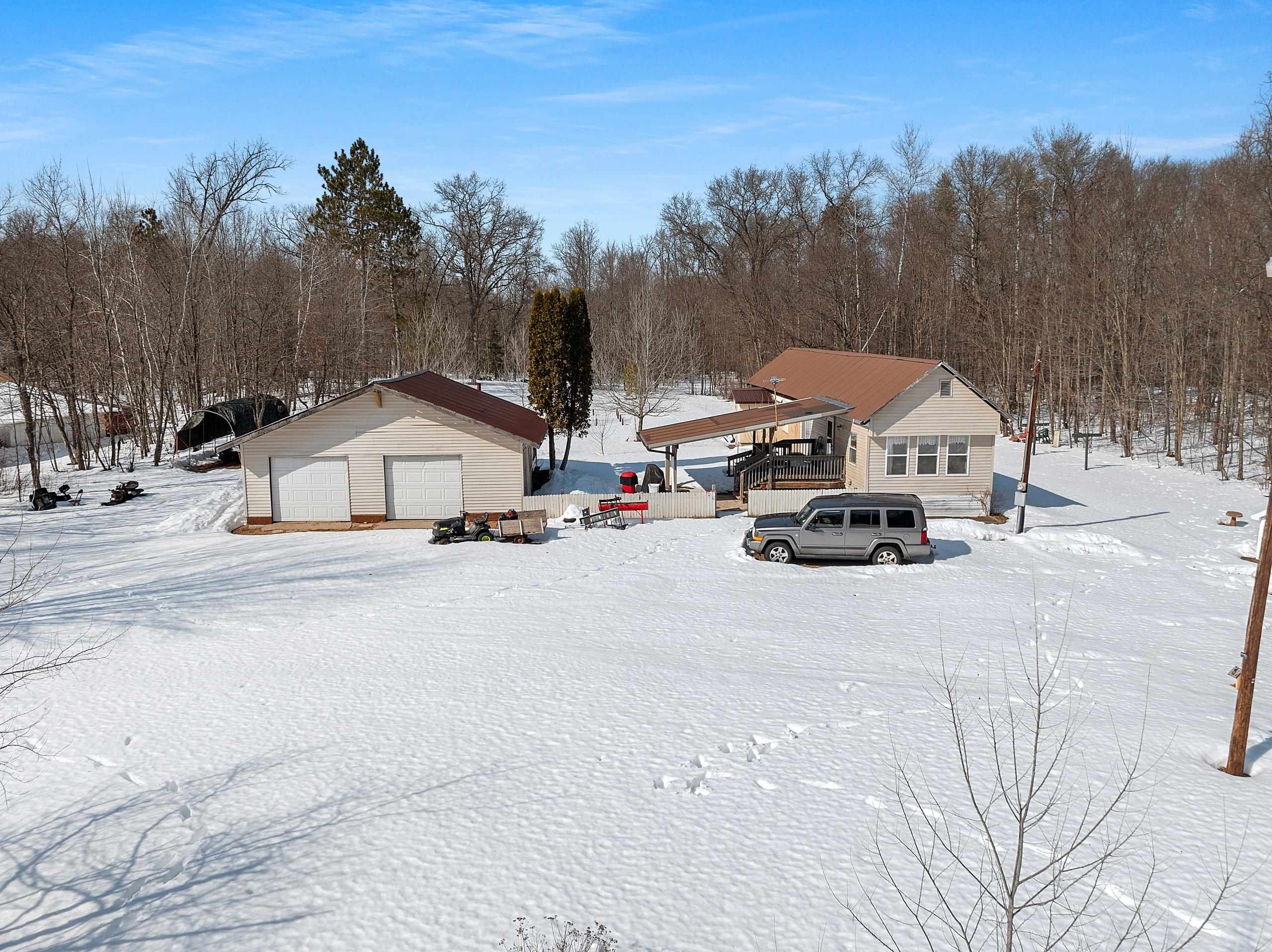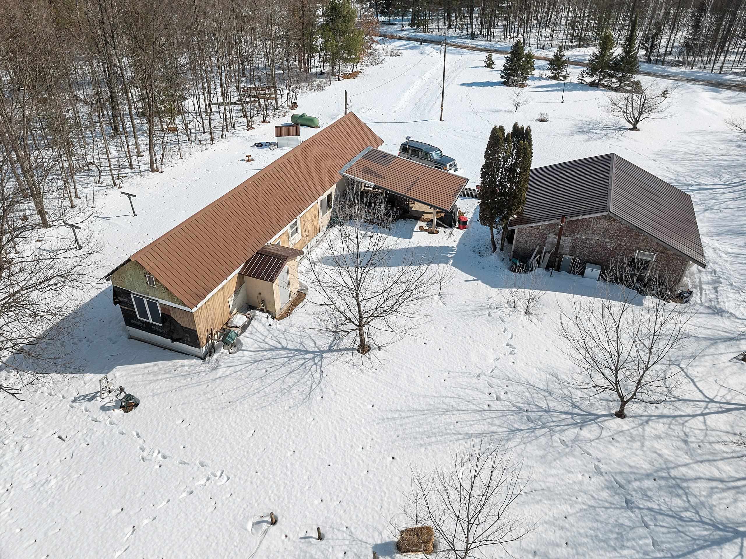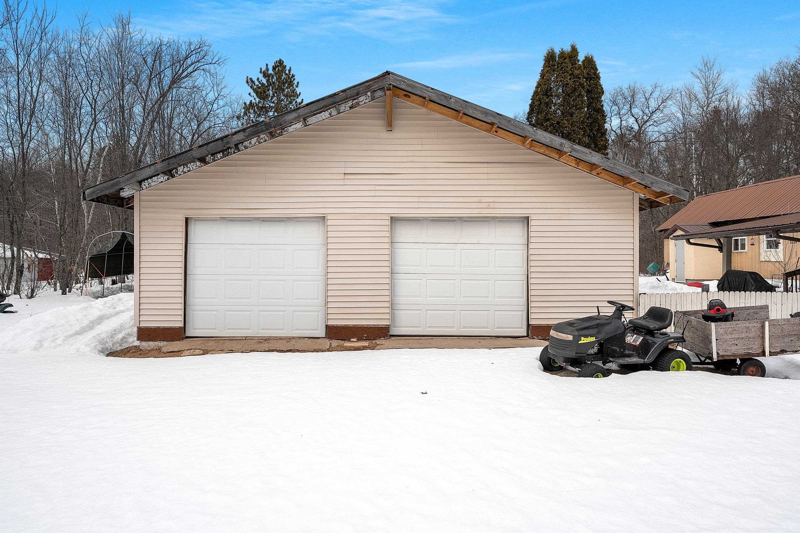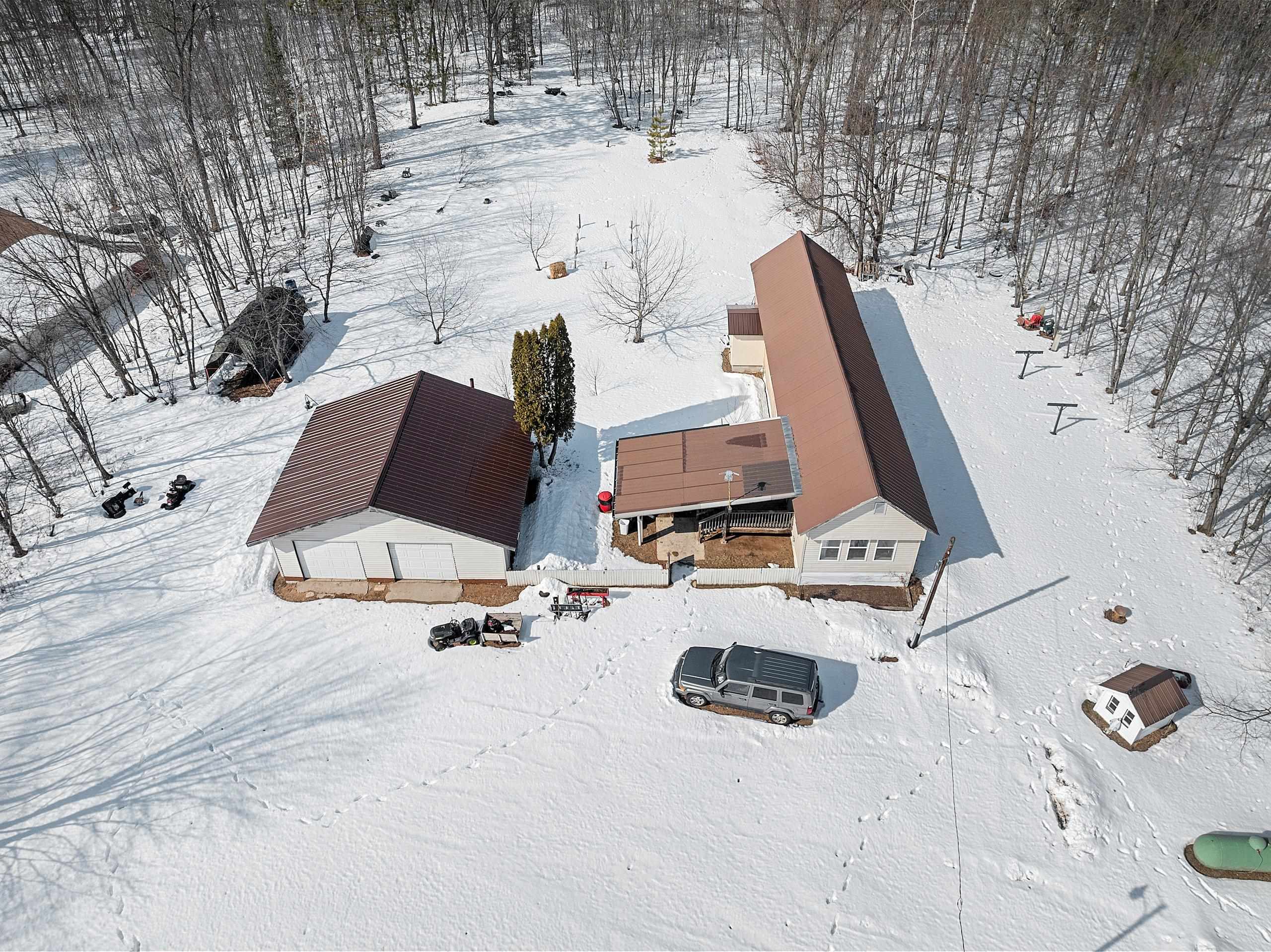 Excellent opportunity to own 3.46 acres in an outstanding location in the north woods! This parcel is situated on a quiet, dead end road near ATV/UTV trails as well as snowmobile trails, plenty of restaurants in the surrounding areas and many bodies of water to enjoy including but not limited to Big and Little Newton Lake, High Falls Flowage and Caldron Falls. Large garage, structure on site could make a great hunting cabin, or, tear it down, start fresh and build! Per Seller, there is a fully functioning conventional drilled well as well as conventional septic. Well was previously shared, however, there is no shared well agreement recorded. Well is owned by this Property. LP tank owned. Measurements are approximate, Buyer to verify. Property is being sold as-is to settle an estate.