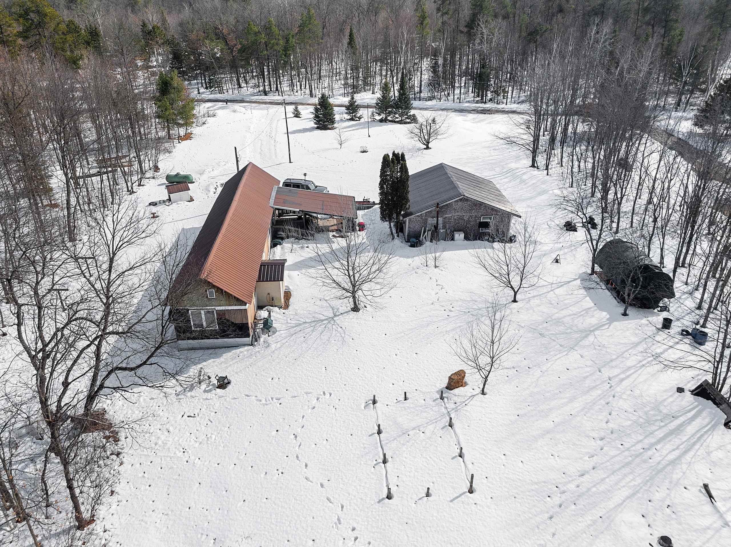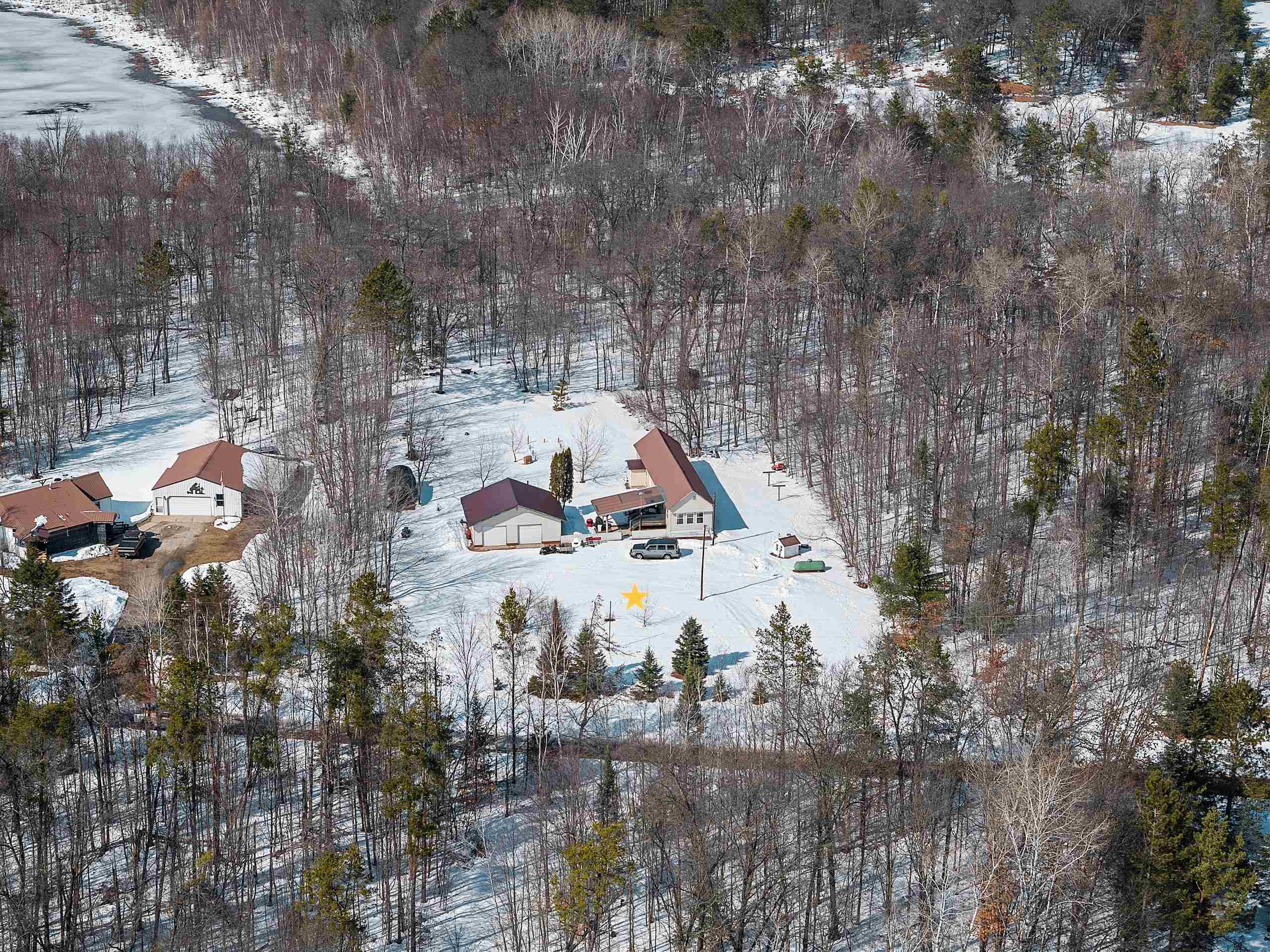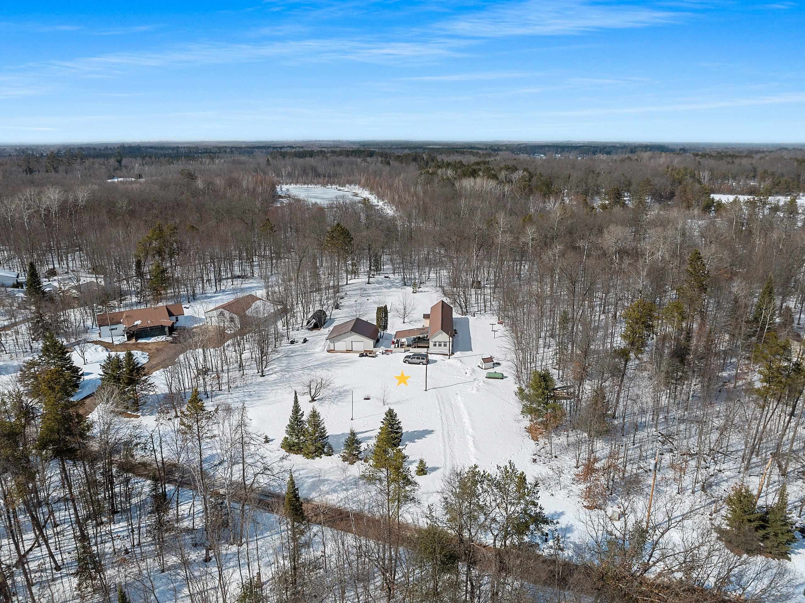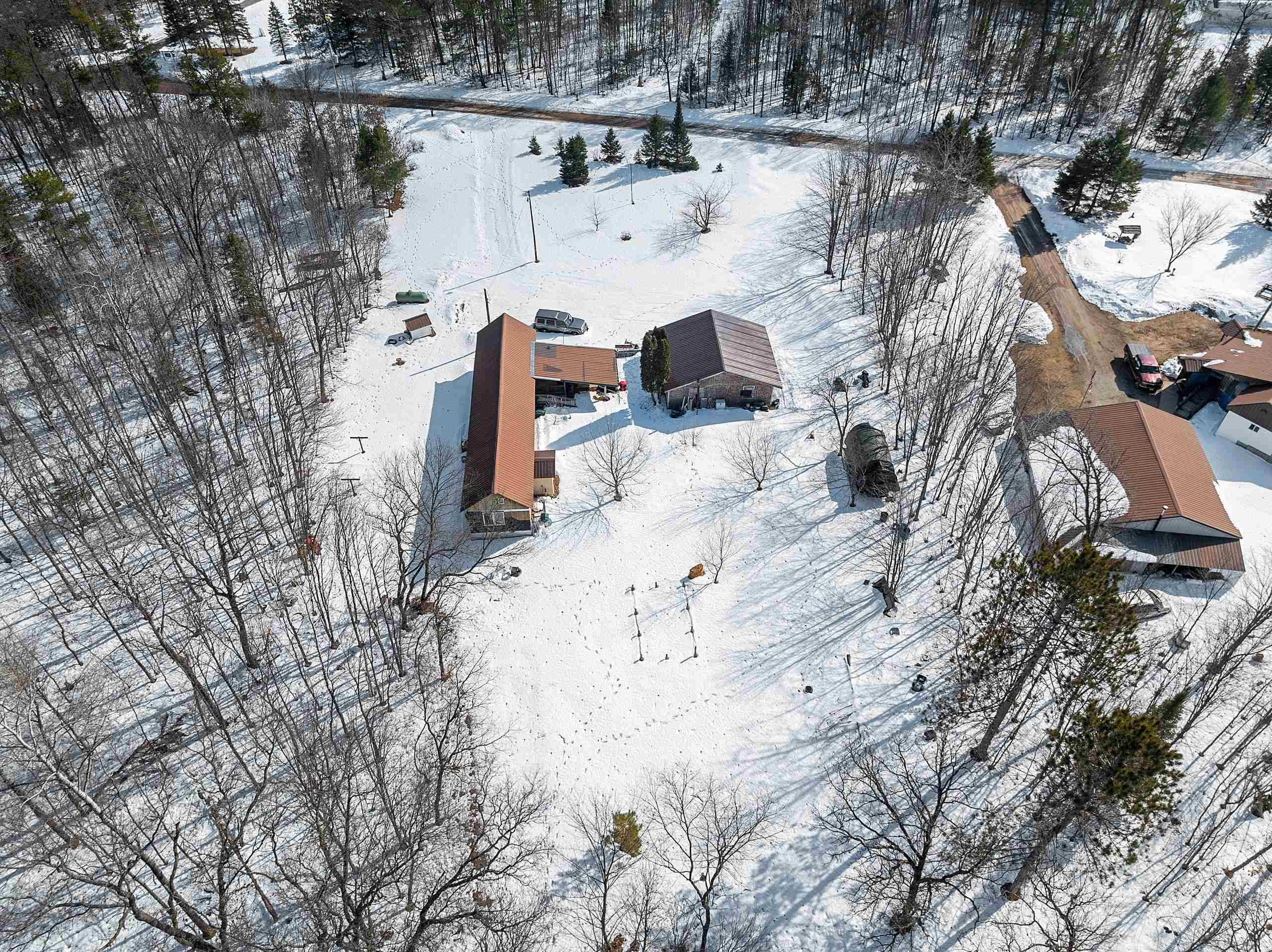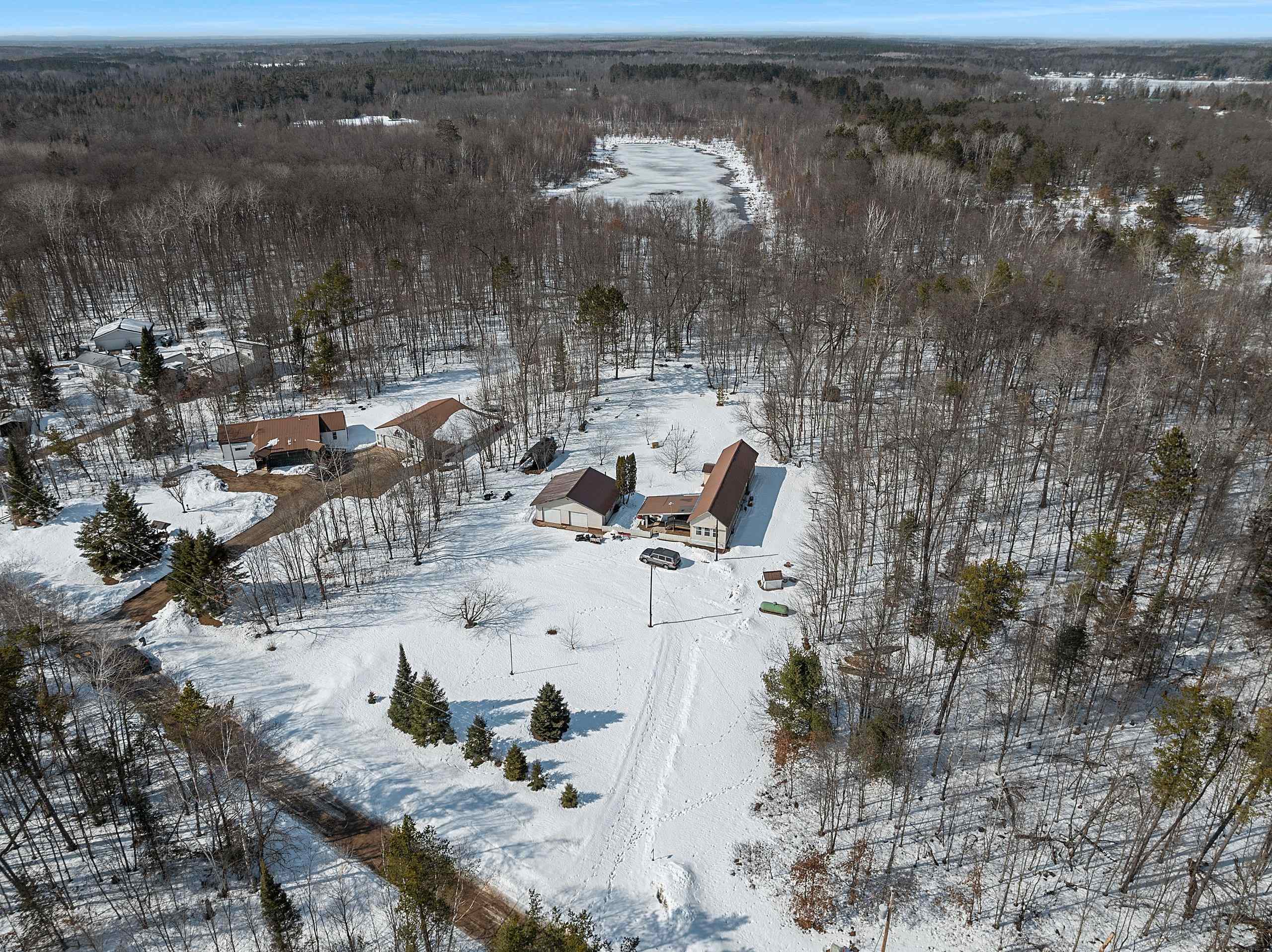 Excellent opportunity to own 3.46 acres in an outstanding location in the north woods! This parcel is situated on a quiet, dead end road near ATV/UTV trails as well as snowmobile trails, plenty of restaurants in the surrounding areas and many bodies of water to enjoy including but not limited to Big and Little Newton Lake, High Falls Flowage and Caldron Falls. Large garage, structure on site could make a great hunting cabin, or, tear it down, start fresh and build! Per Seller, there is a fully functioning conventional drilled well as well as conventional septic. Well was previously shared, however, there is no shared well agreement recorded. Well is owned by this Property. LP tank owned. Measurements are approximate, Buyer to verify. Property is being sold as-is to settle an estate.