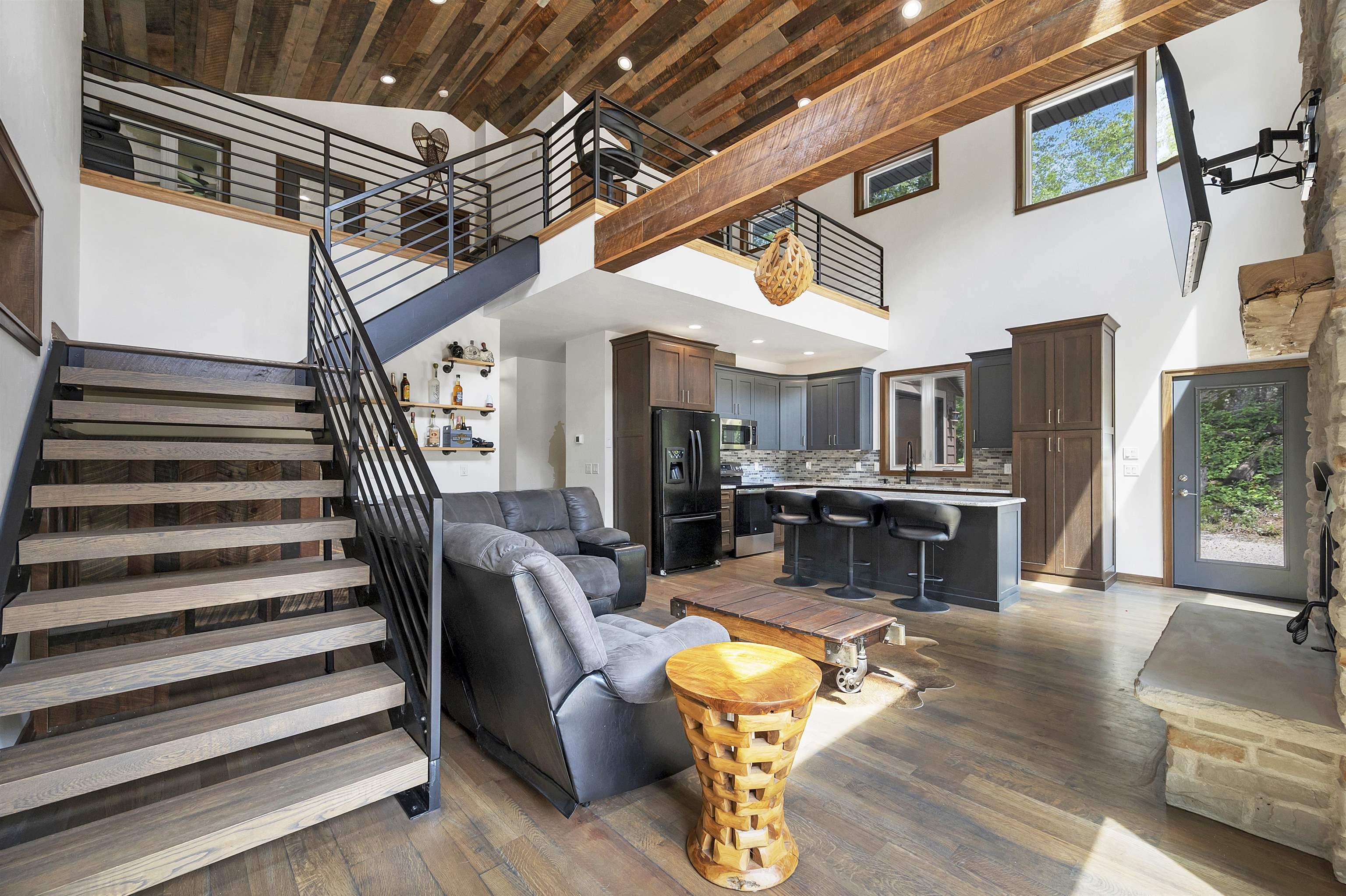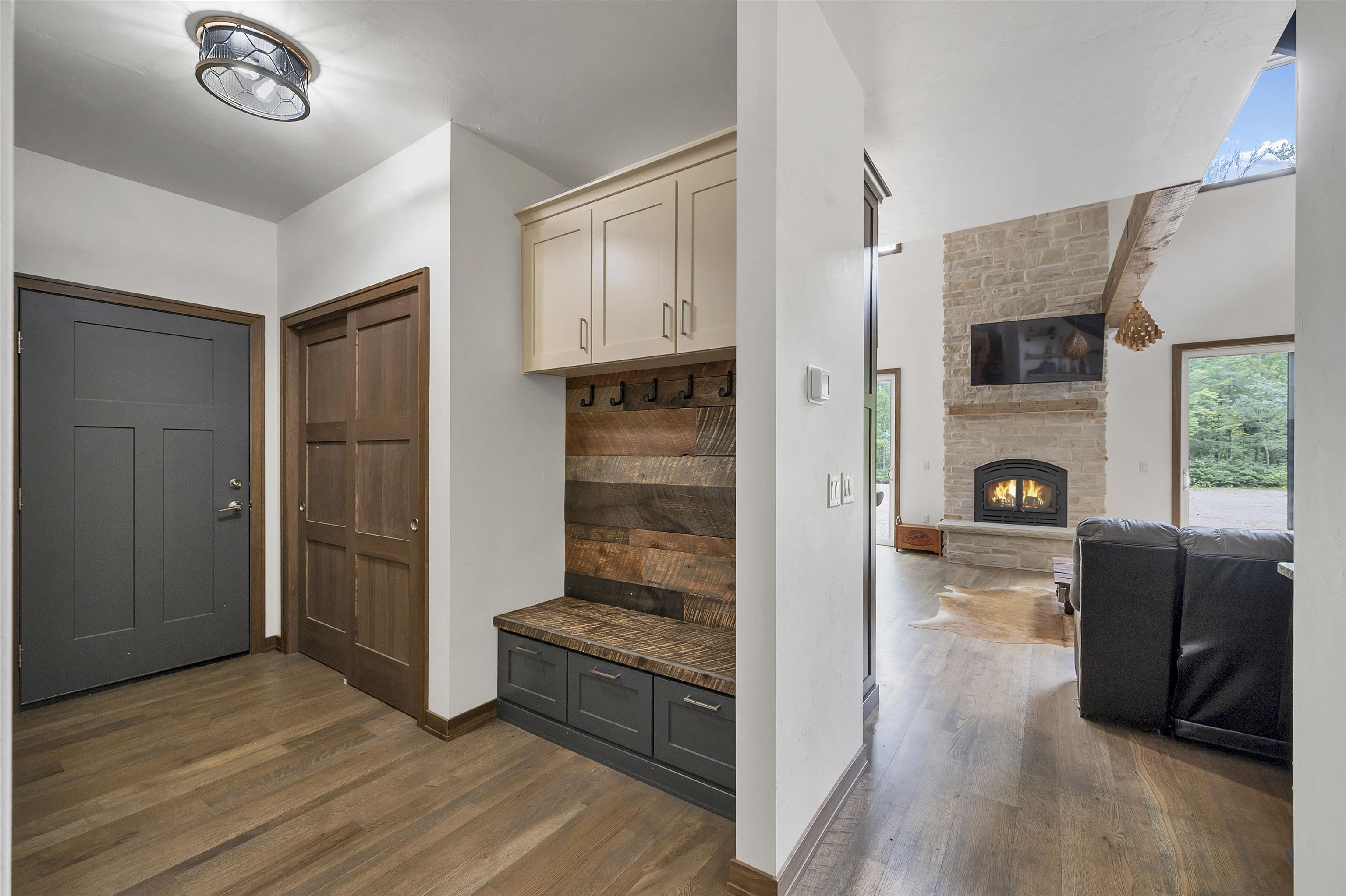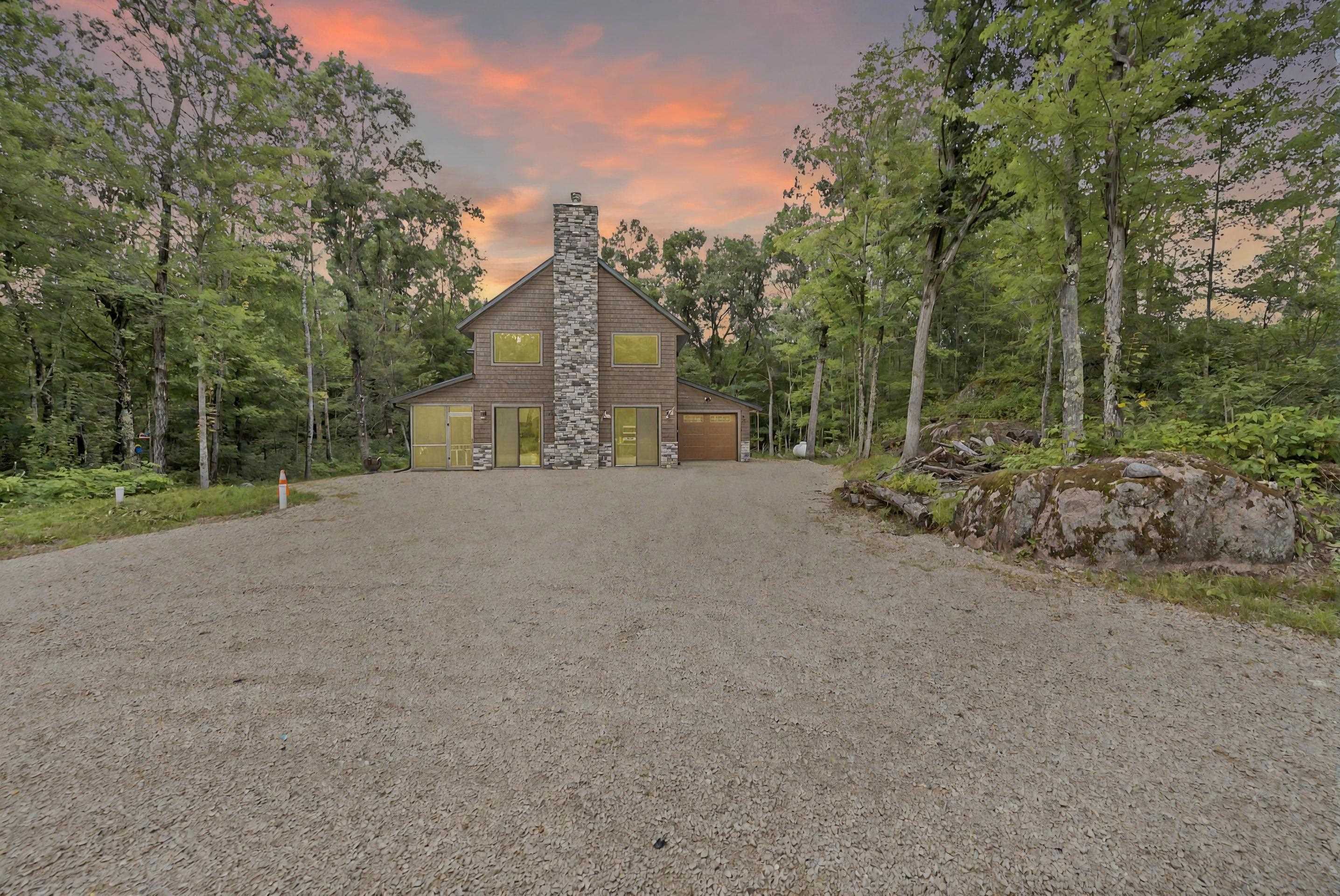 Tucked away on 4.46 private acres in Crivitz, this two-story home is a perfect up north retreat with tons of character and high end finishes! Enjoy outdoor living with two screened-in porches, just minutes from boat landings and snowmobile trails. Open concept kitchen with center island flows into the living room with wood-burning fireplace offer a cozy gathering space. Main level features 2 bedrooms, full bath with jetted tub, and laundry room has dog washing station. Upstairs you’ll find an open loft, spacious primary bedroom with full bath, and private porch. Tandem drive-through garage and full basement provide ample storage. Peace, privacy, and year-round adventure await! Road HOA is $100/year
