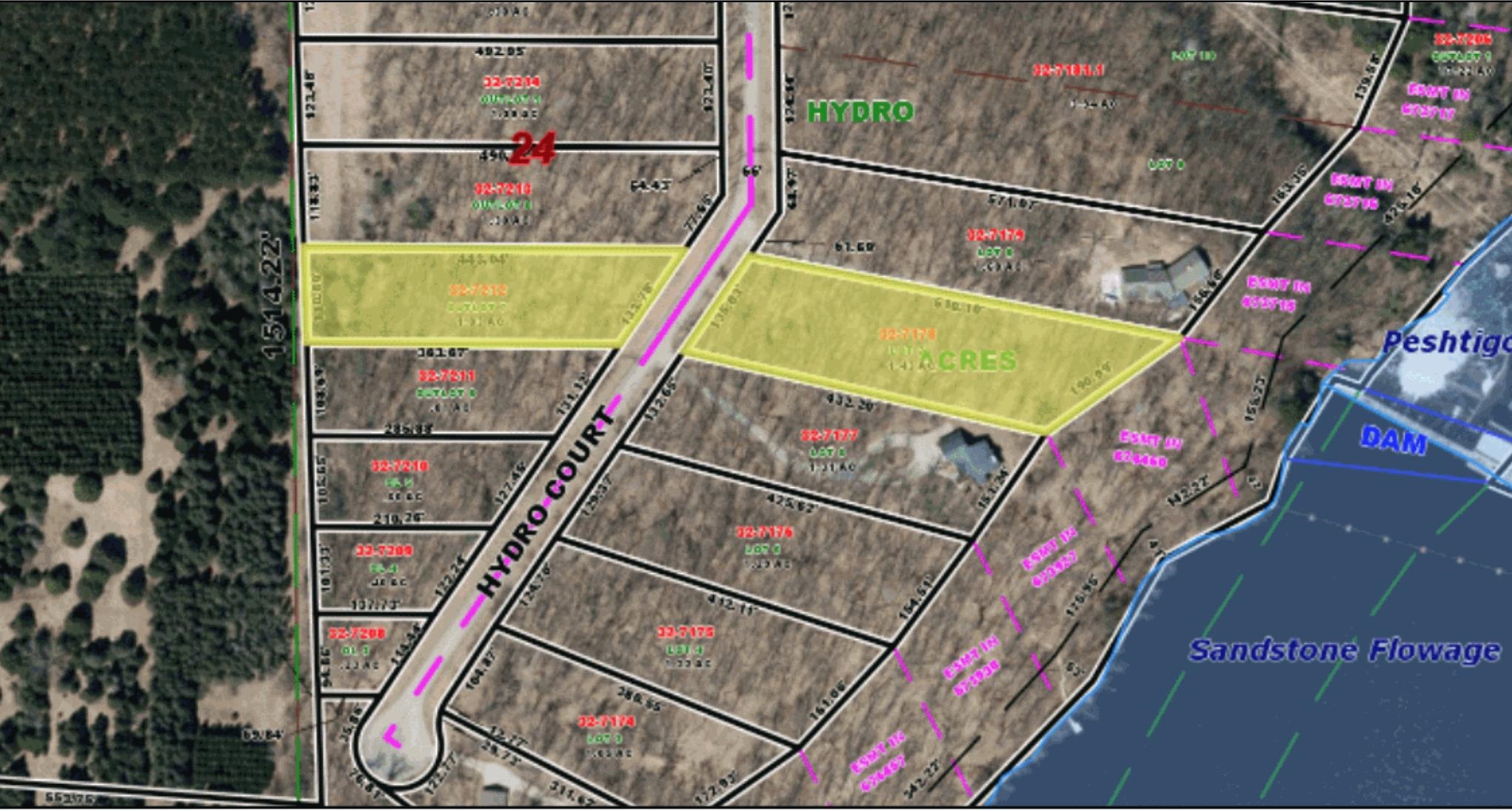 Stunning Sandstone Flowage views! Crivitz 2.76 acres of wooded land in the very prestigious Hydro acres subdivision. 1.43 acres on the water side of the road for your home and 1.03 acres across the road for an outbuilding. The Sandstone Flowage is known for excellent musky fishing and beautiful pontoon rides but also is full recreation in case a jet ski is more your speed. Lot is surveyed and perked for a conventional septic and ready for your new home!
