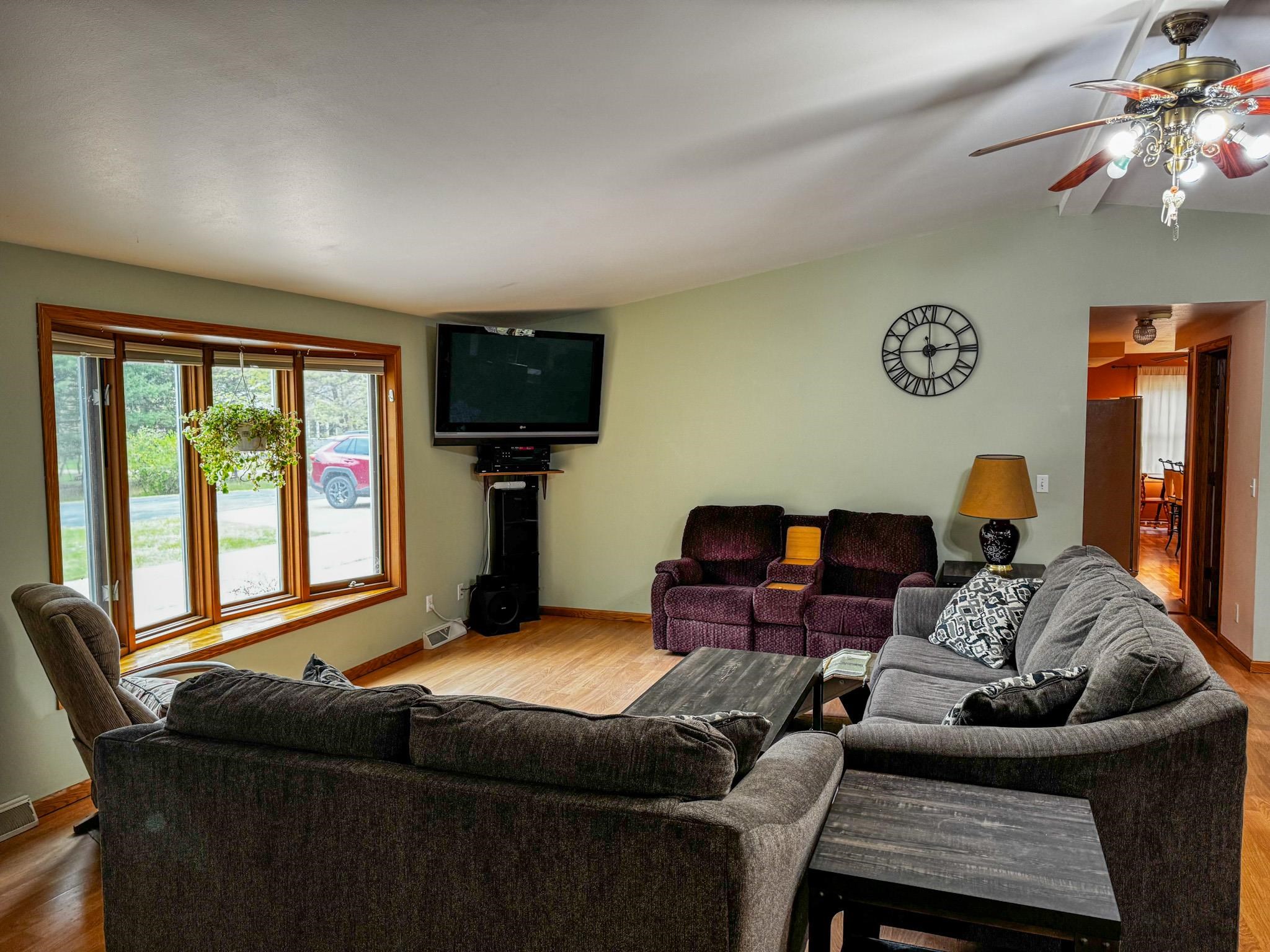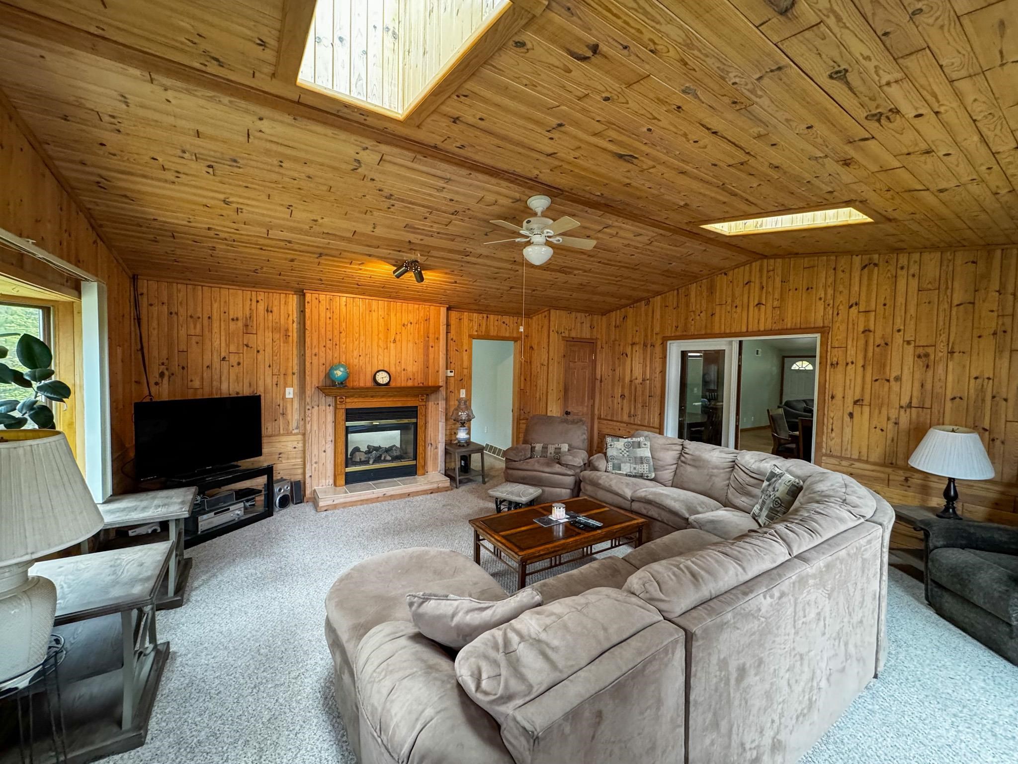 This beautiful home offers 2,760sq.ft. of main floor living including 4 bedrooms, 2 1/2 bath with large eat in kitchen with an Island & 1st floor laundry room.There’s a spacious living room & dining area.The family room has a see-through fireplace that leads to an additional bedroom with its own deck.Large master suite has a jetted tub & shower.Finished LL has bath with a shower.There’s separate-entrance for possible in-law suite, currently used as a rec-room, bar area, game room with a large storage space. Attached 3 plus heated garage with a workbench area.There’s a 40x80 insulated outbuilding with 200-amp service & concrete floor . Greenhouse, fenced garden area w/apples and grapes. Adjacent to ATV and snowmobile trails on Deer Lake Rd. Close to Boat Launch 7 on High Falls Flowage.