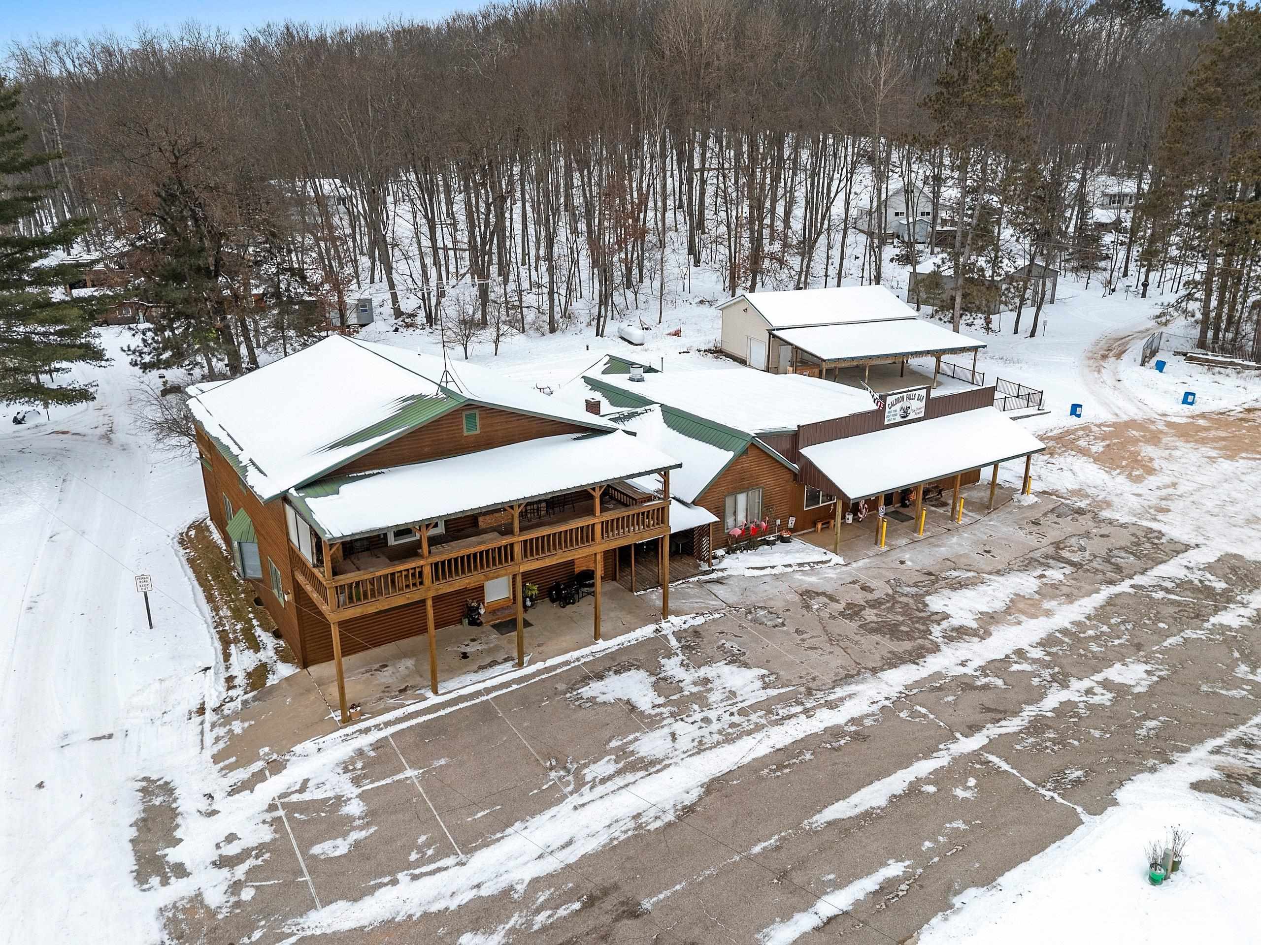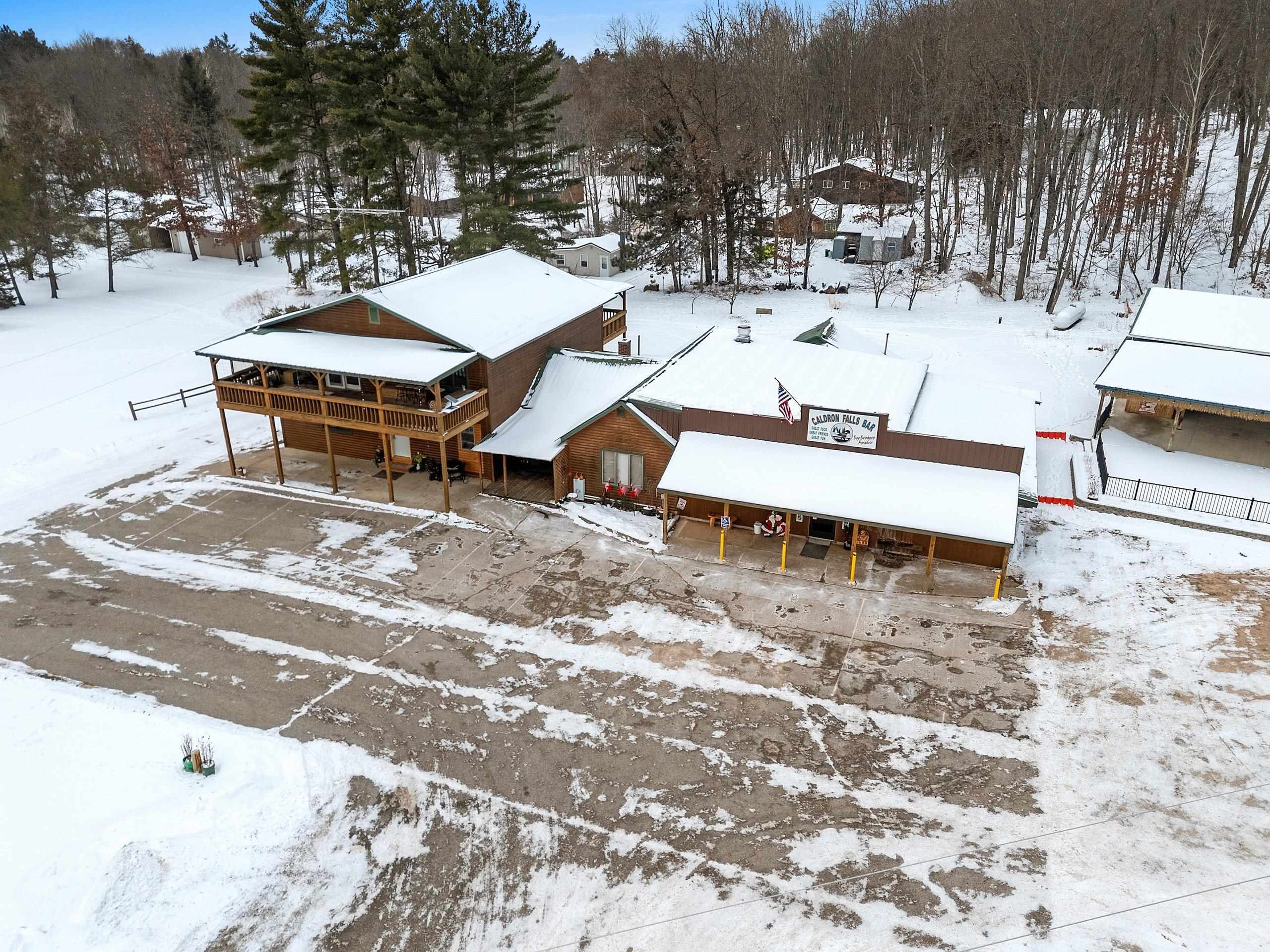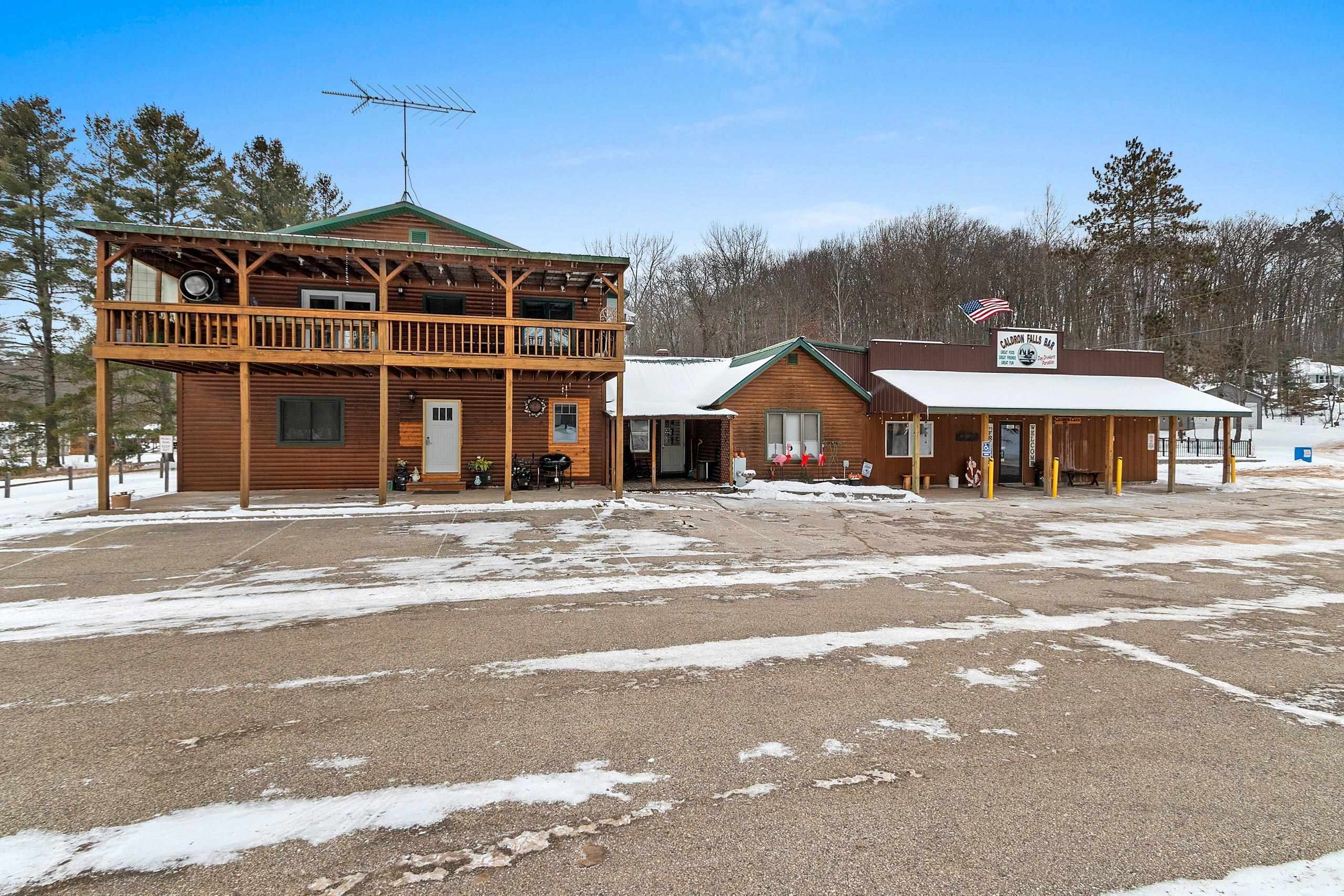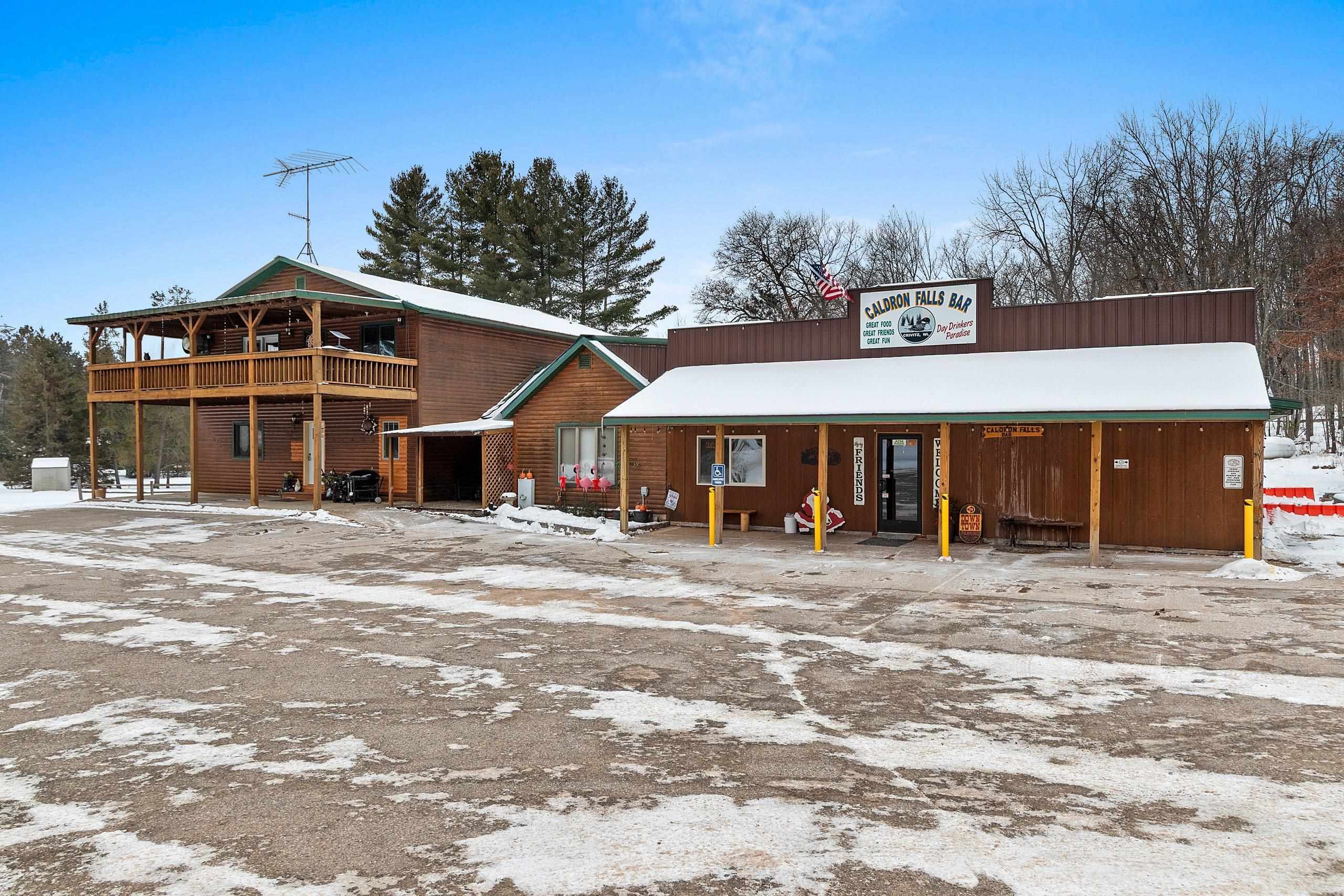 Venture North to this TURN-KEY opportunity! This established iconic bar & grill (Caldron Falls) is ideally located in the heart of the Twin Bridge/Crivitz area, nestled between High Falls Flowage and Caldron Falls Flowage. The surrounding region draws year-round traffic from fishermen, hunters, ATV/UTV riders, snowmobilers, and outdoor enthusiasts, with numerous nearby county parks and boat landings attracting fun throughout every season. Centrally positioned within all this activity, the property offers exceptional visibility and access. Included with the bar & grill is an outdoor bandstand with stage, a separate pavilion with electric, and a beautifully remodeled 2,616 sq ft two-story log sided home—creating a rare live, work, and invest opportunity.