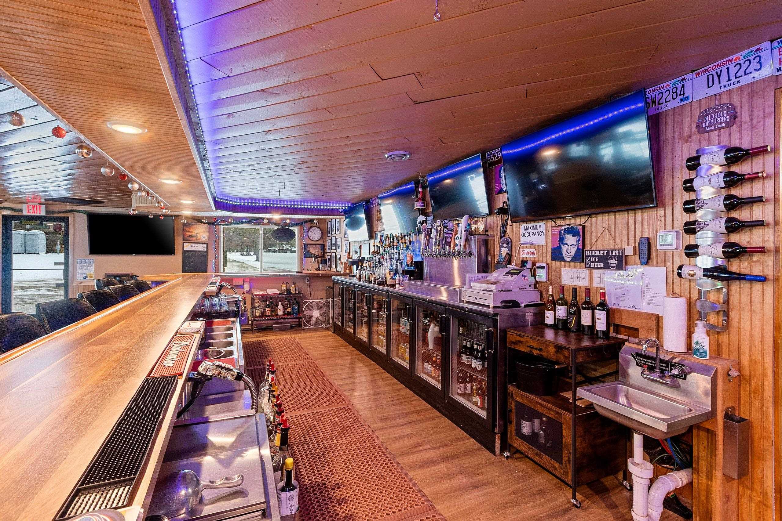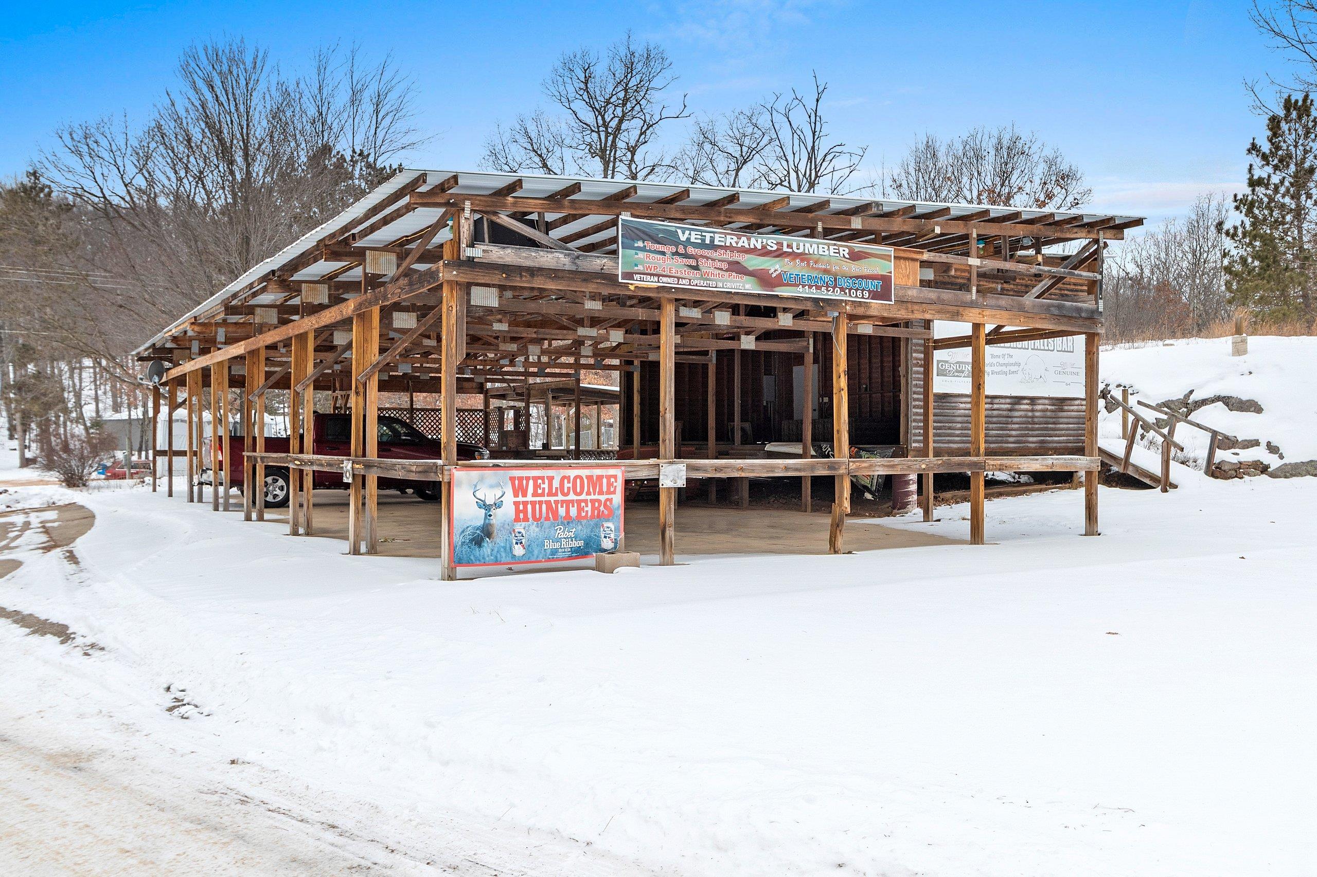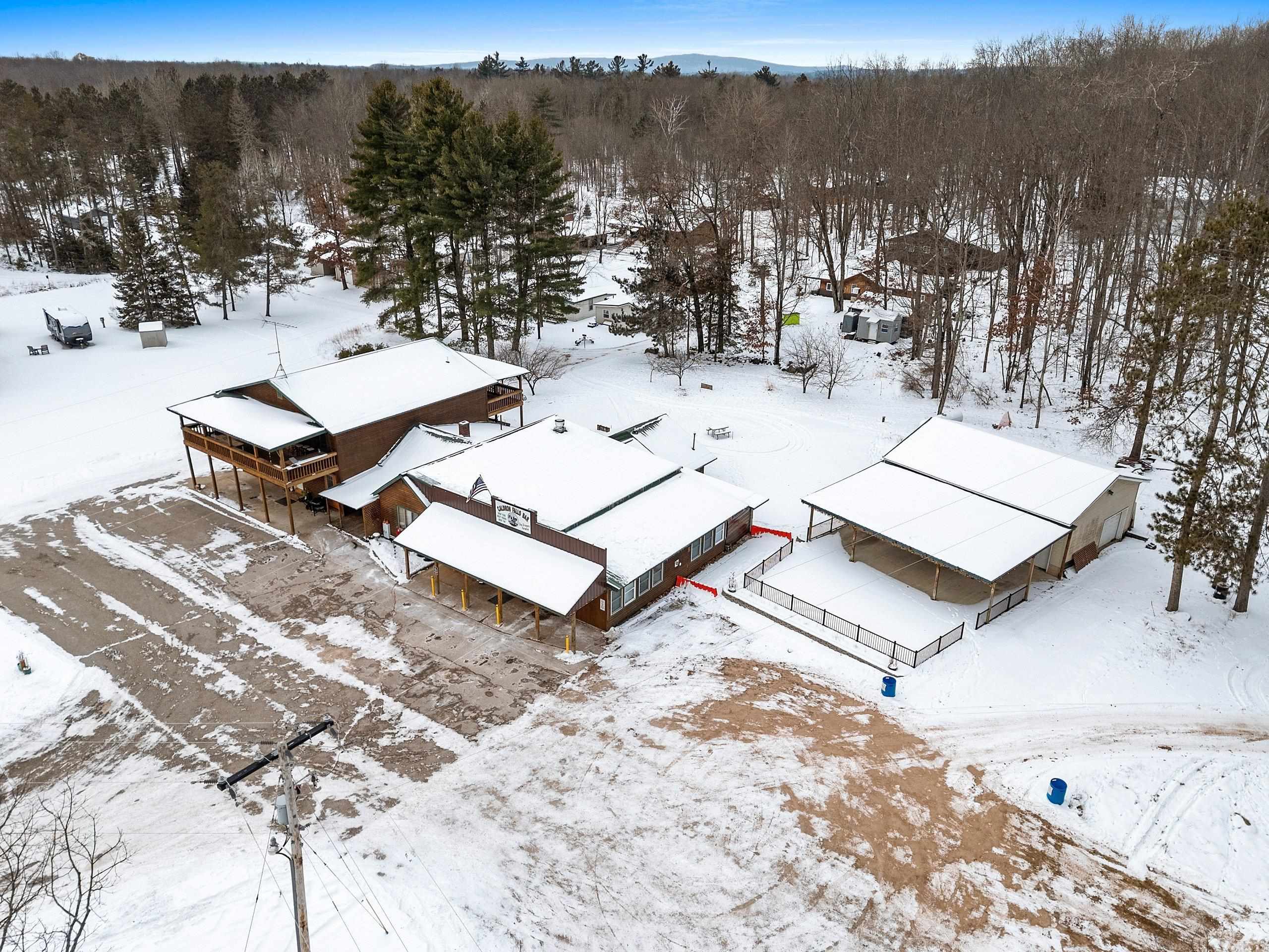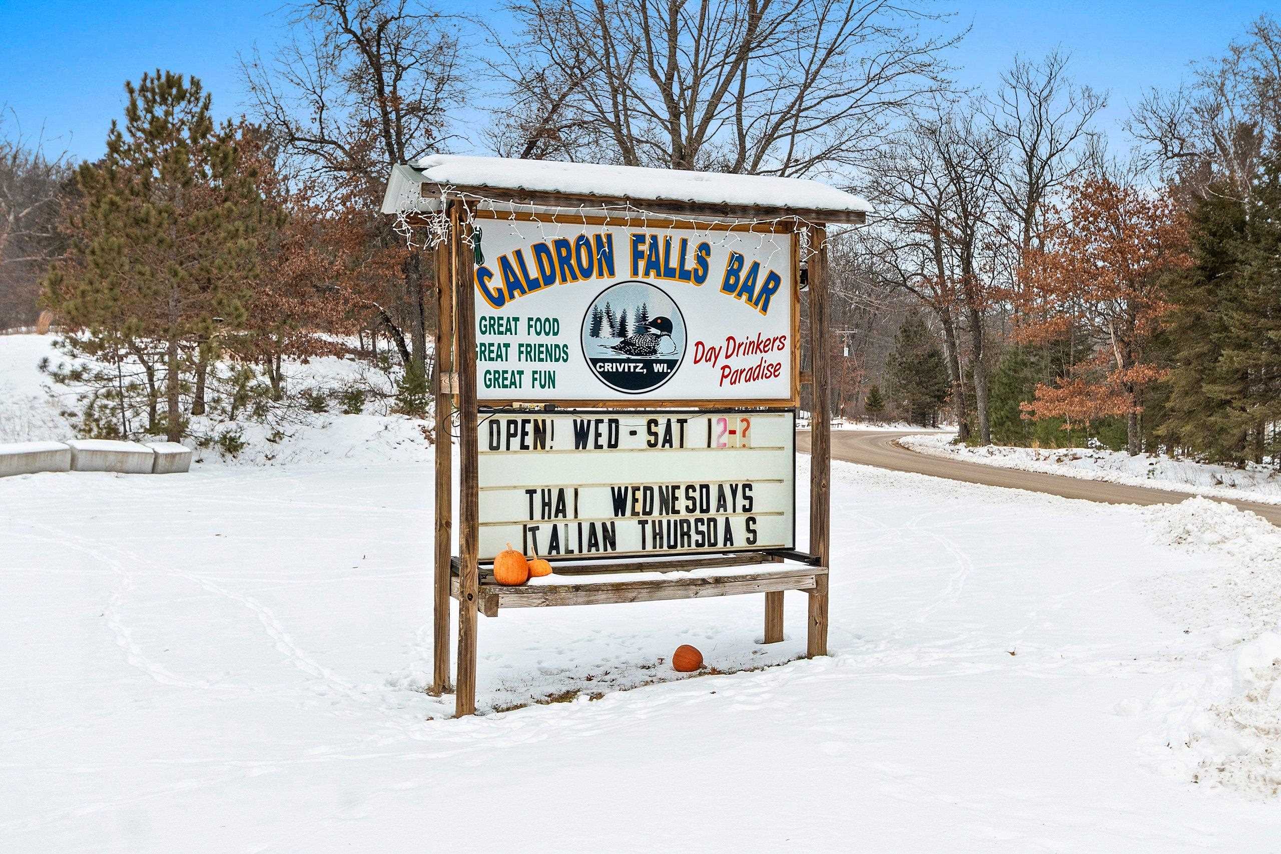 Venture North to this TURN-KEY opportunity! This established iconic bar & grill (Caldron Falls) is ideally located in the heart of the Twin Bridge/Crivitz area, nestled between High Falls Flowage and Caldron Falls Flowage. The surrounding region draws year-round traffic from fishermen, hunters, ATV/UTV riders, snowmobilers, and outdoor enthusiasts, with numerous nearby county parks and boat landings attracting fun throughout every season. Centrally positioned within all this activity, the property offers exceptional visibility and access. Included with the bar & grill is an outdoor bandstand with stage, a separate pavilion with electric, and a beautifully remodeled 2,616 sq ft two-story log sided home—creating a rare live, work, and invest opportunity.