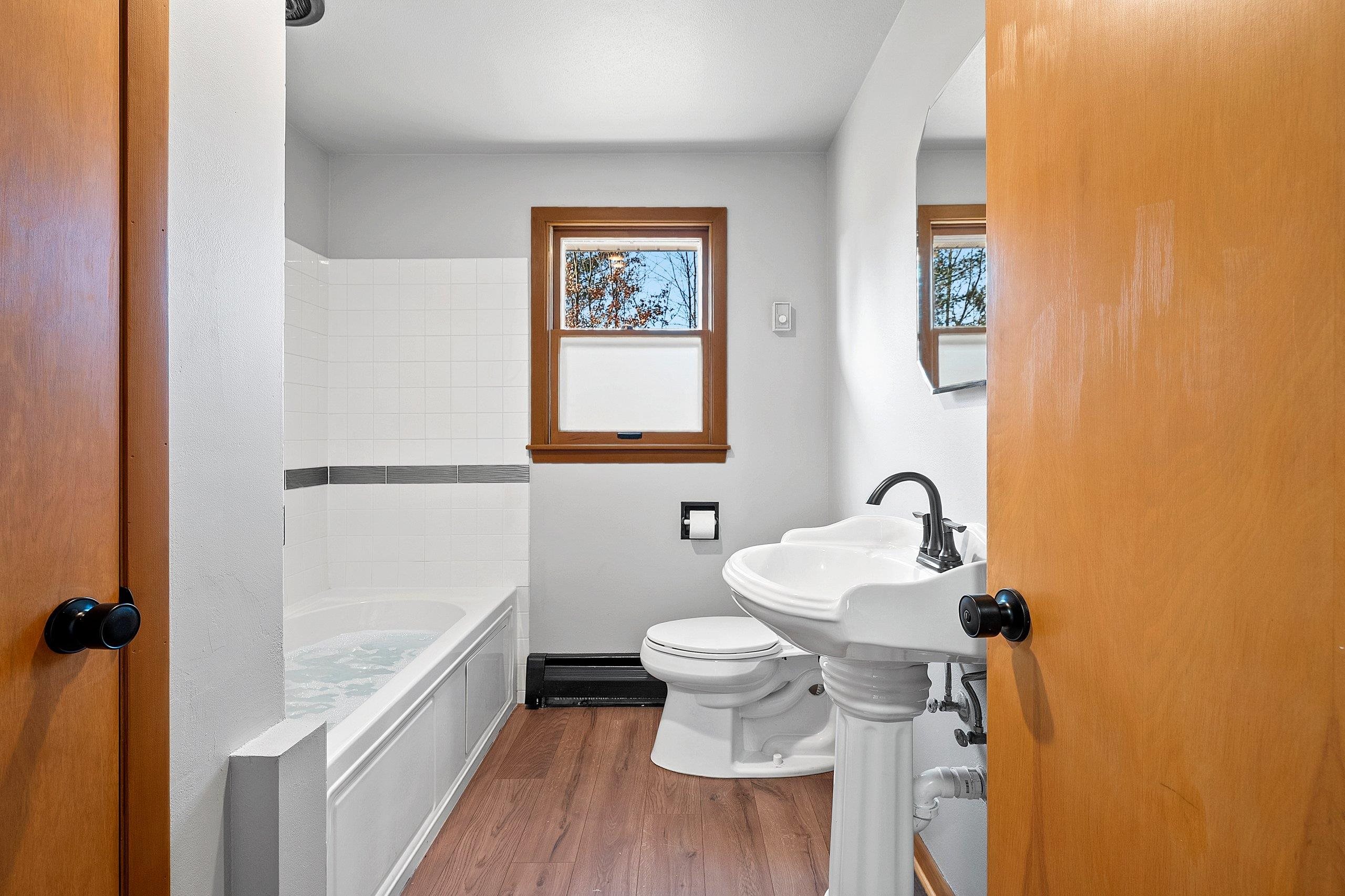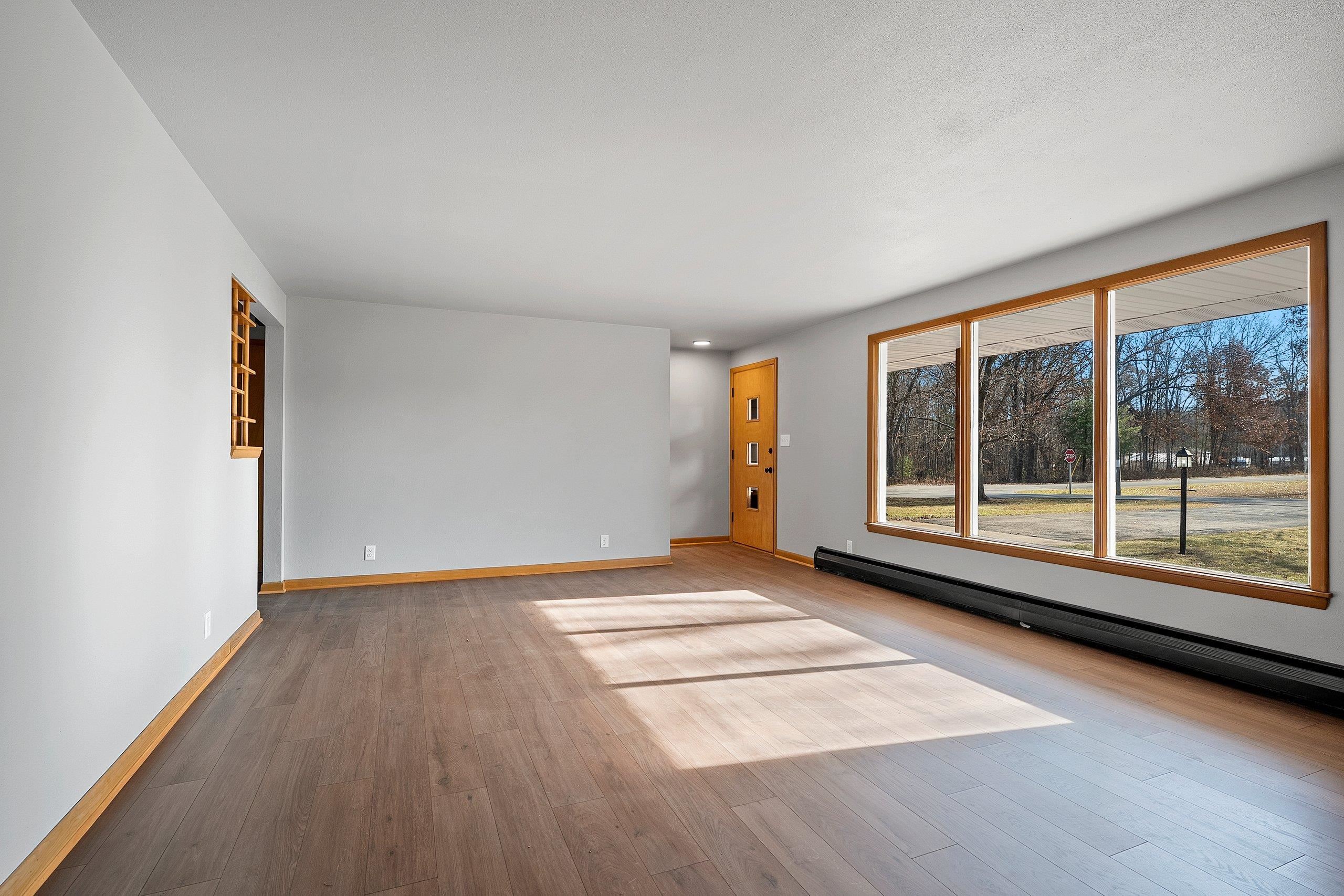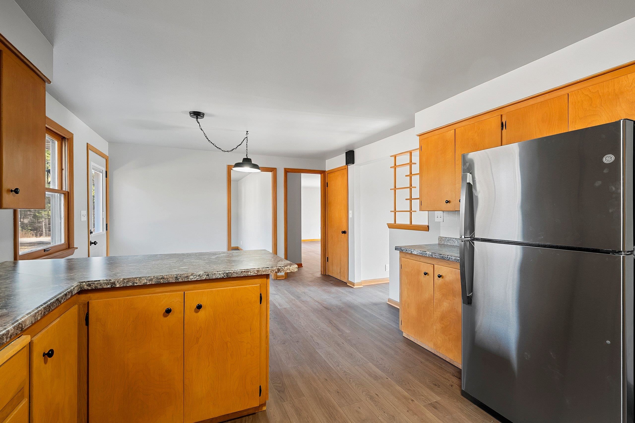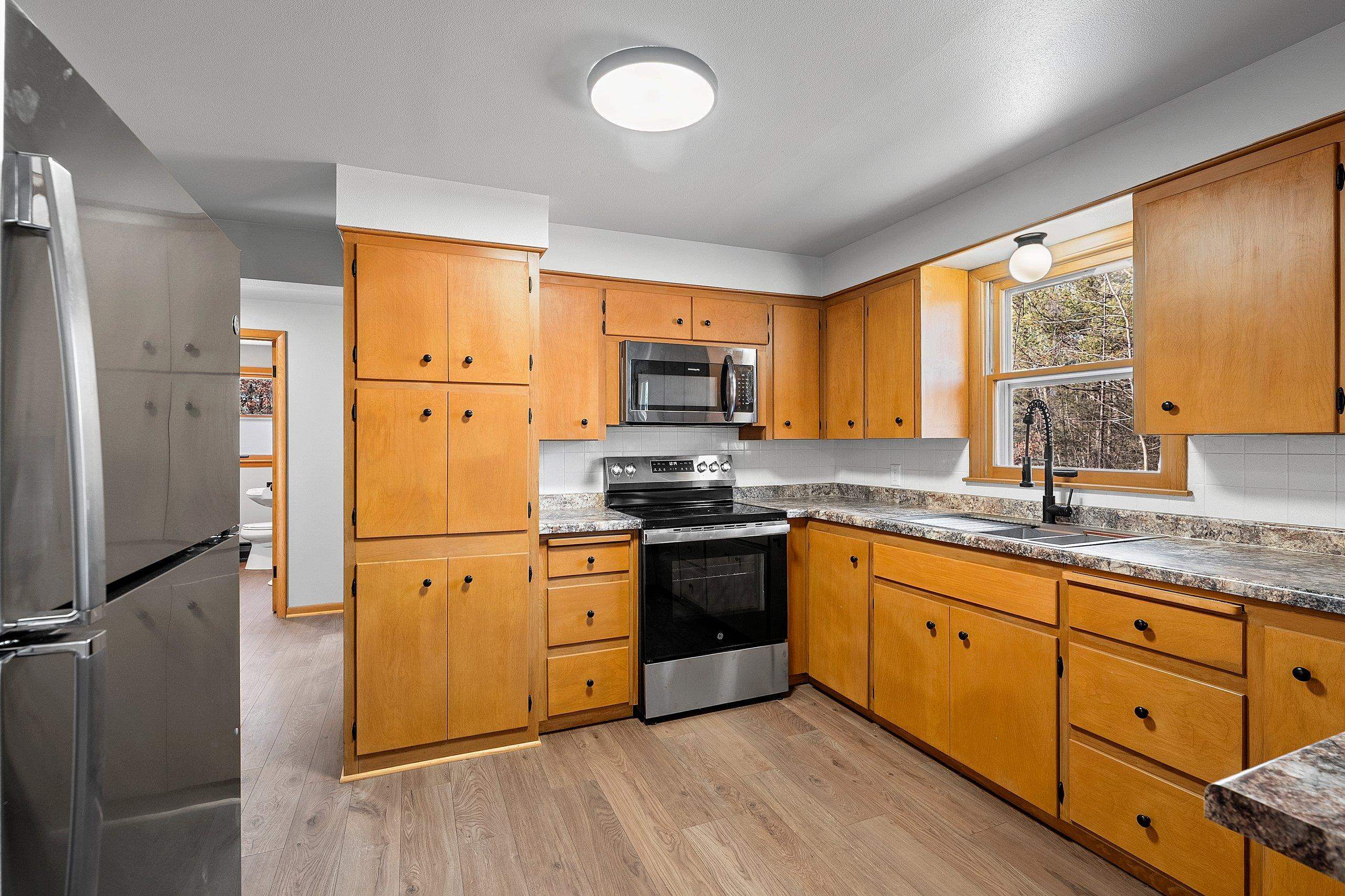 This charming home has had just one owner prior to its most recent renovation and is now refreshed throughout with modern updates and timeless character. The layout features an extra-large primary suite, perfect for creating your own private retreat. New plank flooring flows through the home, complementing the beautifully updated bathrooms, including a jetted tub with tile surround. The kitchen blends classic mid-century modern cabinetry with new countertops, a convenient sink workstation, and stainless steel appliances. Enjoy the serenity of a peaceful 2.15-acre lot filled with mature trees, detached 24x28 garage. Located close to schools, shopping, and restaurants, this property offers the perfect balance—country privacy with in-town convenience. Lower level is painted joist.