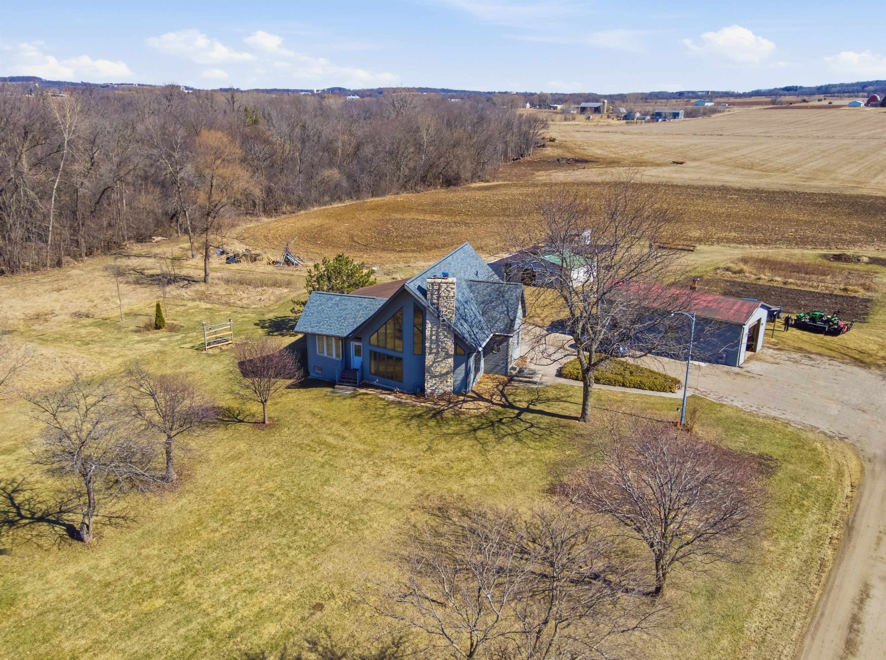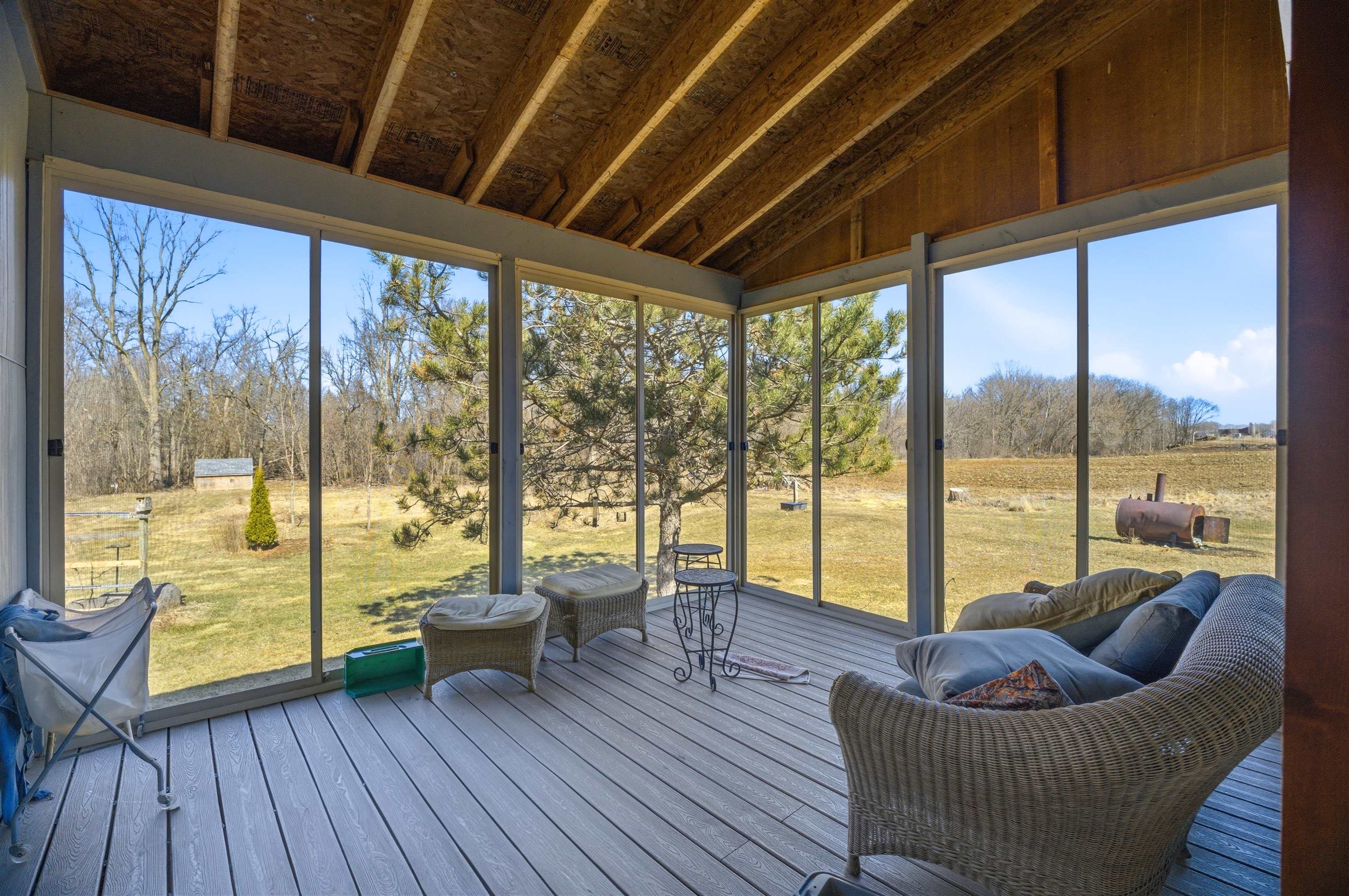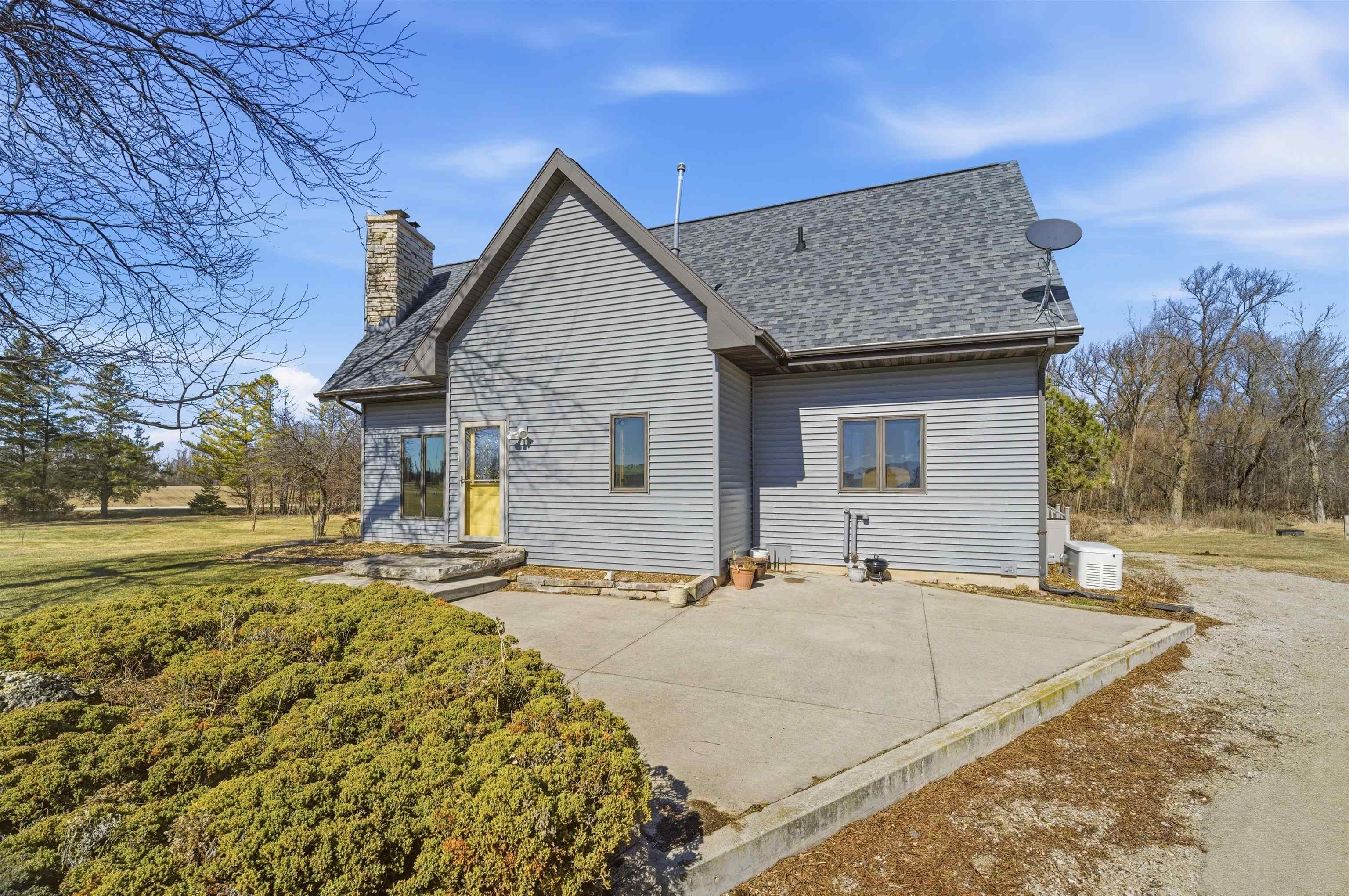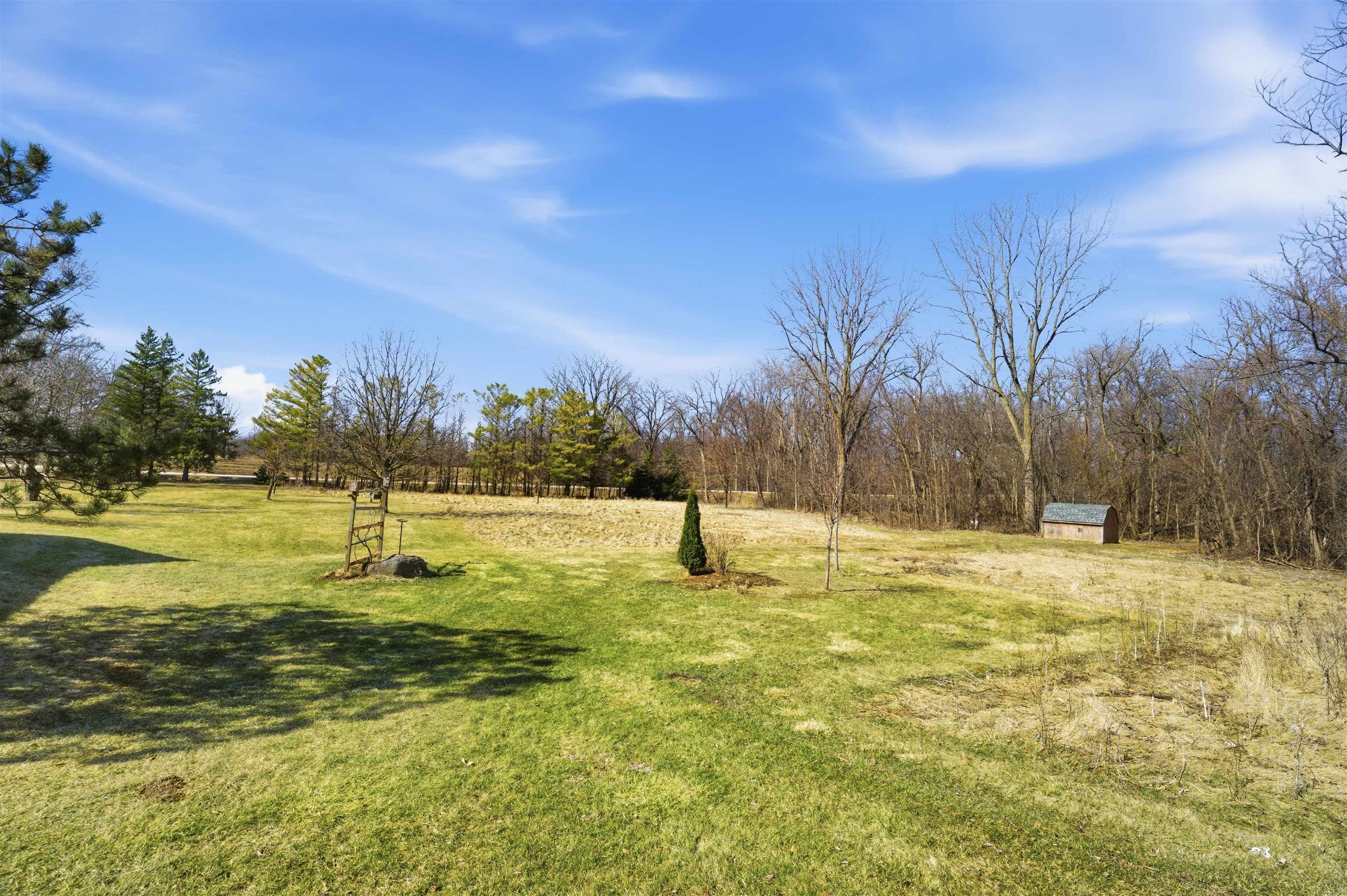 8 acre country property! 2700+ sq. ft. of living area. Kitchen, living room, family room, bedrooms, 1.5 baths, laundry room, mud room and 3-seasons room. Fireplace. Patio. Detached garage and metal shed. Large yard.