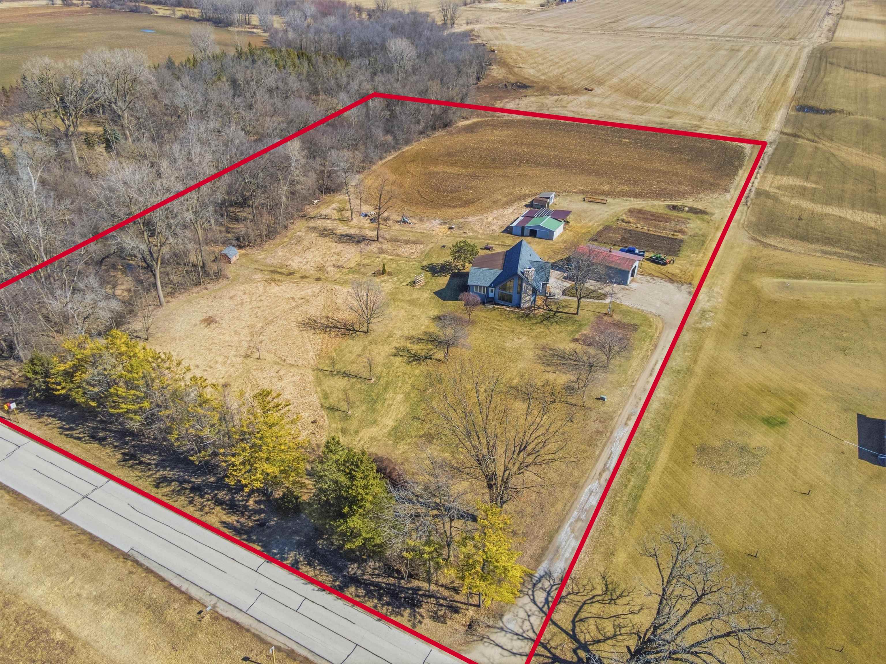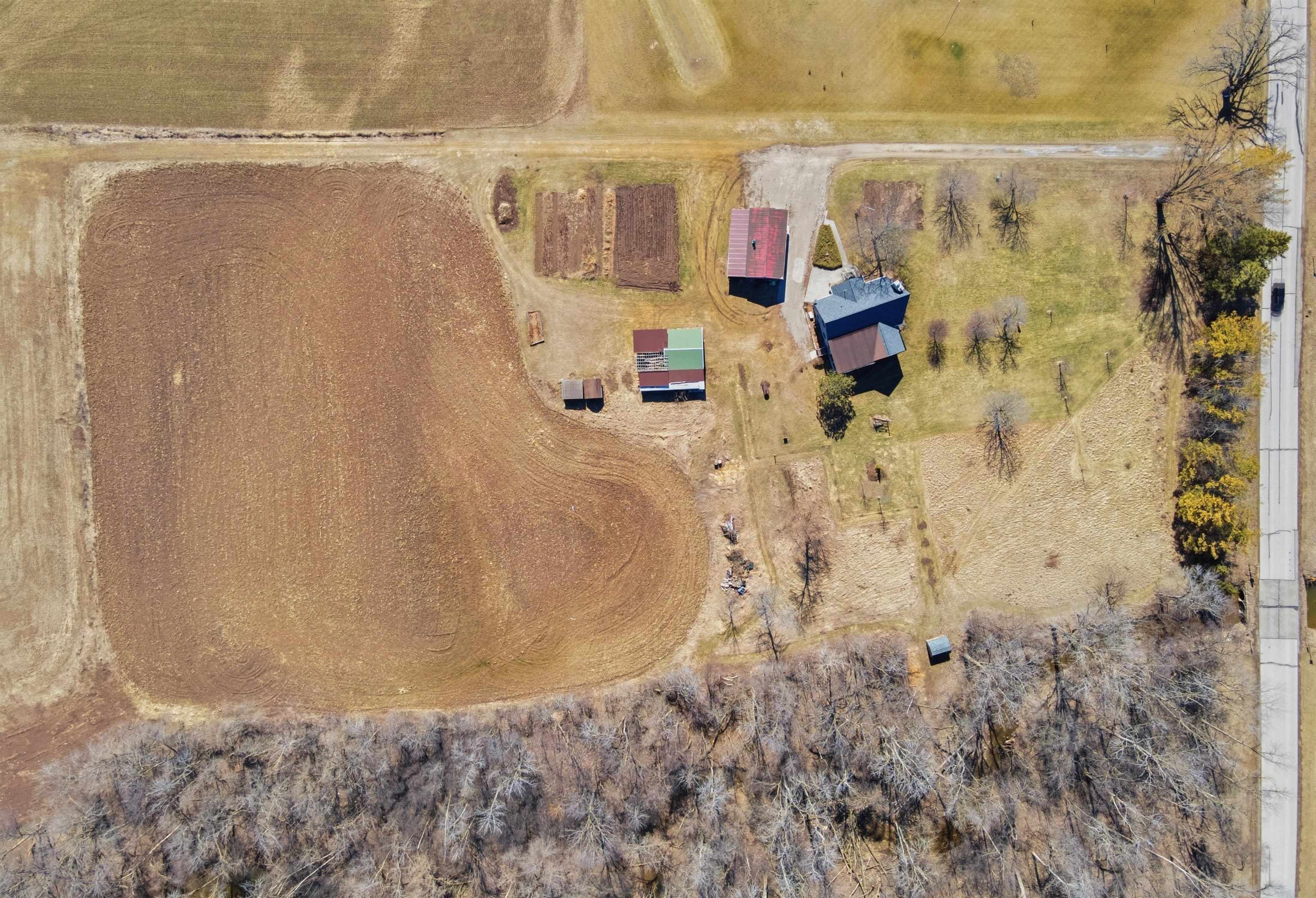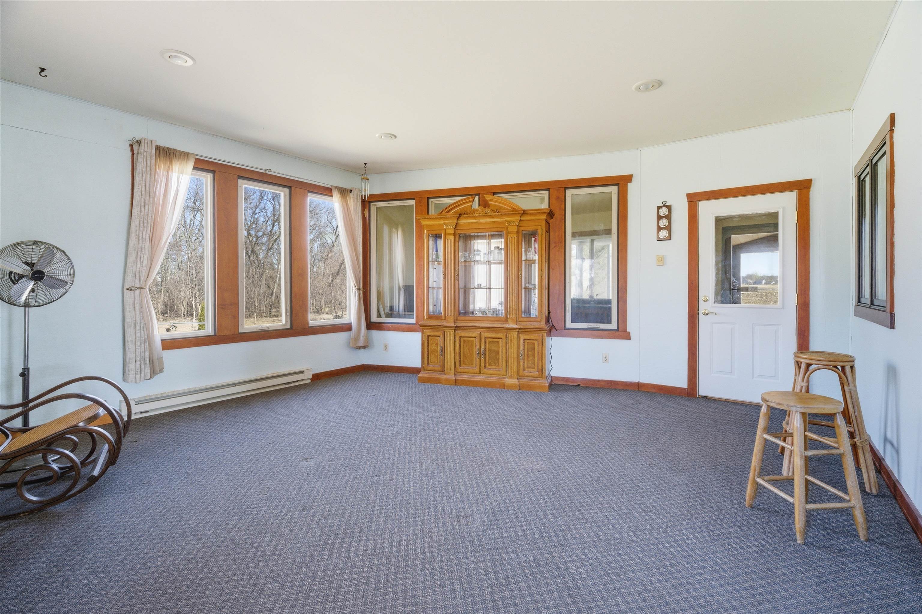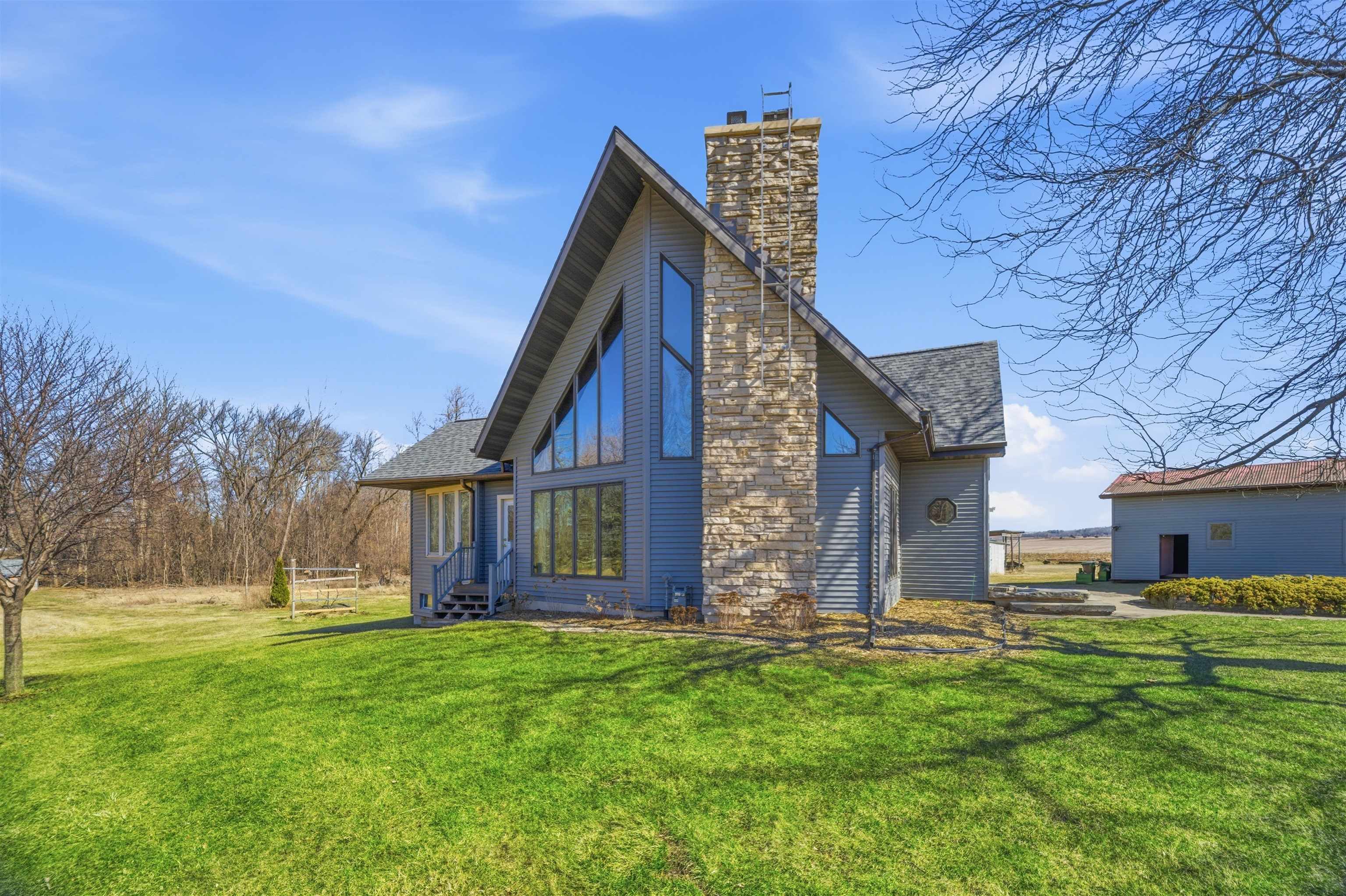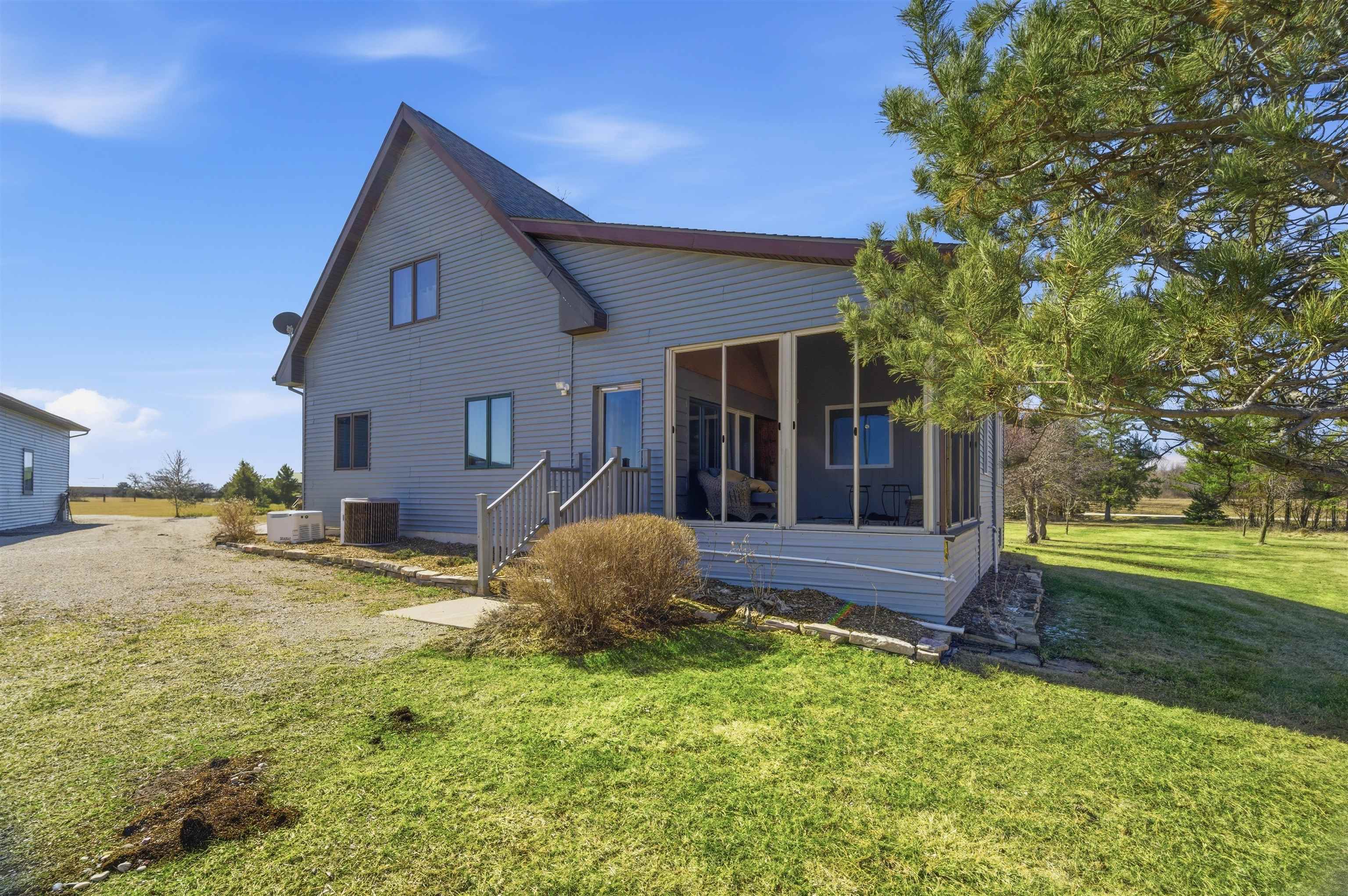 8 acre country property! 2700+ sq. ft. of living area. Kitchen, living room, family room, bedrooms, 1.5 baths, laundry room, mud room and 3-seasons room. Fireplace. Patio. Detached garage and metal shed. Large yard.