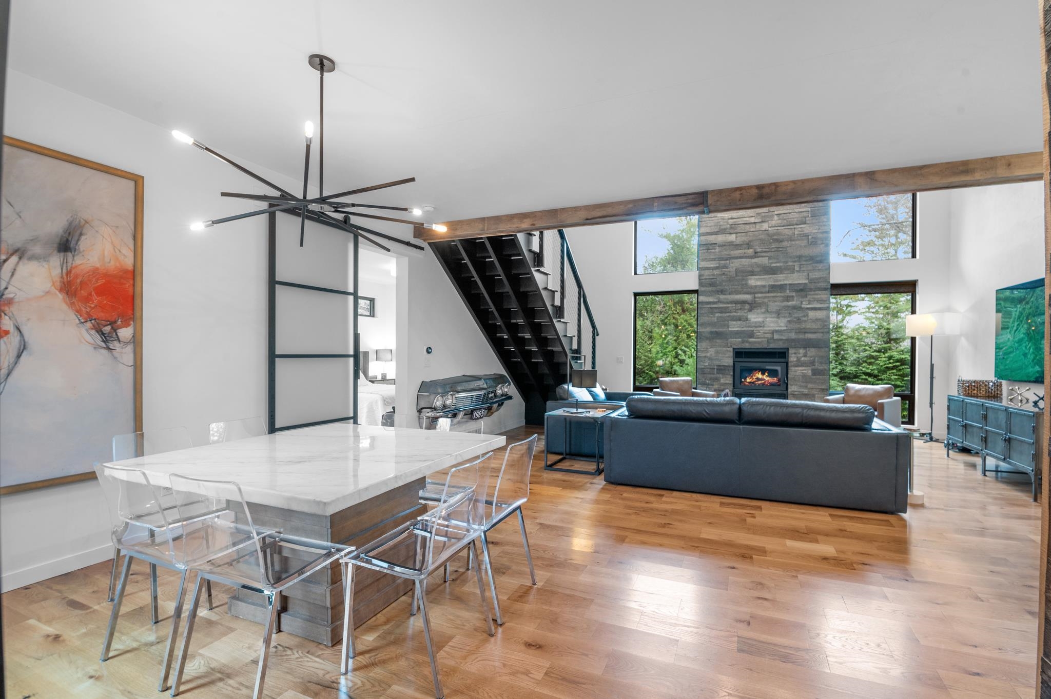 Stunning home better than new! Contemporary 2-story home with plenty of style and character boasting major curb appeal with well-kept landscaping around the home and tree lines. A convenient ideal location minutes away from all of the Downtown Sturgeon Bay amenities and a quick drive to HWY access! Home comes with a deeded boat slip #110 at the Marina. Zero entry entrance into the open main-level that welcomes you with gorgeous fixtures and fireplace with large daylight windows. Kitchen features butler pantry, tiled backsplash, and breakfast bar with additional seating. Two generously sized bedrooms on the main level. Primary suite has en-suite bath w/tiled walk-in shower and closet. Upper level boast two bedrooms with access to full bath and laundry.