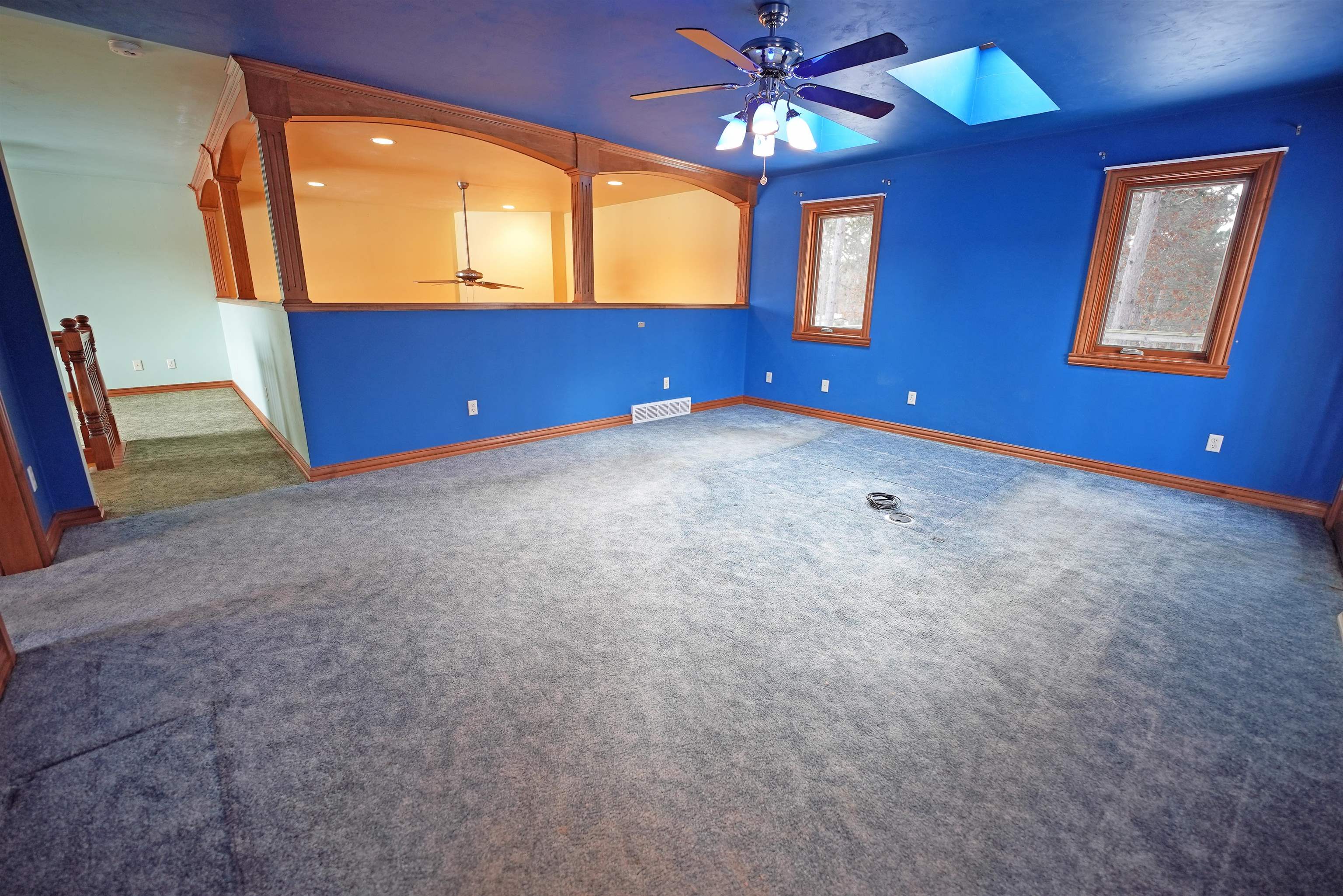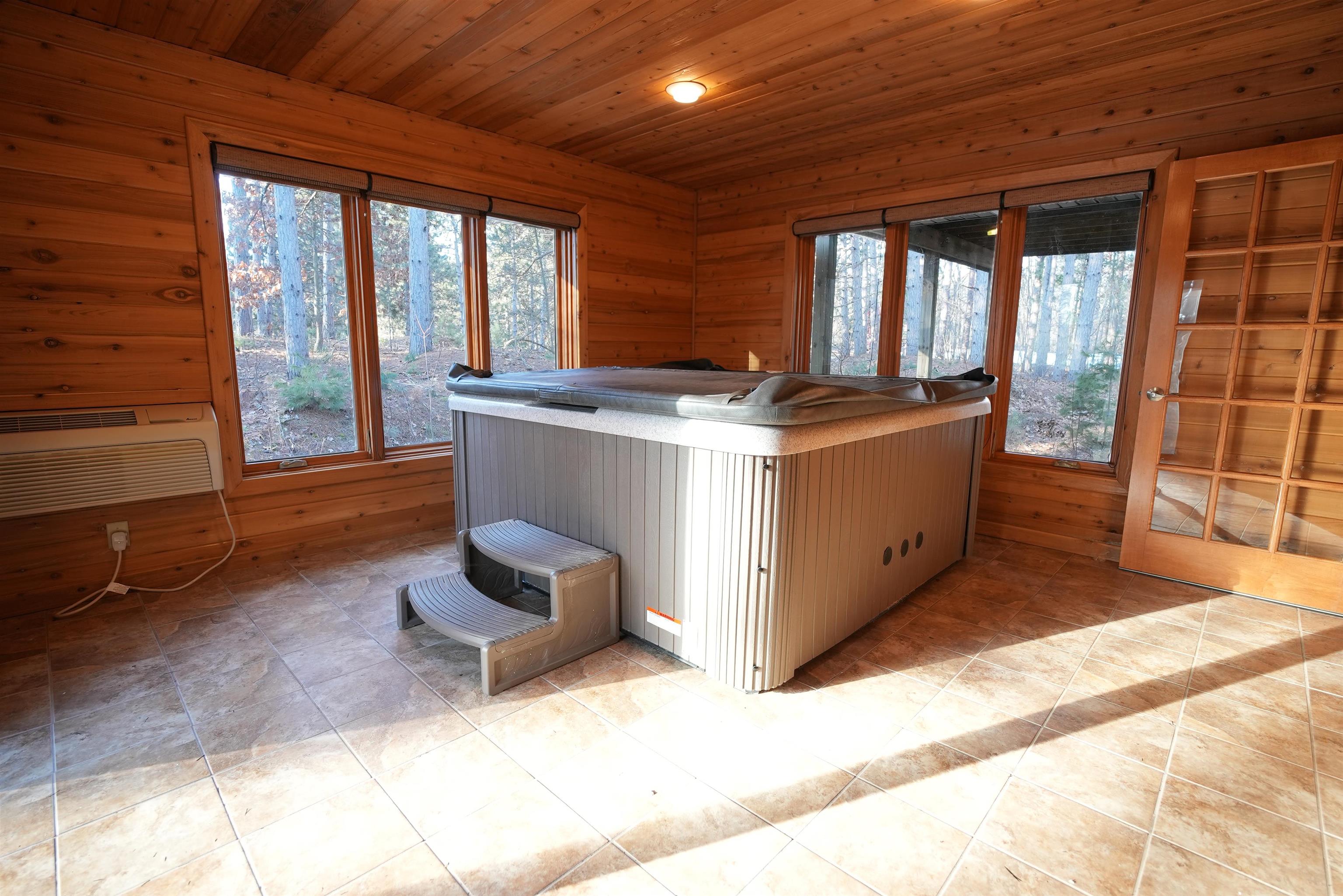 Great opportunity in a desirable Suamico neighborhood! This 3-bedroom, 2.5-bath home sits on 3.65 acres and offers a spacious kitchen with ample counter and cabinet space, a large center island, and hardwood floors flowing into the dining area. The two-story living room features a cozy fireplace and access to the sunroom, currently outfitted with a large hot tub for year-round relaxation. The main level includes two bedrooms, a full bath with dual sinks, and first-floor laundry. Upstairs offers a spacious primary suite with private bath, dual sinks, walk-in shower, and walk-in closet, plus a loft ideal for an office or flex space. Enjoy peaceful backyard views from the private deck off the primary suite. Some photos are virtually staged. Showings start 3/5.