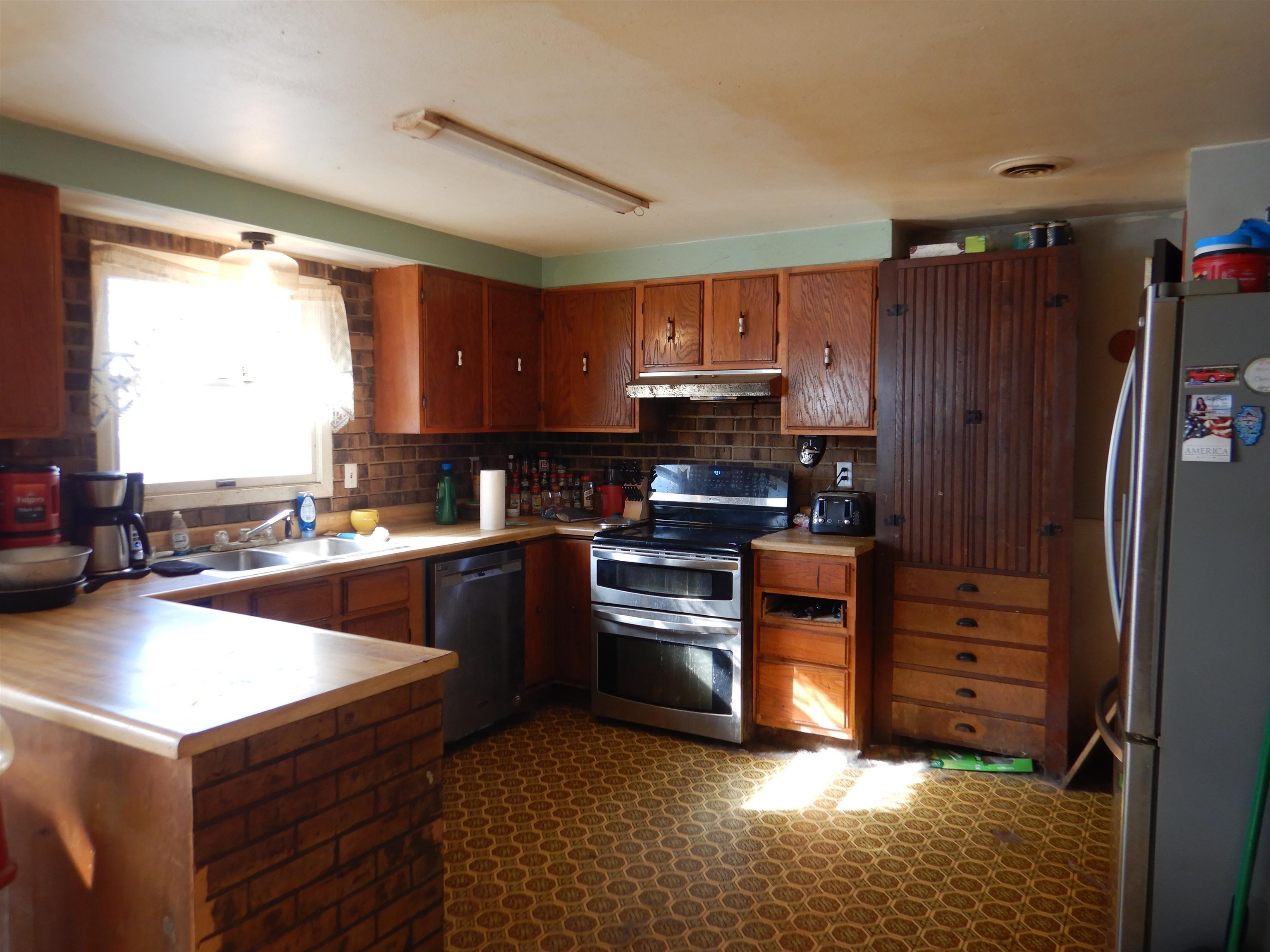 Some enjoy living in the heart of Suring right across from the School. This home has 3 bedroom 2 full bath with 1974 sq ft. Home needs some love and care and a very good cleaning! Master has full master bath. Main bath updated with walk in shower. Kitchen open with large island and lots of counter space. Lower level has finished kitchen area with stove and refrigerator. 2 other rooms could be extra living/family room and a office area. The Lower level rooms have concrete block walls. Partially finished area with work bench and space for tools. Back doors leads to back yard with small chain and link fence. Extra parking in back and canvas storage shed included in sale. Come fix up and make this property yours today! Tons of potential at this great price!!!