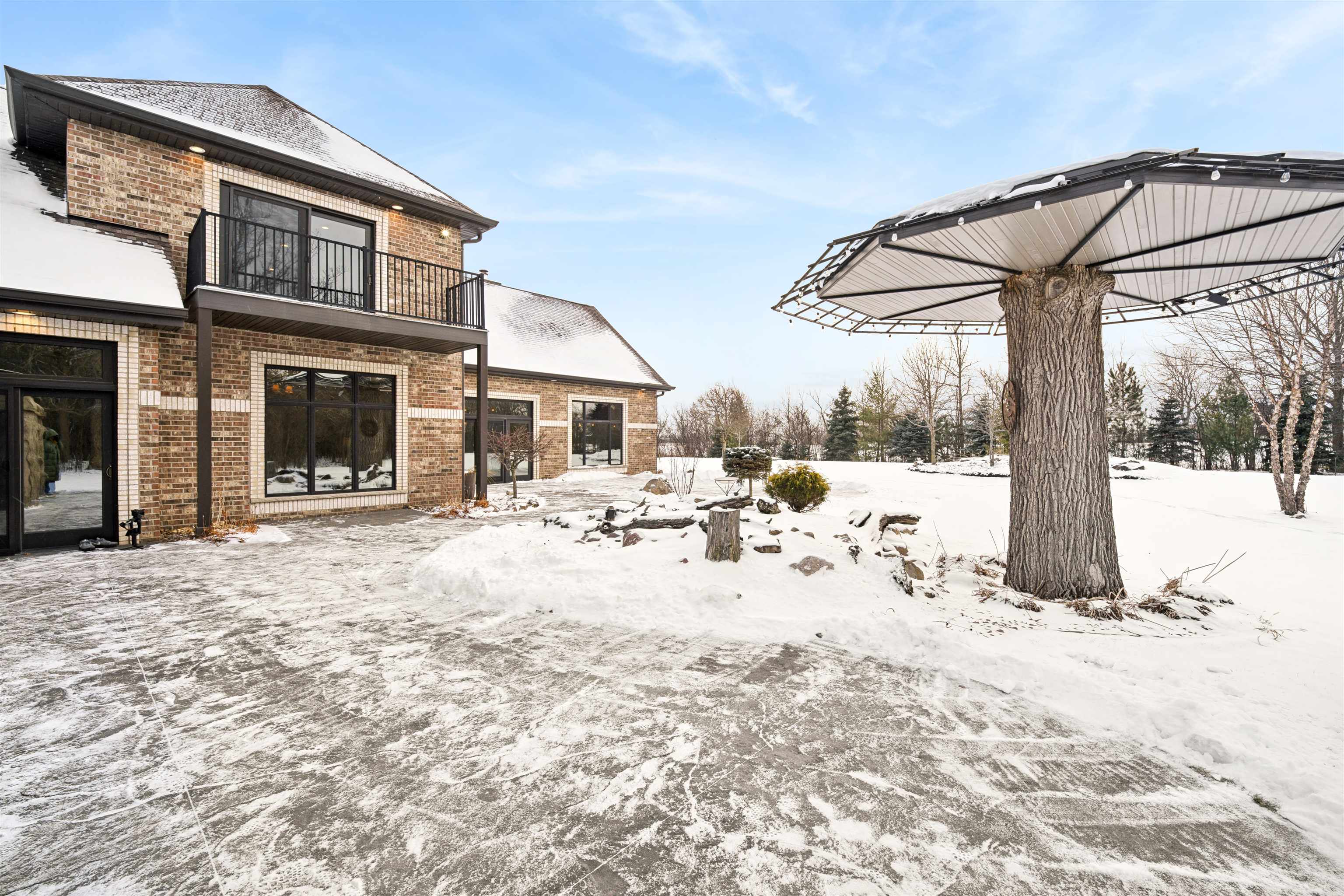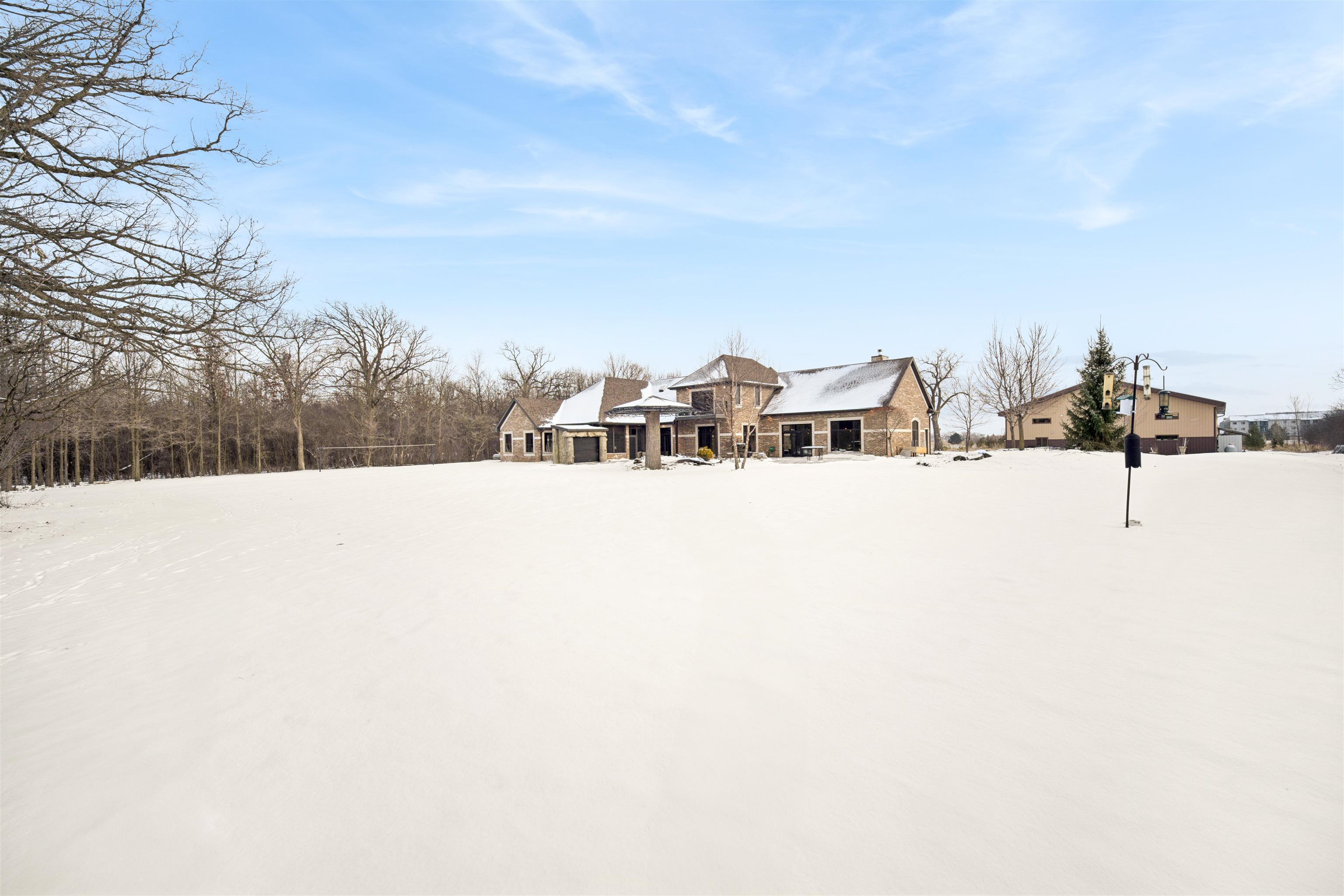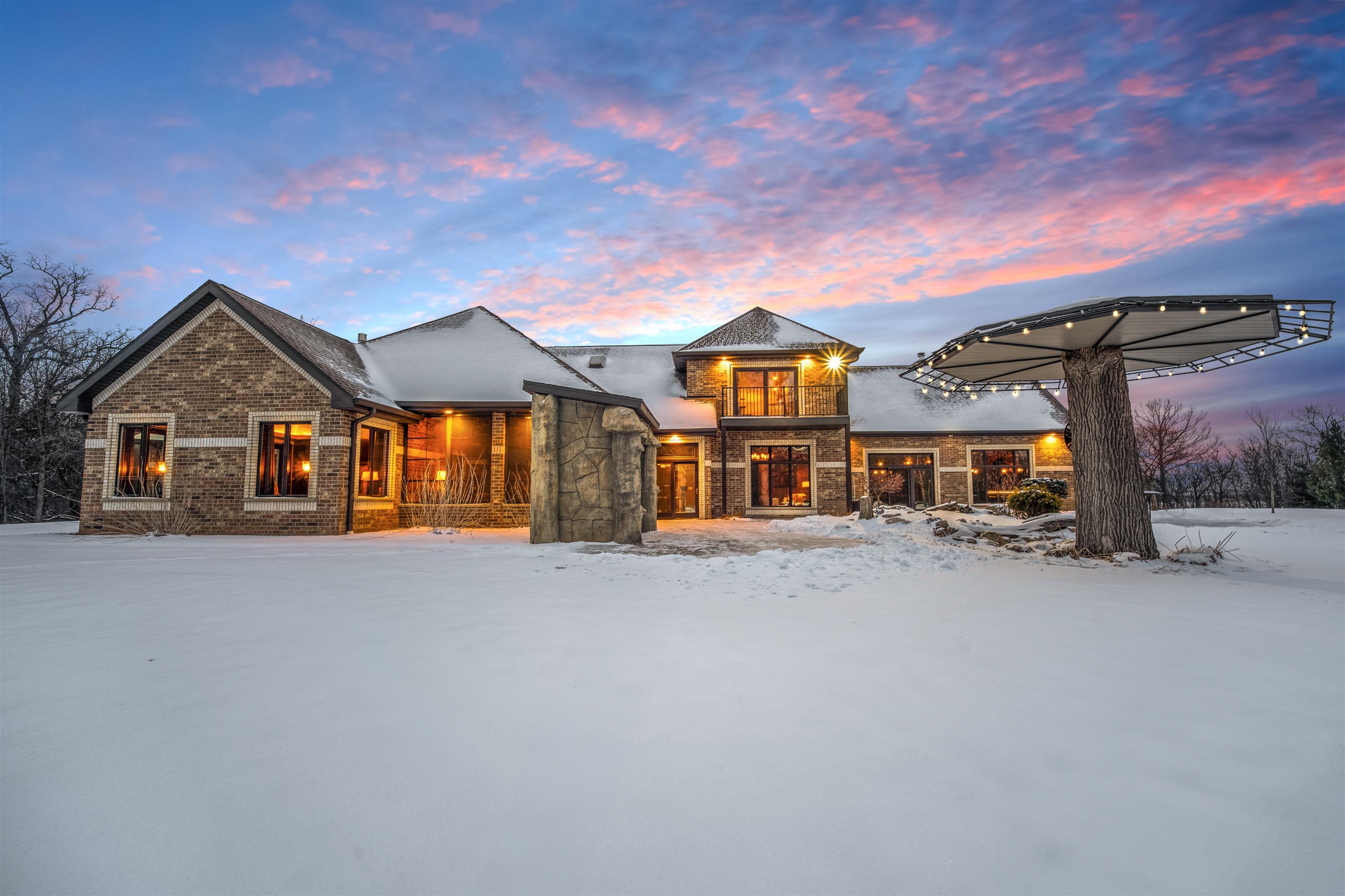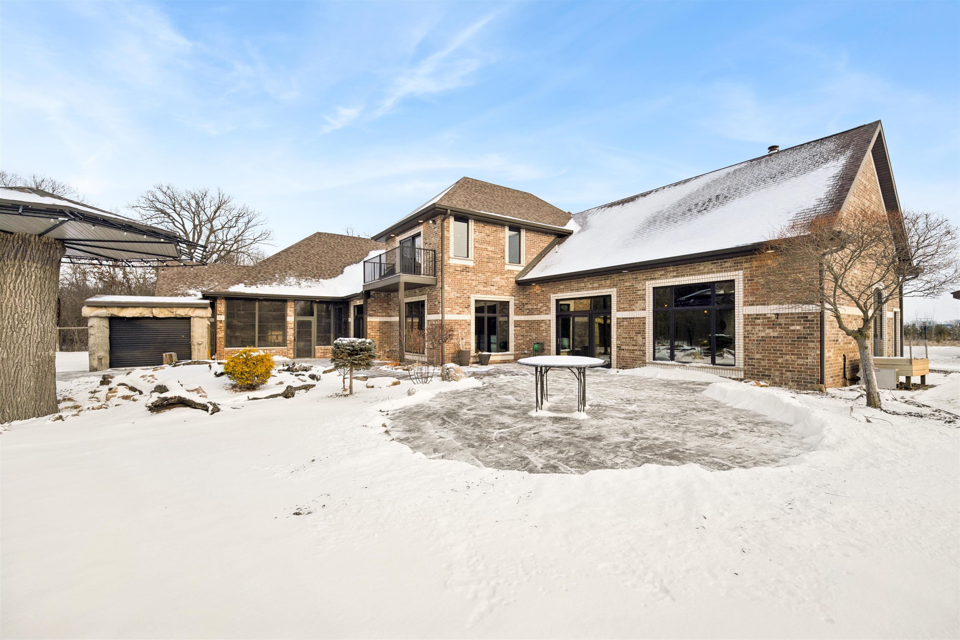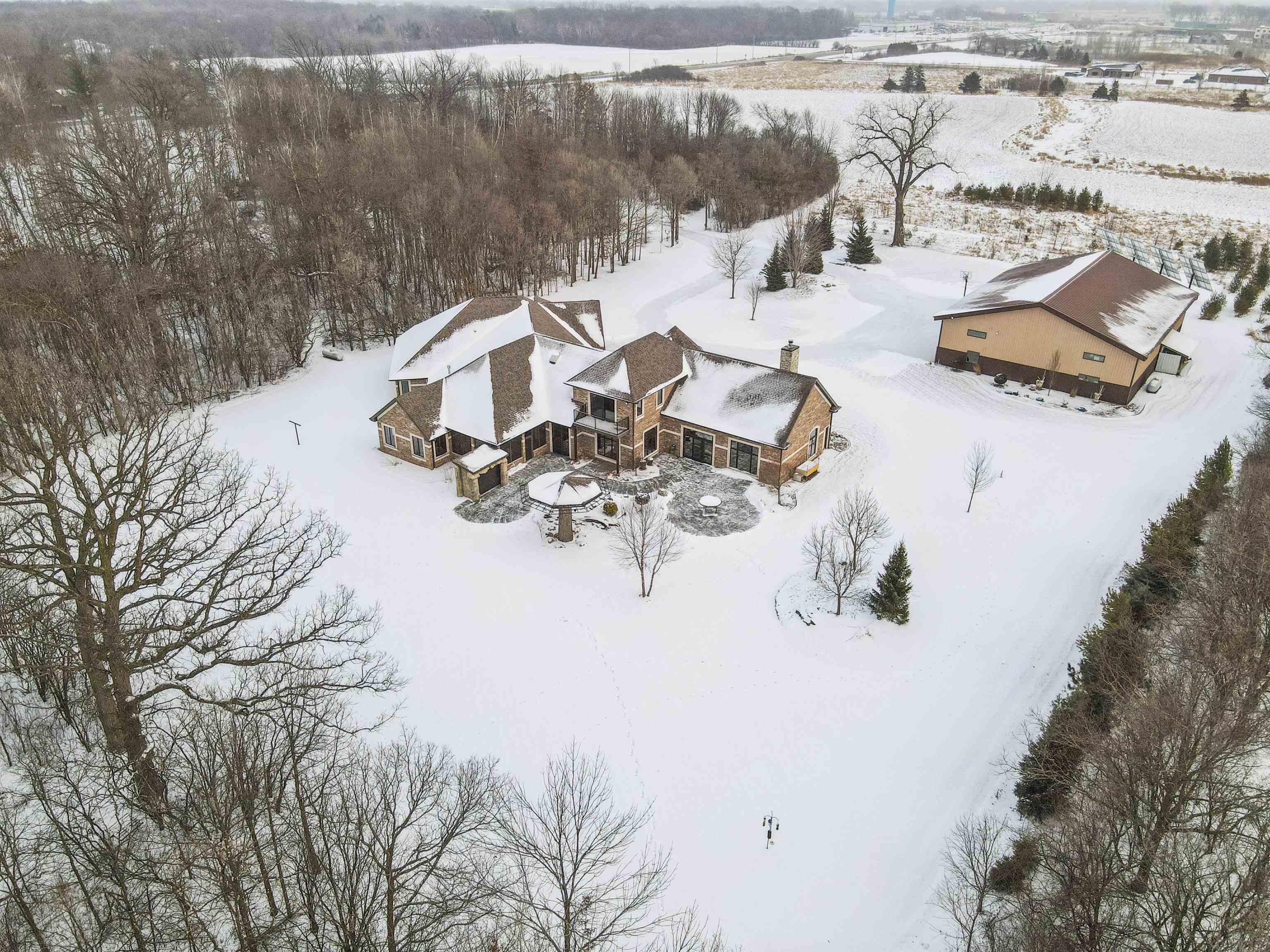Experience refined living in this ENERGY EFFICIENT and luxury home featuring a timeless brick & stone exterior. Property includes a 60X80 dream workshop with office, hunting/game rm, heated shop with loft, & bathroom that is perfect for business, hobbies, or storage! Enjoy an elegant living space with gourmet kitchen that flows seamlessly to the adjacent living rm. Massive entertainment rm impresses with a wood-burning FP, custom bar, & theatre seating ideal for gatherings! Private primary suite is a true retreat with a cozy FP and spa inspired bath with tile shower & jetted tub! Large bedrooms, loads of storage space, finished attached garage, beautiful sunporch set up for hot tub, gorgeous yard w/ waterfalls & solar lighting! High efficiency with Geothermal system & 4 solar panels!