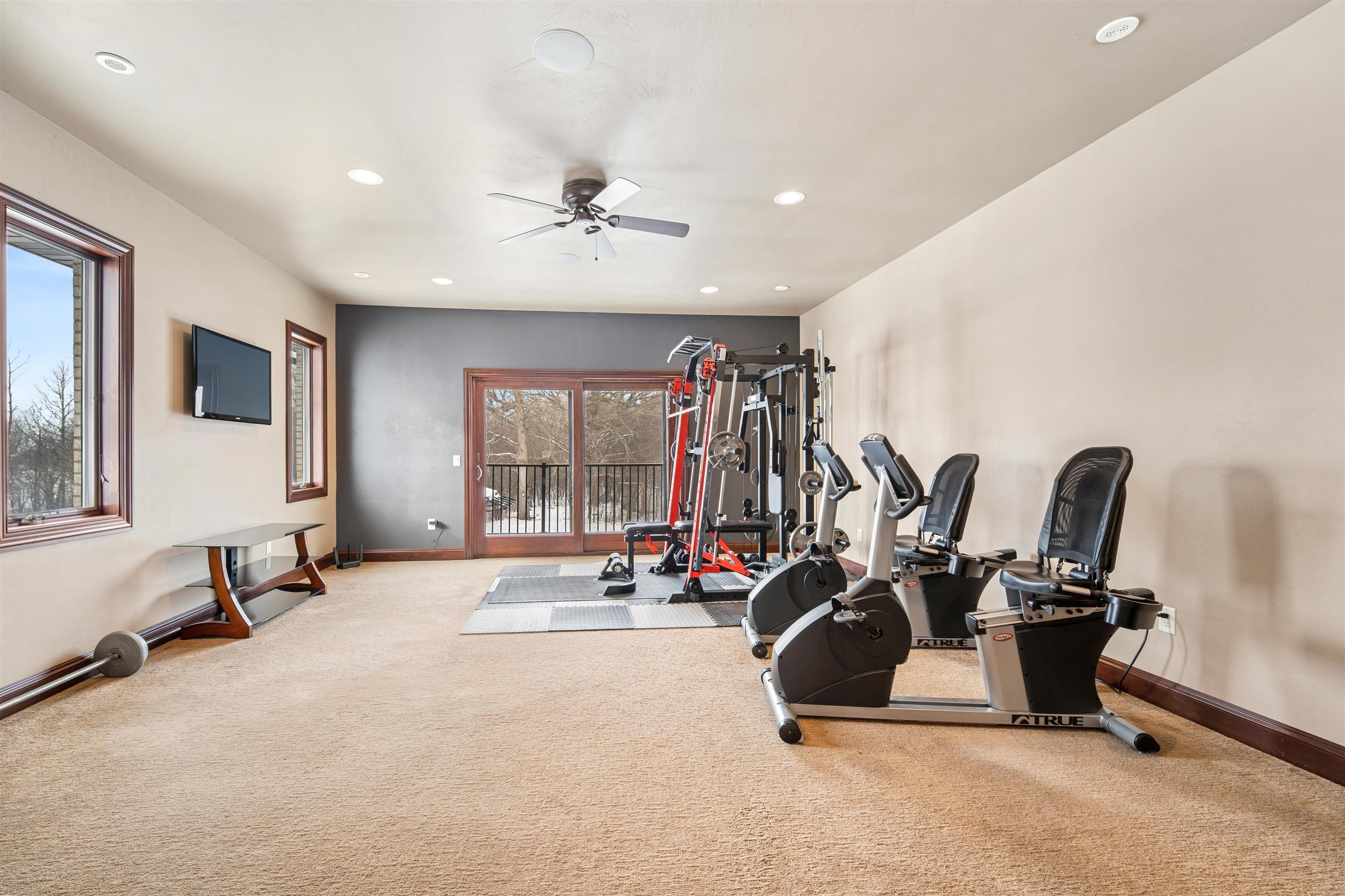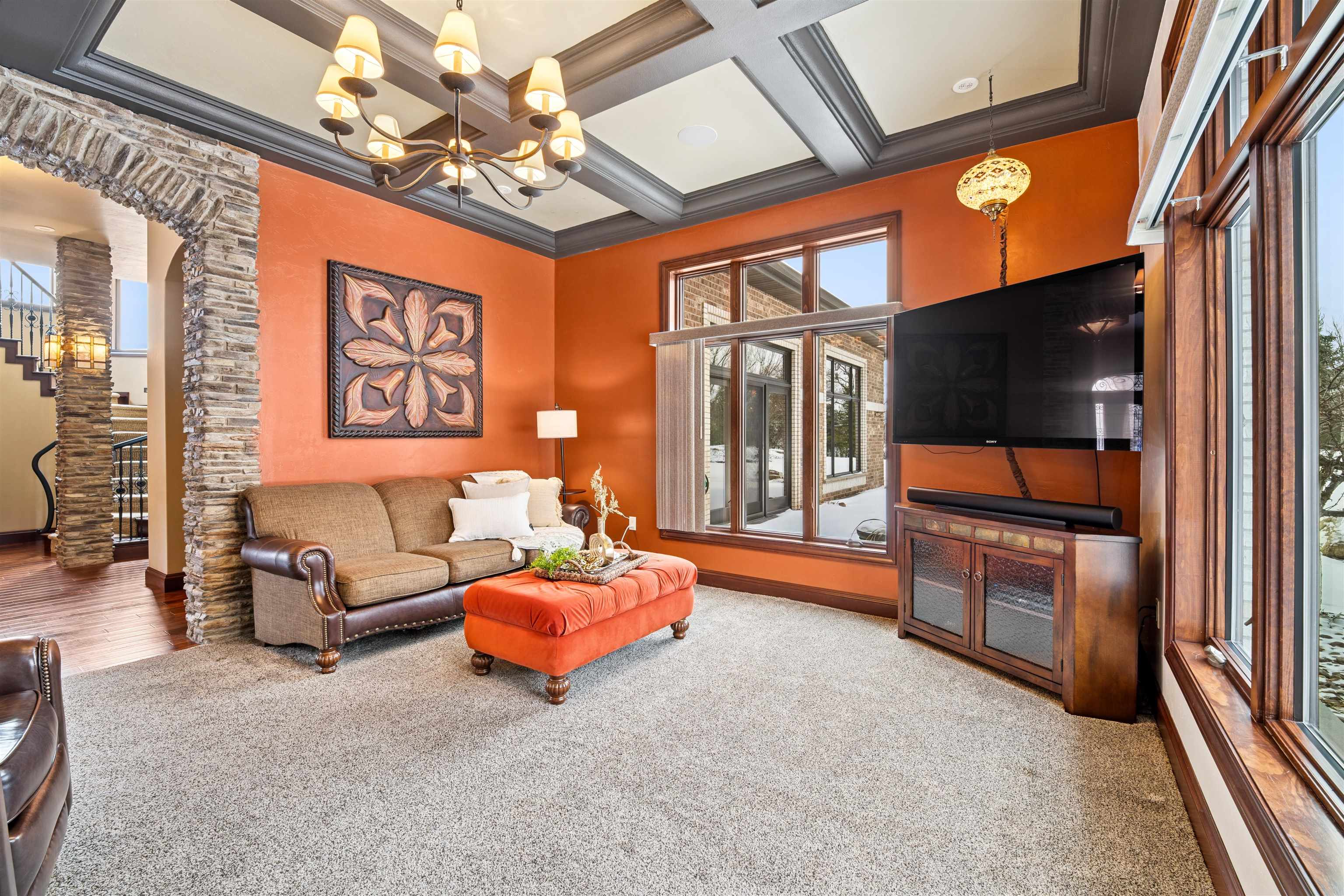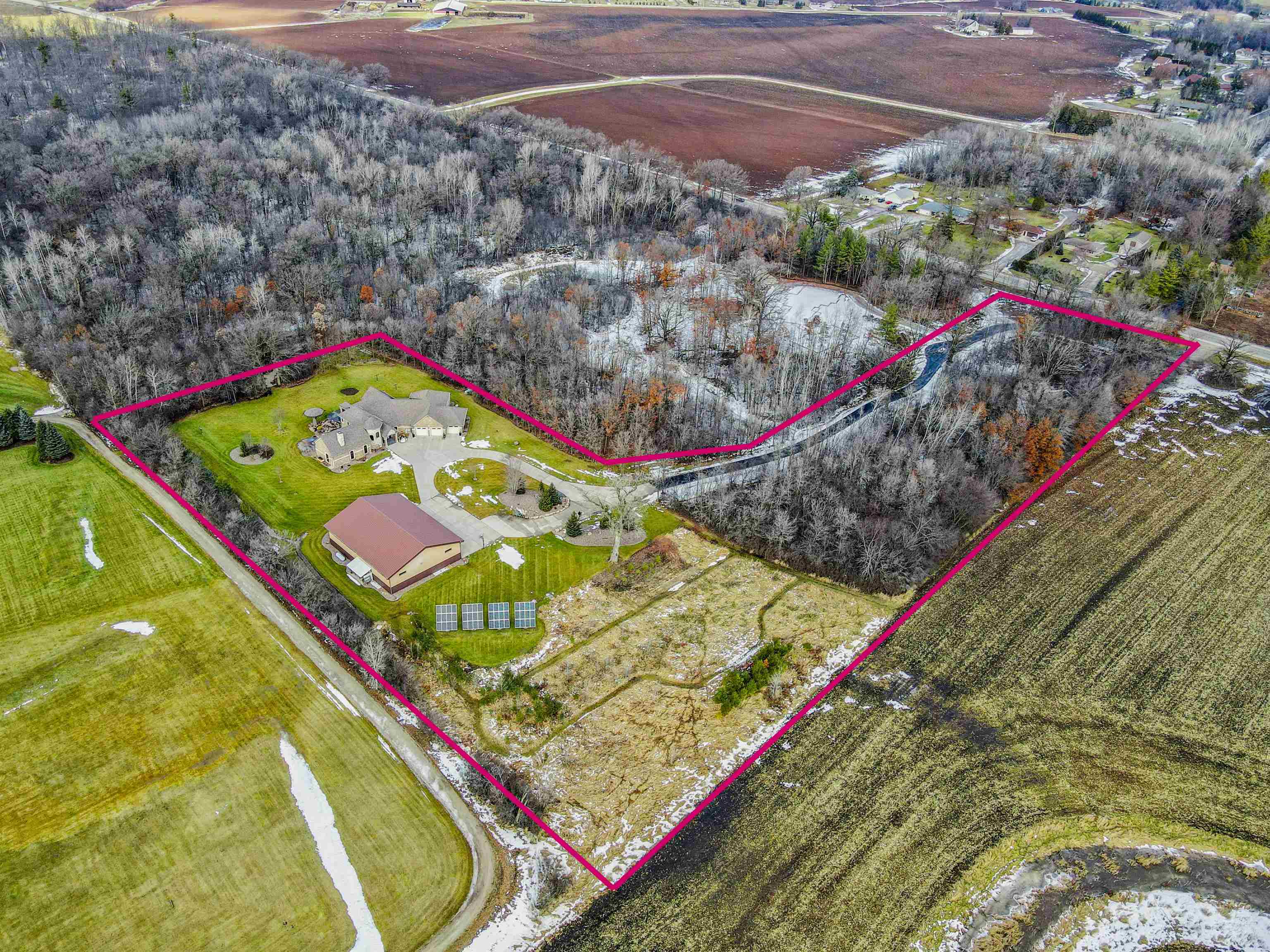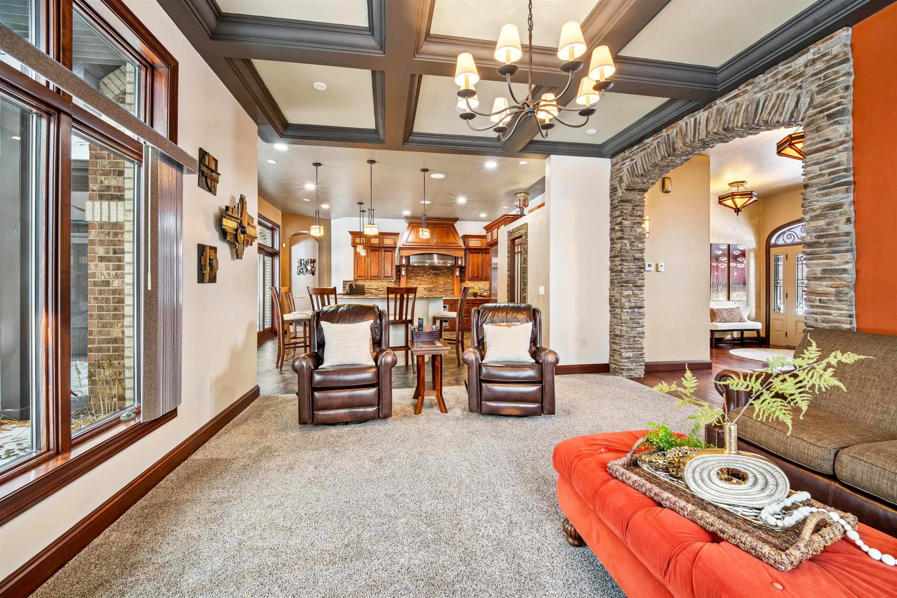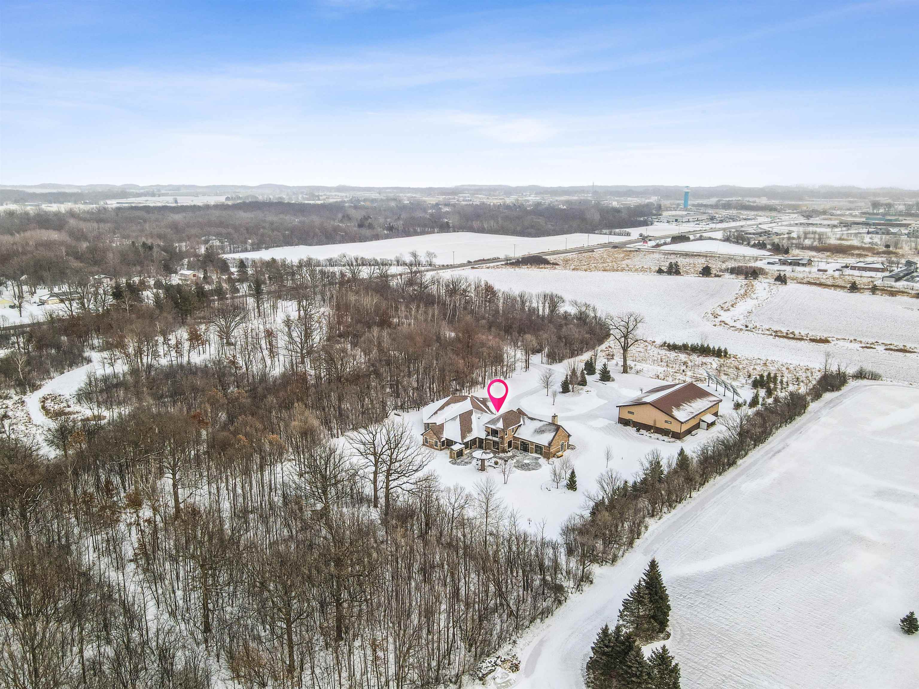 Experience refined living in this ENERGY EFFICIENT and luxury home featuring a timeless brick & stone exterior. Property includes a 60X80 dream workshop with office, hunting/game rm, heated shop with loft, & bathroom that is perfect for business, hobbies, or storage! Enjoy an elegant living space with gourmet kitchen that flows seamlessly to the adjacent living rm. Massive entertainment rm impresses with a wood-burning FP, custom bar, & theatre seating ideal for gatherings! Private primary suite is a true retreat with a cozy FP and spa inspired bath with tile shower & jetted tub! Large bedrooms, loads of storage space, finished attached garage, beautiful sunporch set up for hot tub, gorgeous yard w/ waterfalls & solar lighting! High efficiency with Geothermal system & 4 solar panels!
