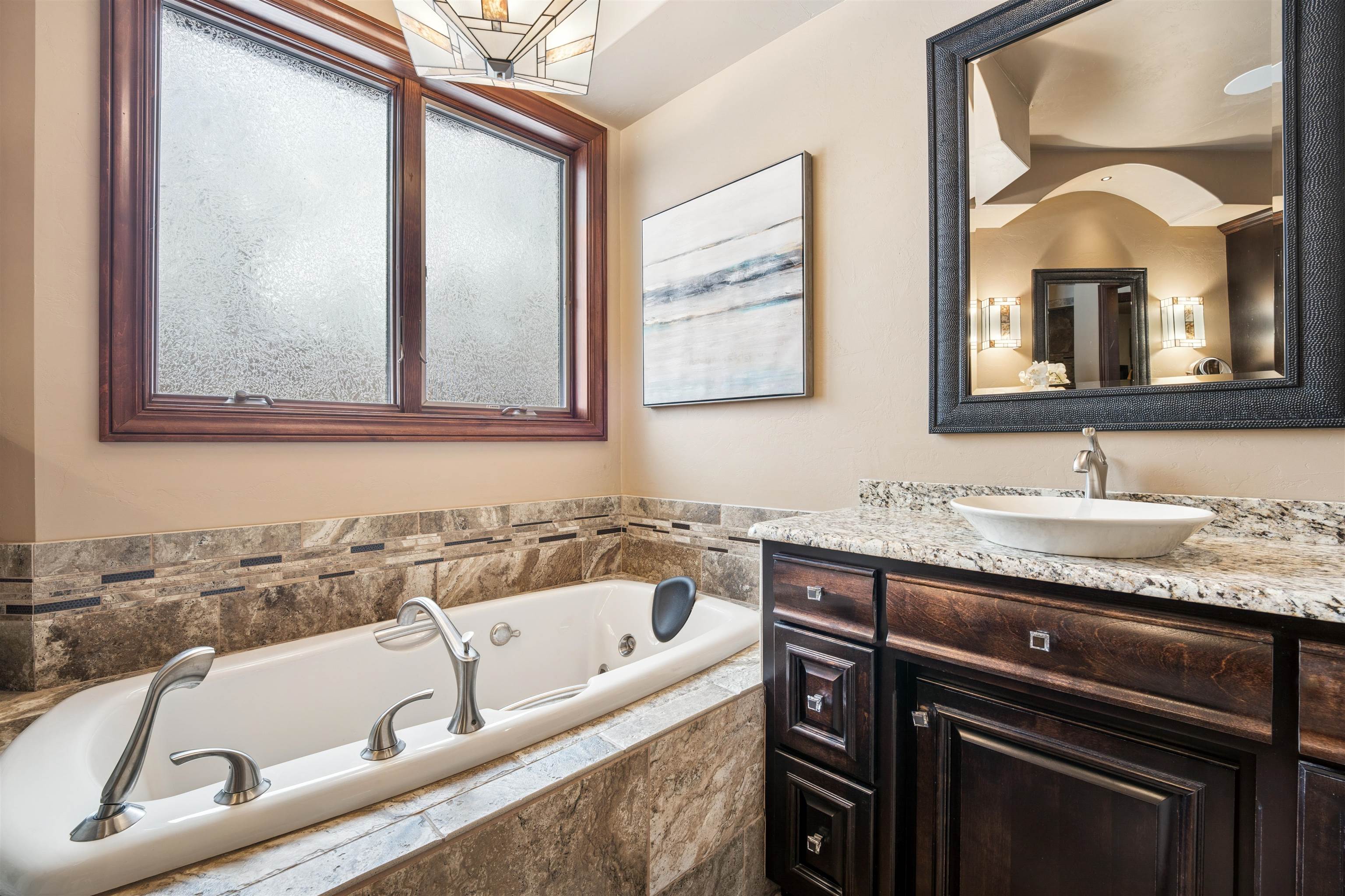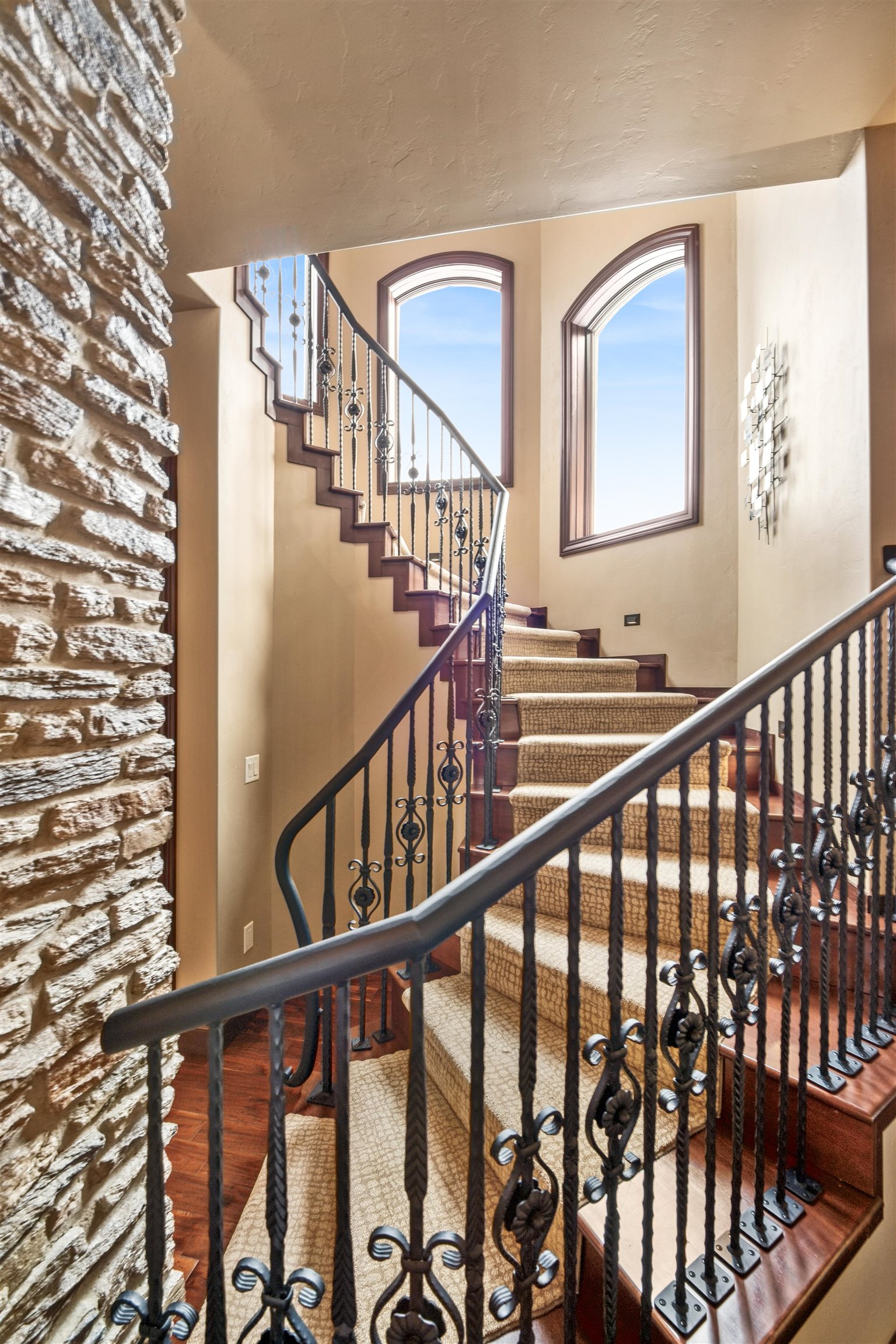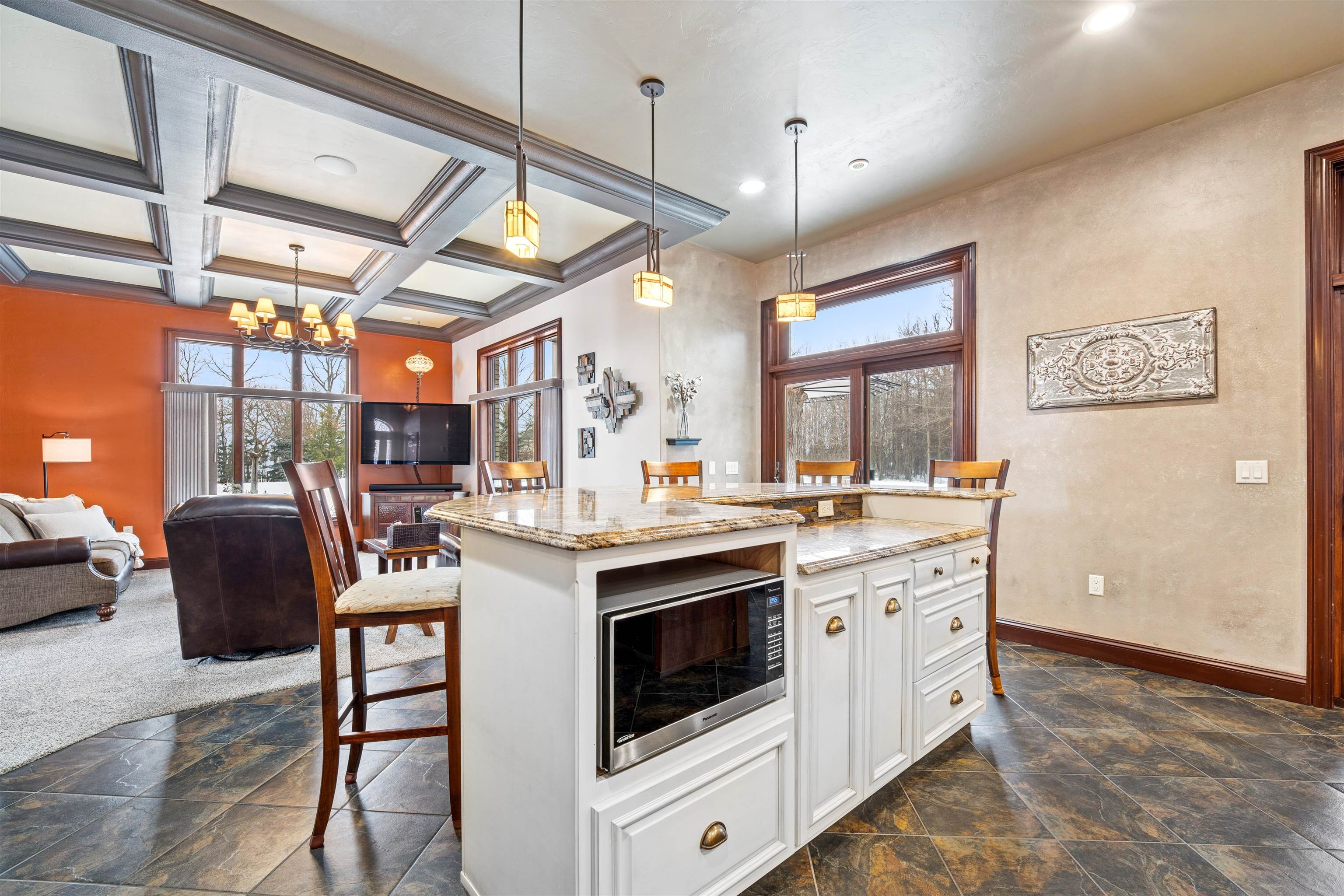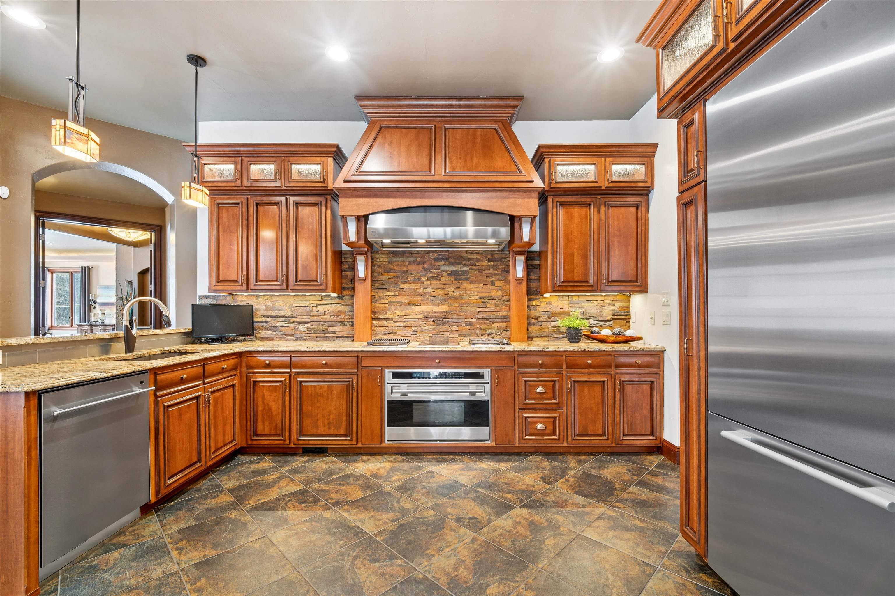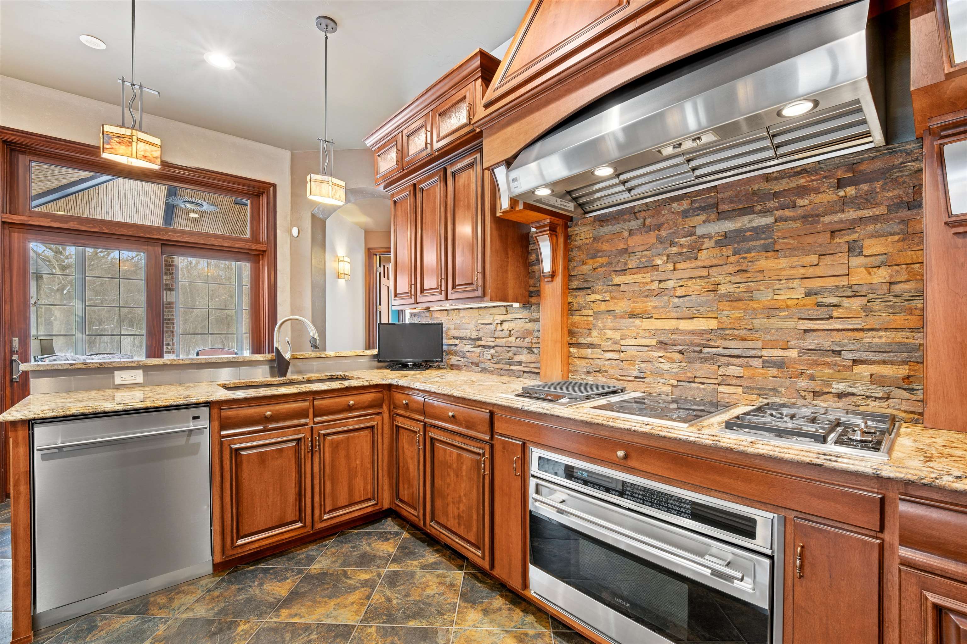 Experience refined living in this ENERGY EFFICIENT and luxury home featuring a timeless brick & stone exterior. Property includes a 60X80 dream workshop with office, hunting/game rm, heated shop with loft, & bathroom that is perfect for business, hobbies, or storage! Enjoy an elegant living space with gourmet kitchen that flows seamlessly to the adjacent living rm. Massive entertainment rm impresses with a wood-burning FP, custom bar, & theatre seating ideal for gatherings! Private primary suite is a true retreat with a cozy FP and spa inspired bath with tile shower & jetted tub! Large bedrooms, loads of storage space, finished attached garage, beautiful sunporch set up for hot tub, gorgeous yard w/ waterfalls & solar lighting! High efficiency with Geothermal system & 4 solar panels!