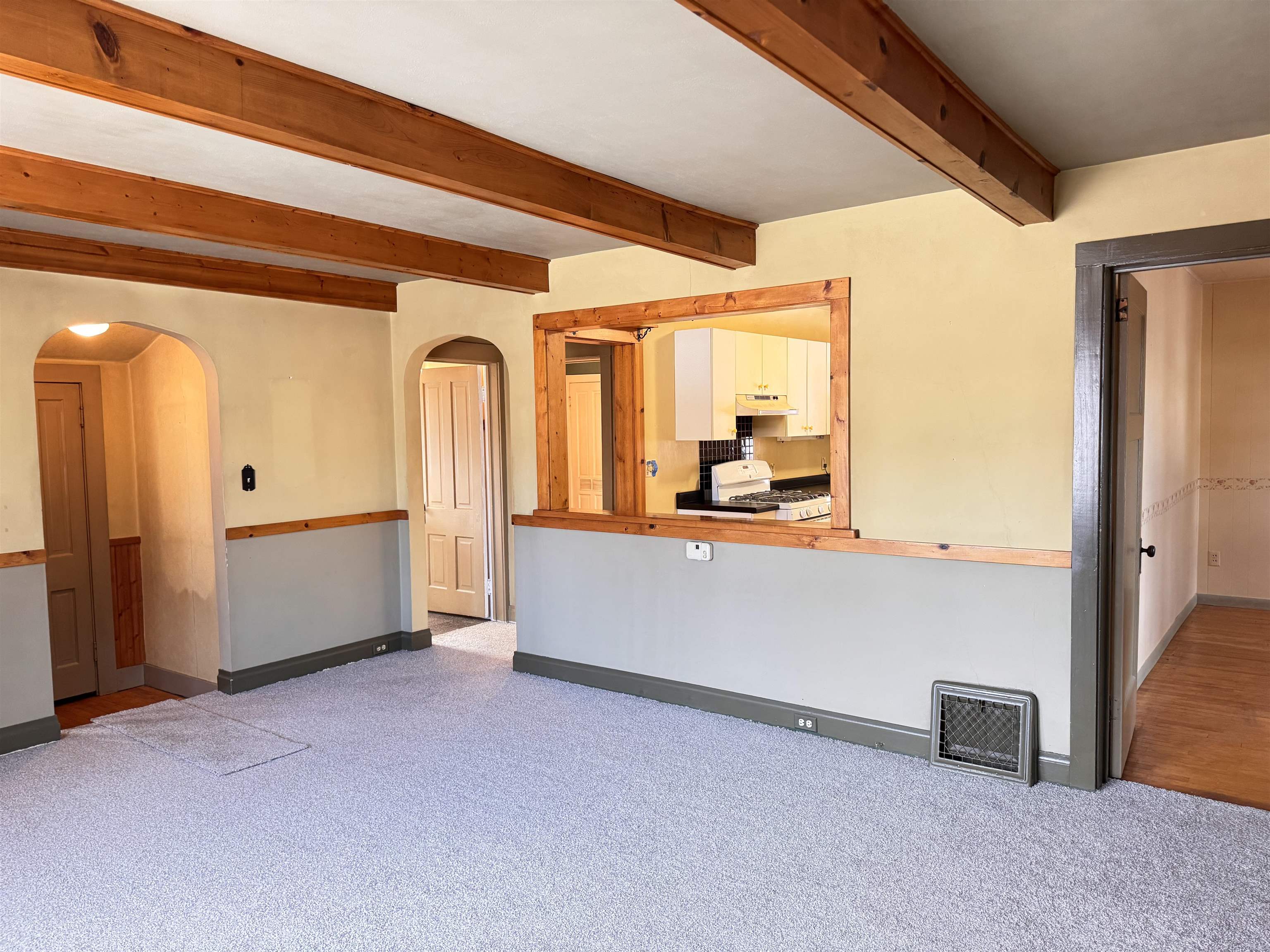 Enjoy the convenience of City of Waupaca living in this well-located two-bedroom, one-bath home offering comfort and functionality. The living room features warm wood beams and a charming peek-through opening into the kitchen, creating an open, connected feel. The galley kitchen offers plenty of workspace and flows nicely into the home’s layout. You’ll appreciate the first-floor laundry, along with a full basement that provides ample storage. Additional living space includes a cozy family room, perfect for relaxing or entertaining. Outside, you’ll find a one-car detached garage for added convenience. A great opportunity for easy living in Waupaca, close to everyday amenities. The stove in the kitchen is not hooked up.