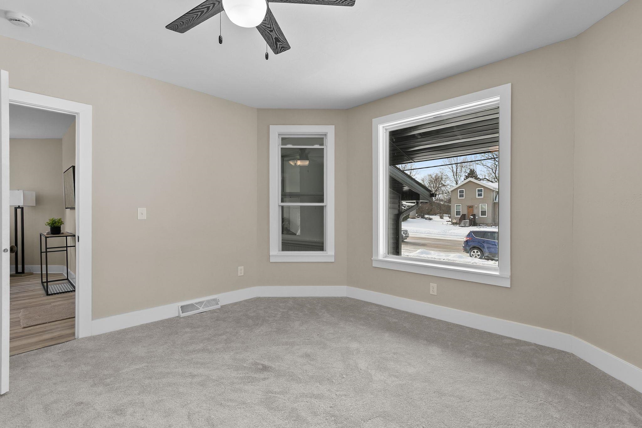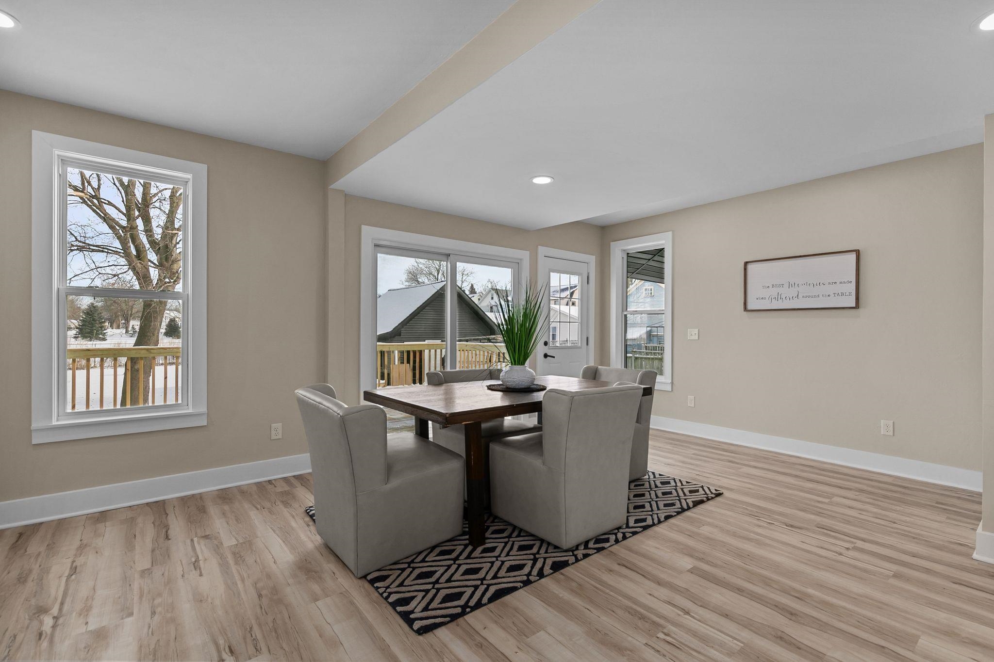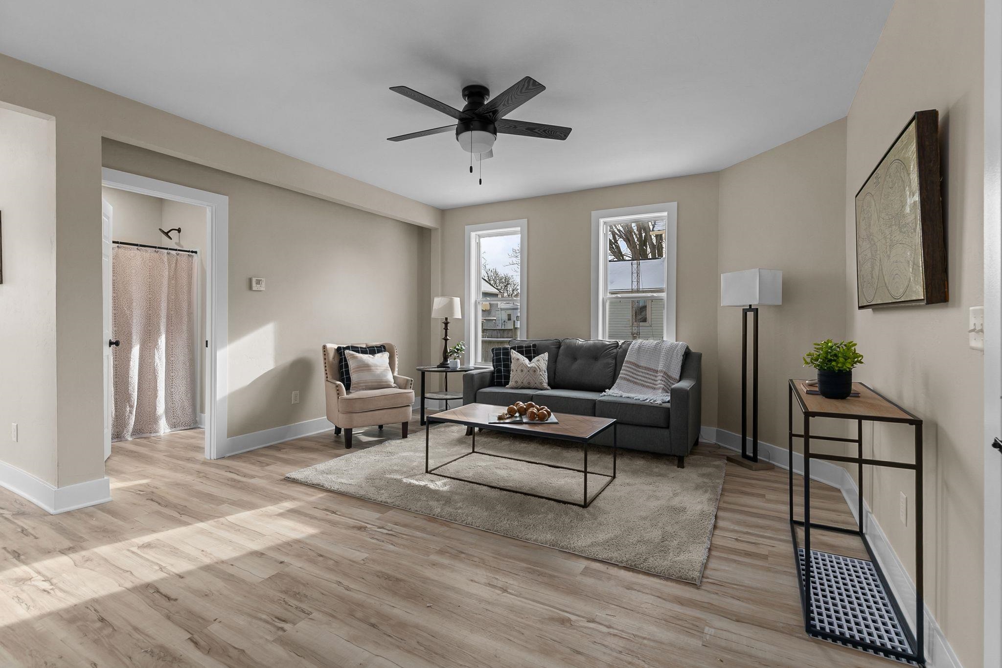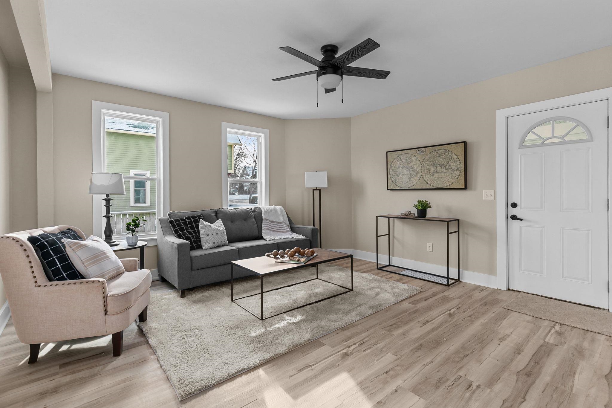 Step inside this completely updated 3 bed, 2 bath, 1.5-story home that blends modern style with peace of mind. Every inch has been thoughtfully renovated, offering a true move-in-ready experience. The exterior makes a bold first impression with brand-new black siding, a new roof, and new windows throughout, complemented by a spacious back deck ready for relaxing or entertaining. Inside, you’ll find a stunning new kitchen featuring quartz countertops, updated cabinetry, and modern finishes, along with two fully remodeled bathrooms. New flooring, fresh paint, updated electrical and plumbing, and all-new furnace and central A/C, leaving you worry free. Windows, A/C and Furnace have warranties. Welcome Home. Room Dimensions are estimates.