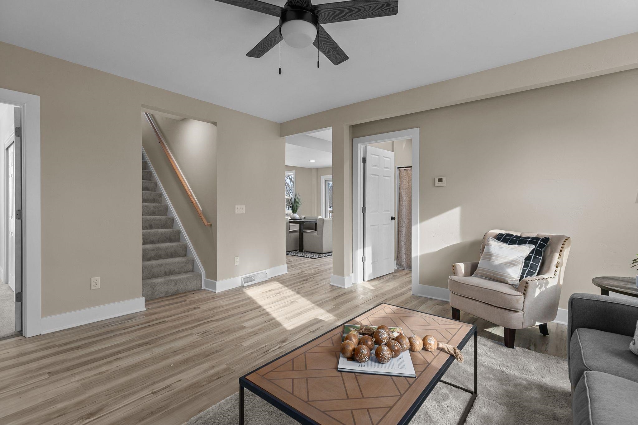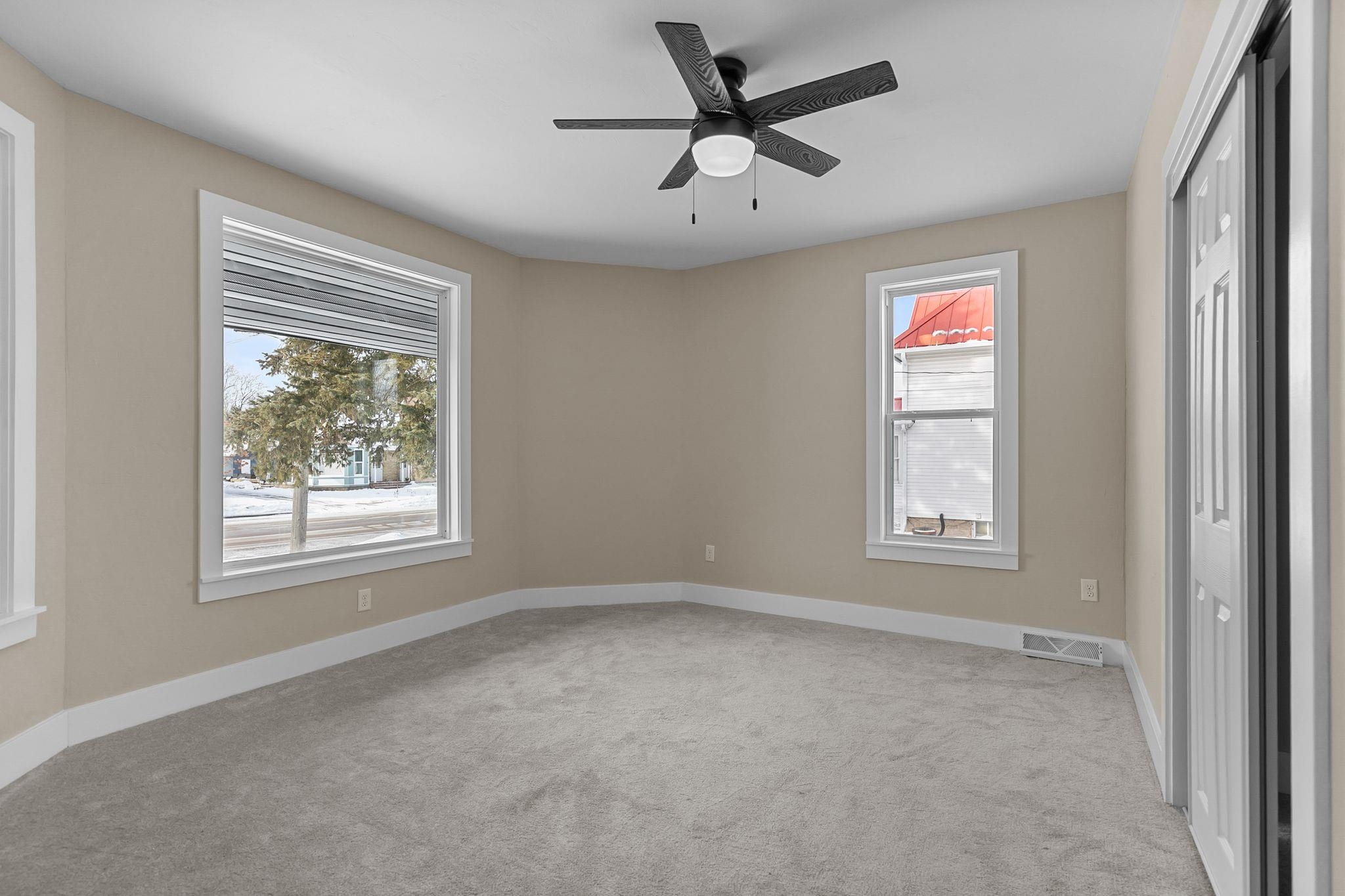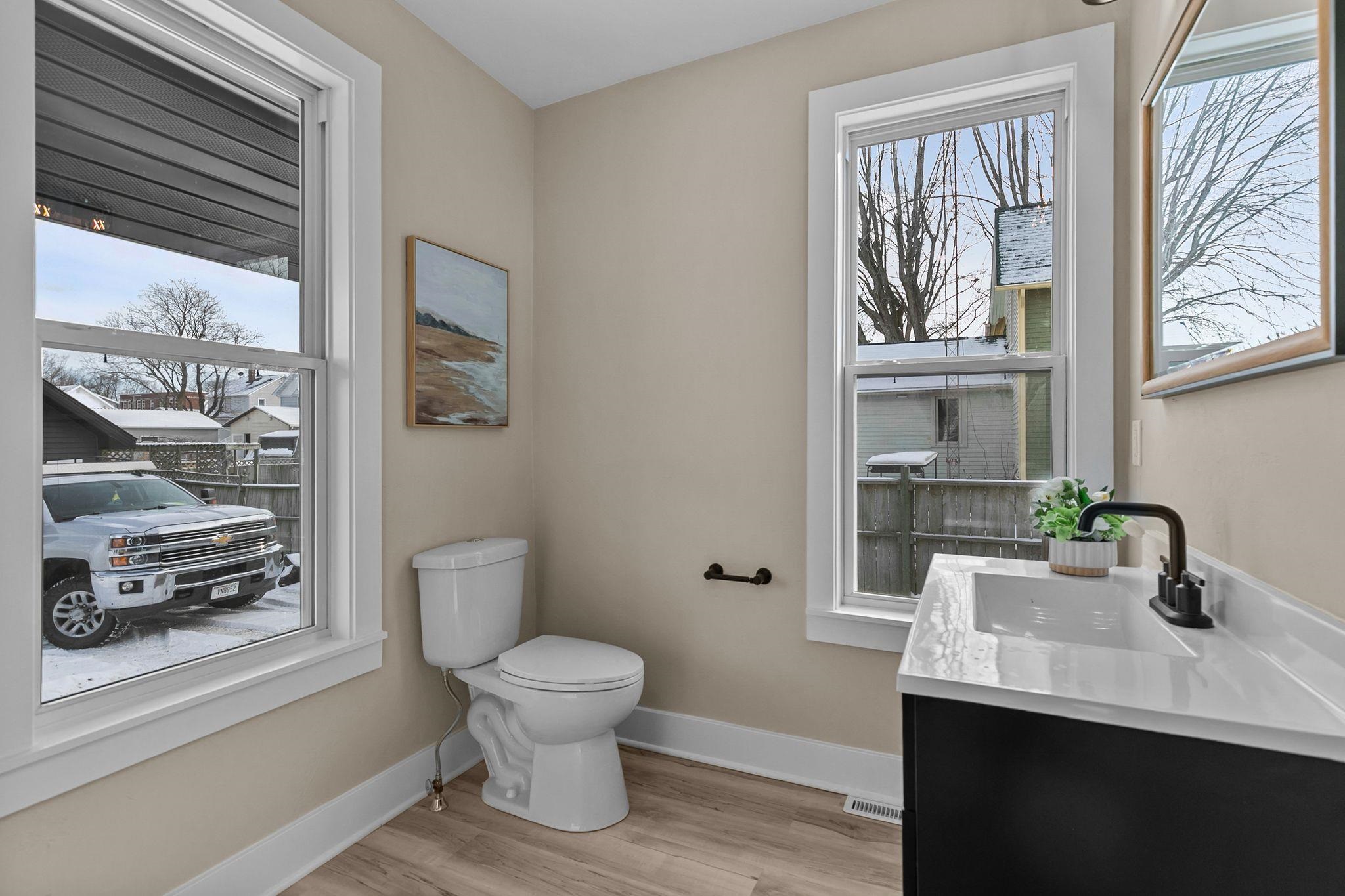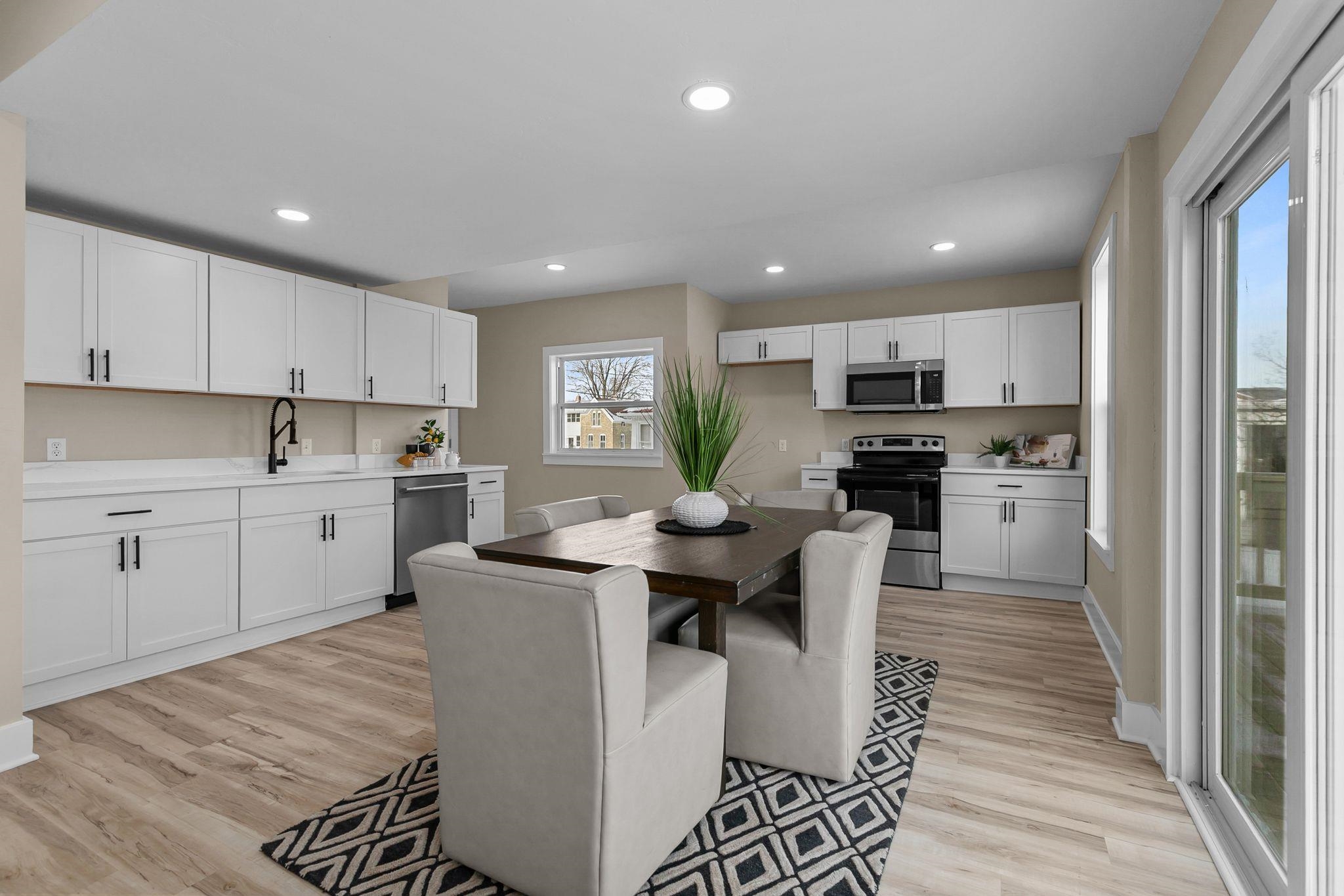 Step inside this completely updated 3 bed, 2 bath, 1.5-story home that blends modern style with peace of mind. Every inch has been thoughtfully renovated, offering a true move-in-ready experience. The exterior makes a bold first impression with brand-new black siding, a new roof, and new windows throughout, complemented by a spacious back deck ready for relaxing or entertaining. Inside, you’ll find a stunning new kitchen featuring quartz countertops, updated cabinetry, and modern finishes, along with two fully remodeled bathrooms. New flooring, fresh paint, updated electrical and plumbing, and all-new furnace and central A/C, leaving you worry free. Windows, A/C and Furnace have warranties. Welcome Home. Room Dimensions are estimates.