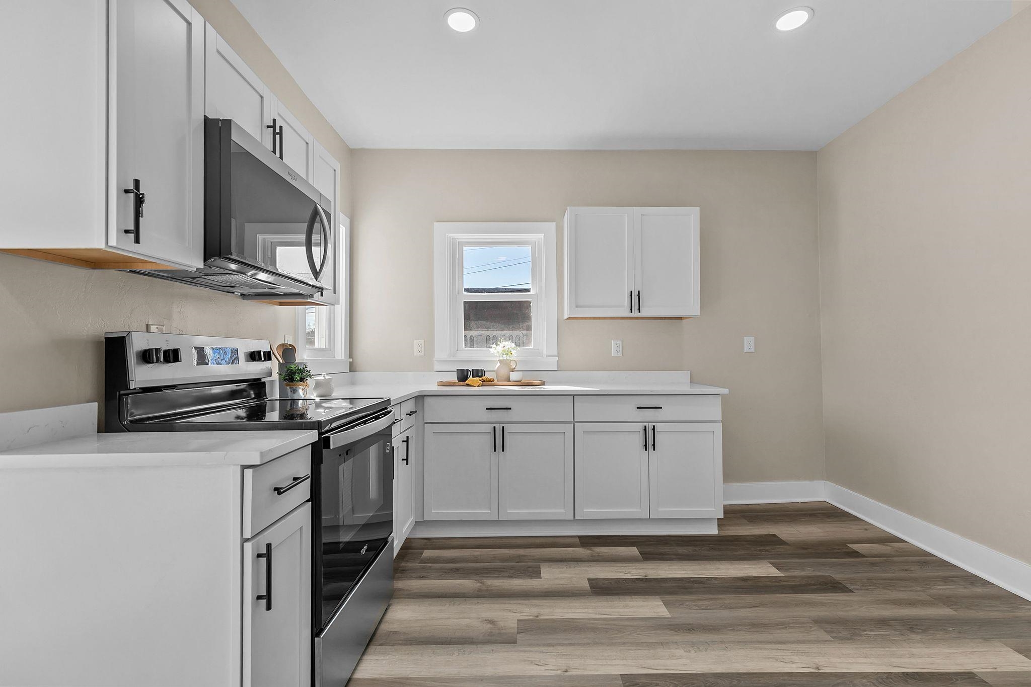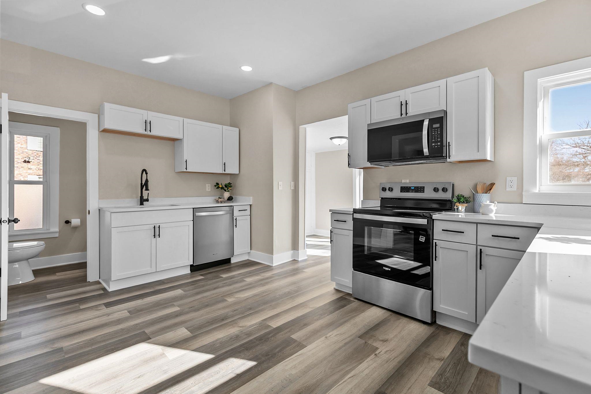 Beautifully updated 2-story home on a spacious 0.25-acre lot featuring 4 bedrooms and 1.5 baths. The brand-new kitchen offers quartz countertops, modern cabinetry, new flooring, and fresh paint throughout. New windows bring in abundant natural light, while the new roof and hot water heater provide peace of mind. Enjoy relaxing mornings in the enclosed front porch or entertaining on the outdoor deck overlooking the yard. This move-in ready home combines charm, comfort, and major updates, offering space to live, gather, and grow for years to come. Situated with plenty of outdoor space, this property offers flexibility for gardening, recreation, or future expansion while showcasing thoughtful improvements inside and out. Other room: enclosed front porch Room dimensions are estimates