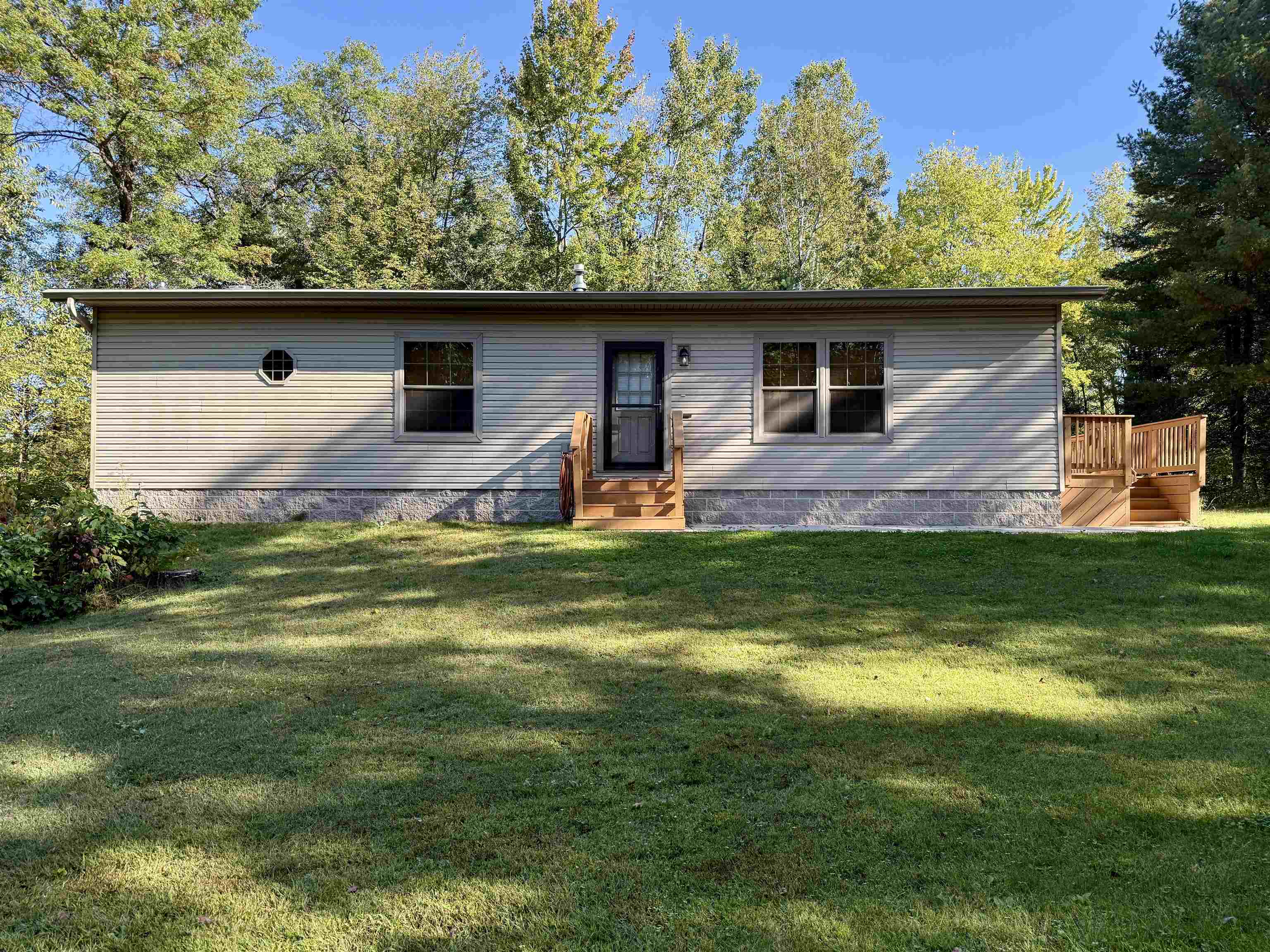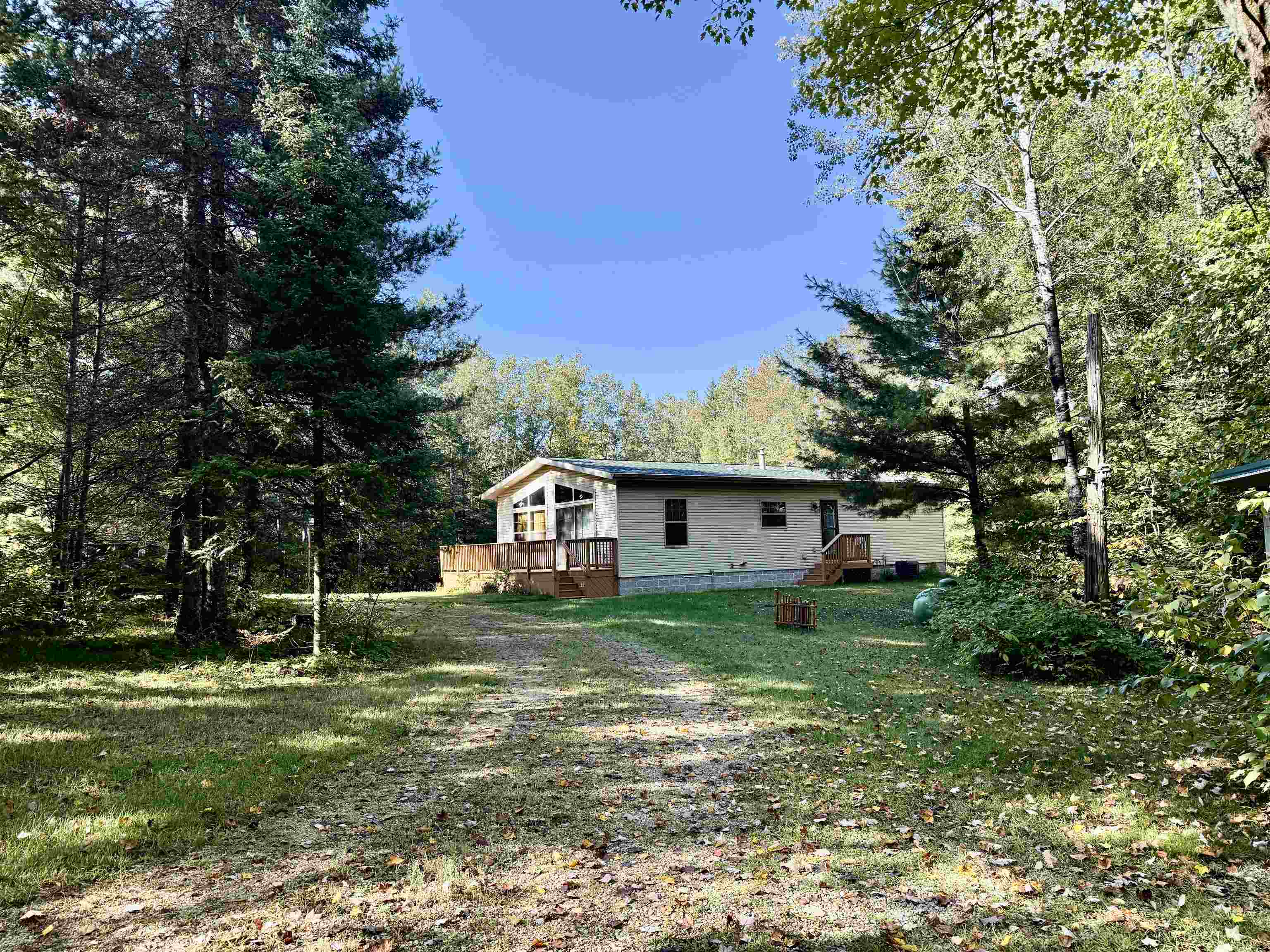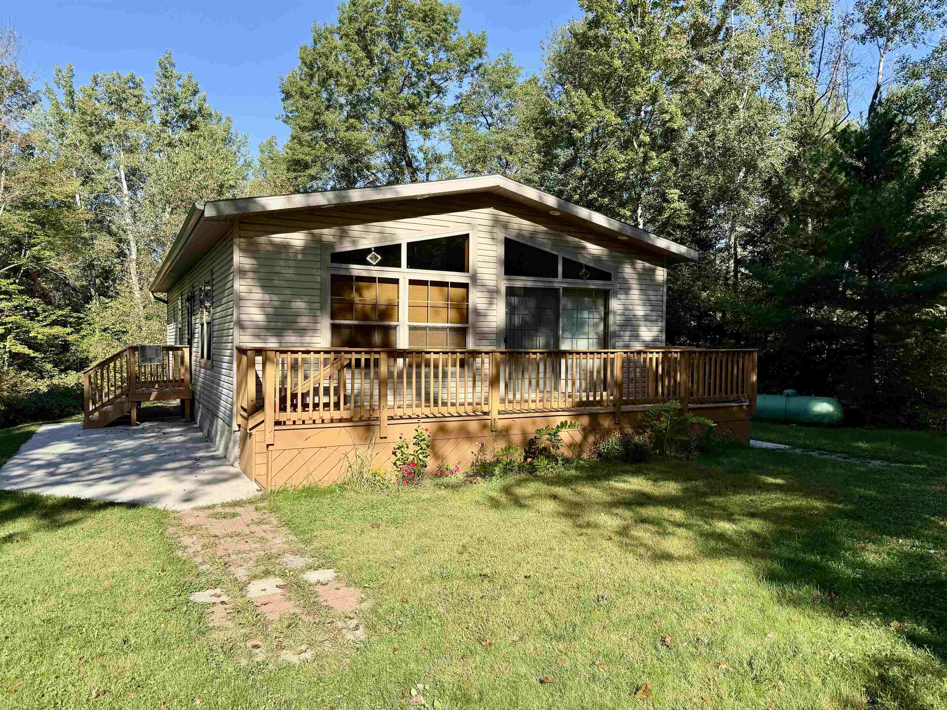Amazing home on 2.07 private acres with circular driveway. This 2 bedroom home has a spacious living room/kitchen/dining area open concept with patio doors leading out to a deck to sit and relax on and enjoy country living. The master bedroom has a full bath plus tub and large walk-in closet, The laundry area is as you walk into the home for your convenience. The appliances will stay. You also have two very large and spacious garages for your vehicles and workshop area in each garage plus plenty of storage area. The home is far enough off the road for your very own privacy. The backyard is very private as well and you can sit and enjoy all types of wildlife. Words cannot describe this home. Come take a look for yourself.