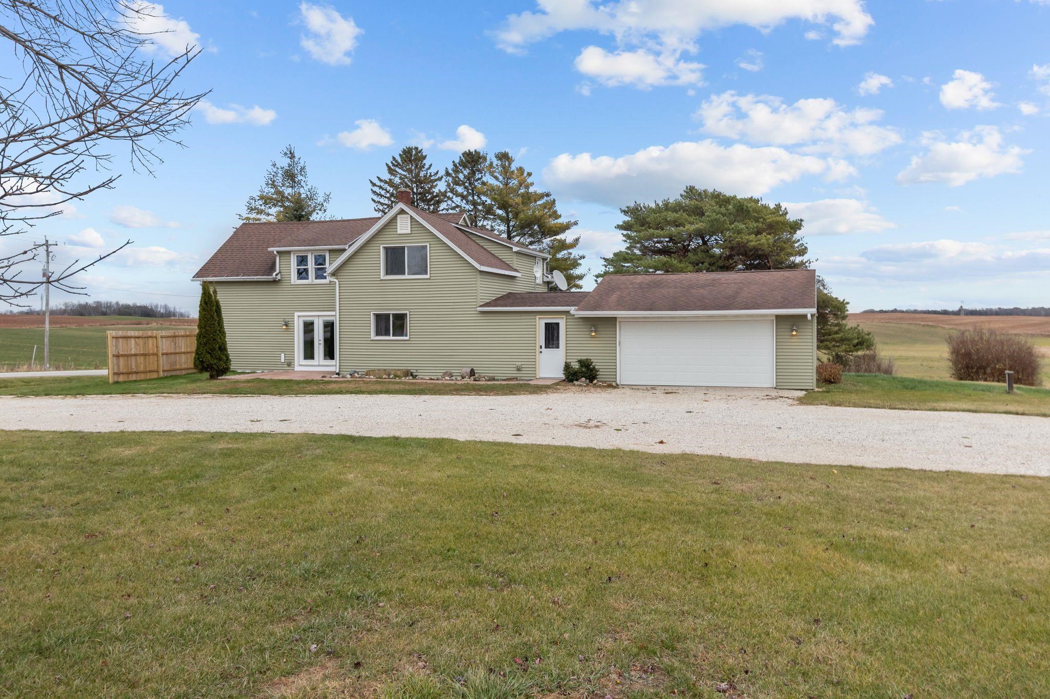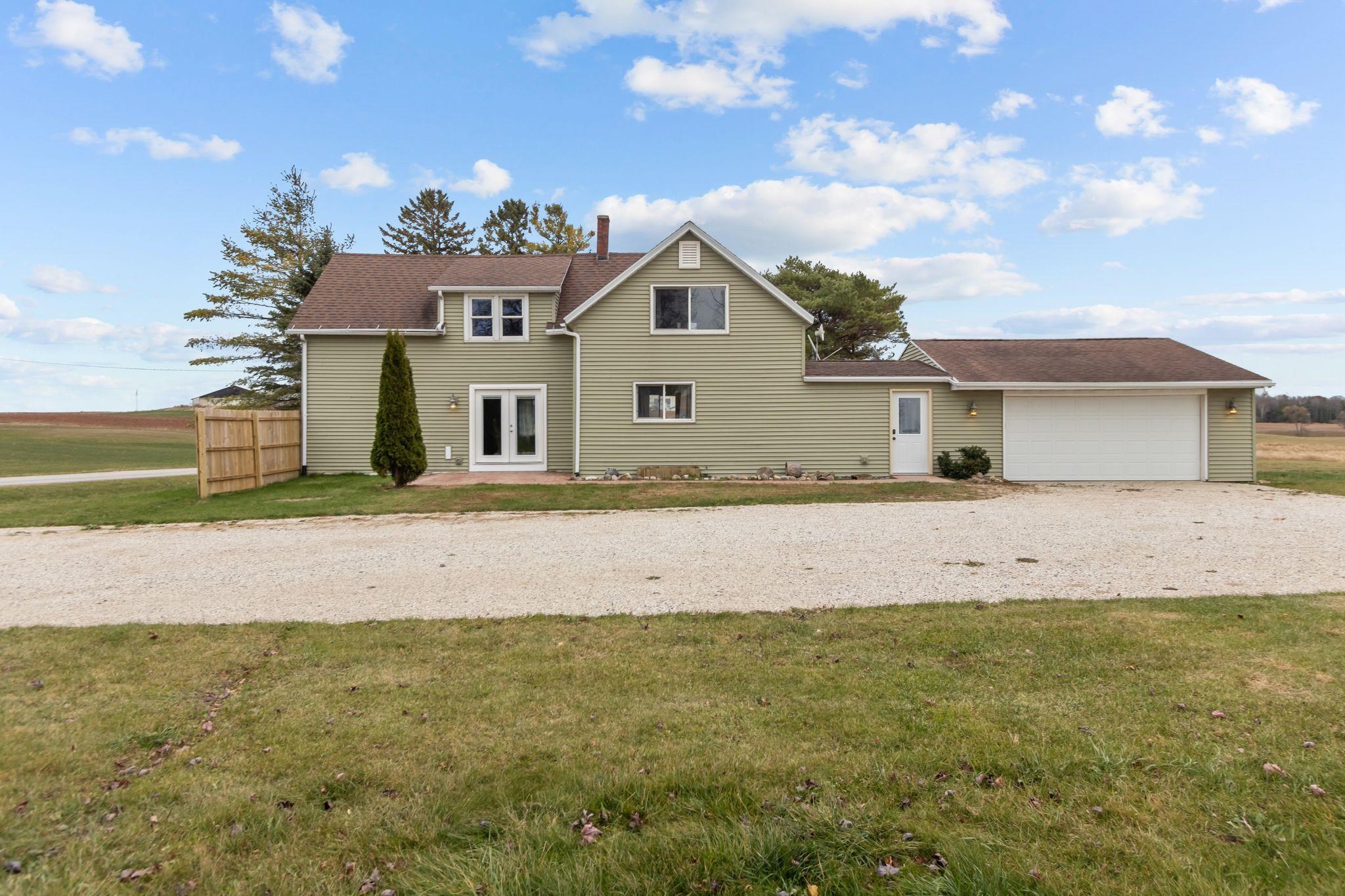 Welcome to your own slice of country charm! This beautifully renovated farmhouse sits on 2.27 peaceful acres, offering plenty of space to relax, garden, or simply enjoy the outdoors. The home features a spacious attached 2.5-car garage plus a 54’ x 40’ detached pole building with power—perfect for hobbies, storage, or a workshop. Recent updates include a new patio door, drywall, flooring, paint, a 30-foot culvert, and power extended to the pole barn. Step inside and you’ll find about 1,400 sq. ft. of warm and welcoming living space. The layout includes three bedrooms—one on the main floor and two upstairs—along with a full bath on the main level and a half bath upstairs. If you’ve been dreaming of a home that combines country living with thoughtful updates, this is the one!