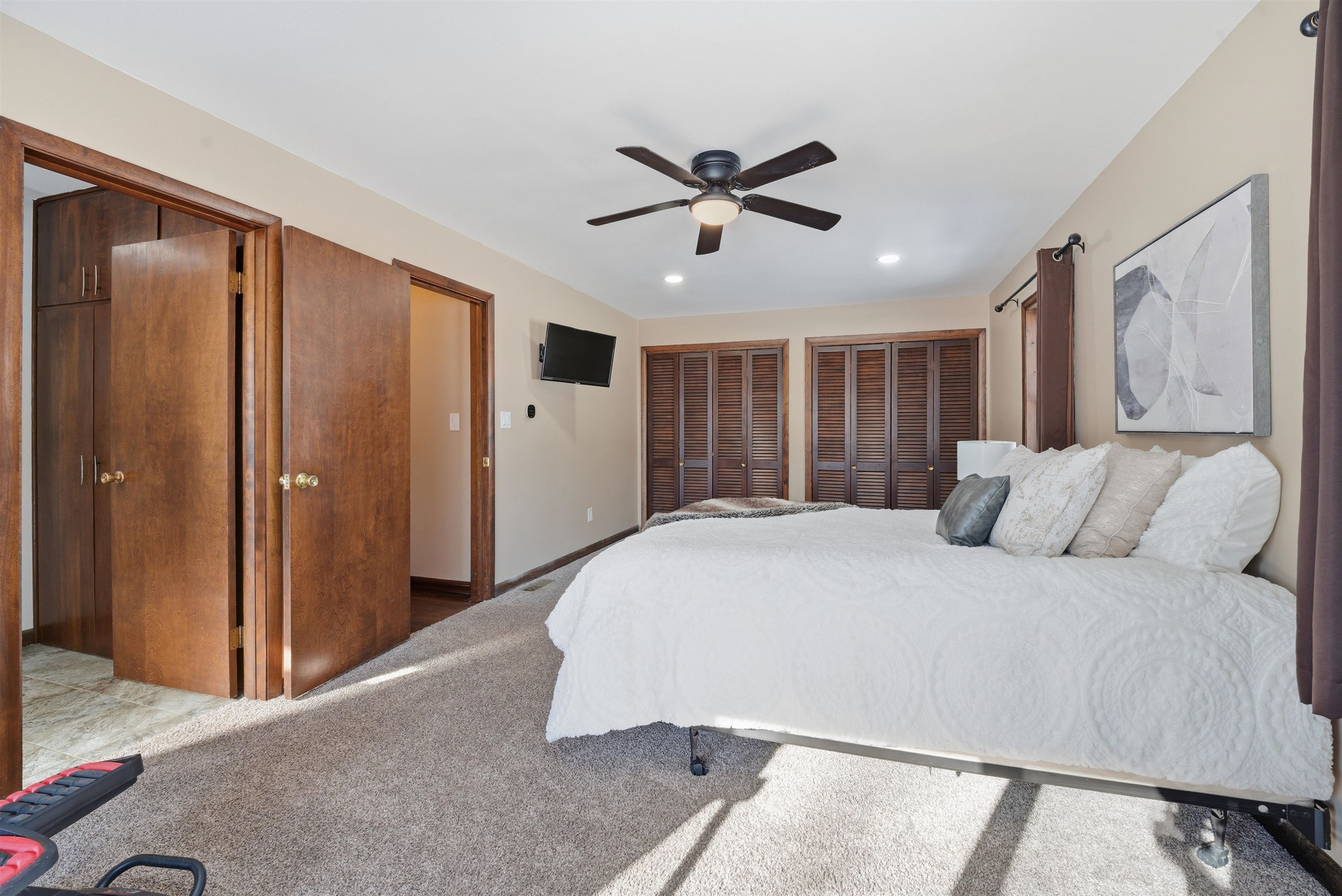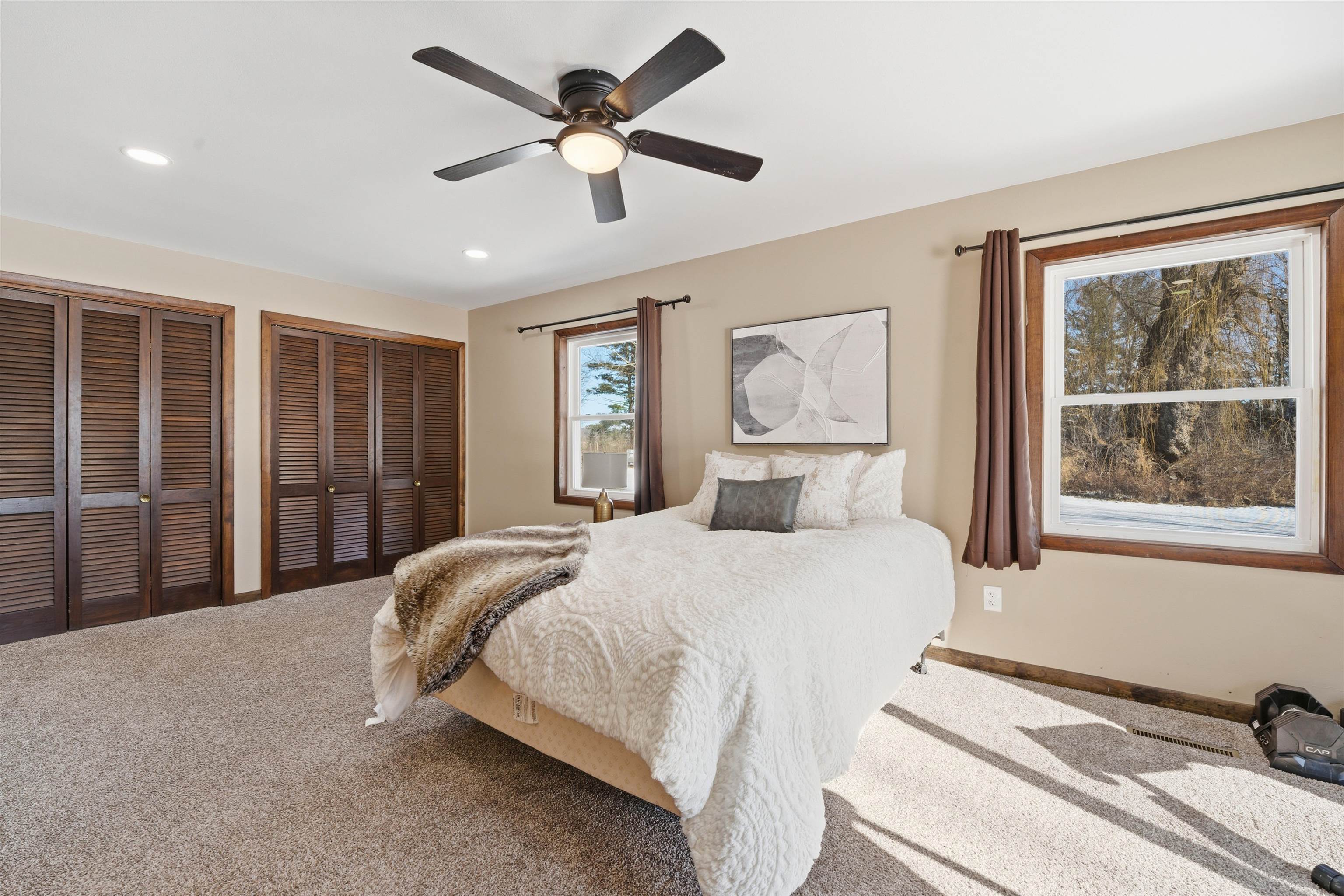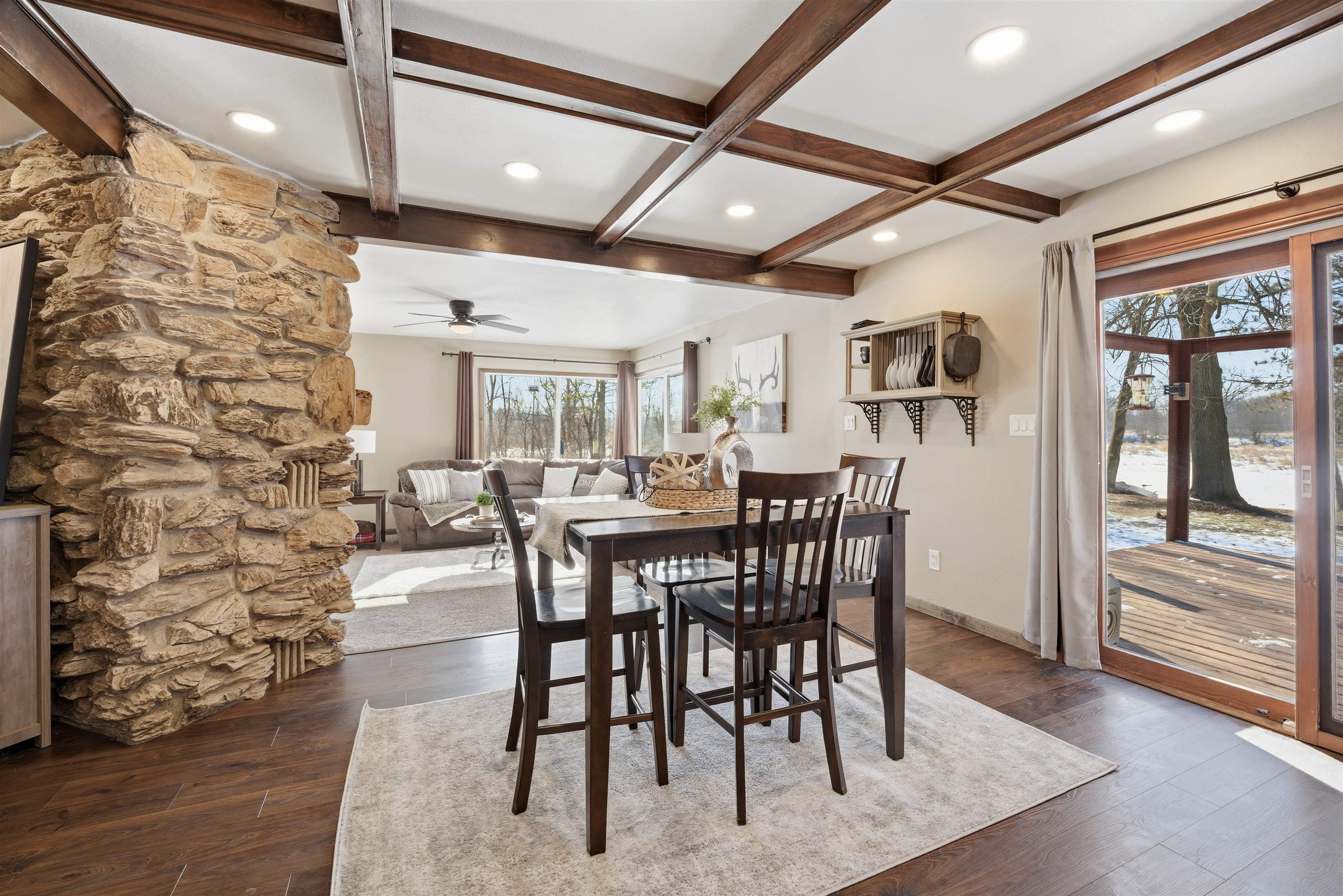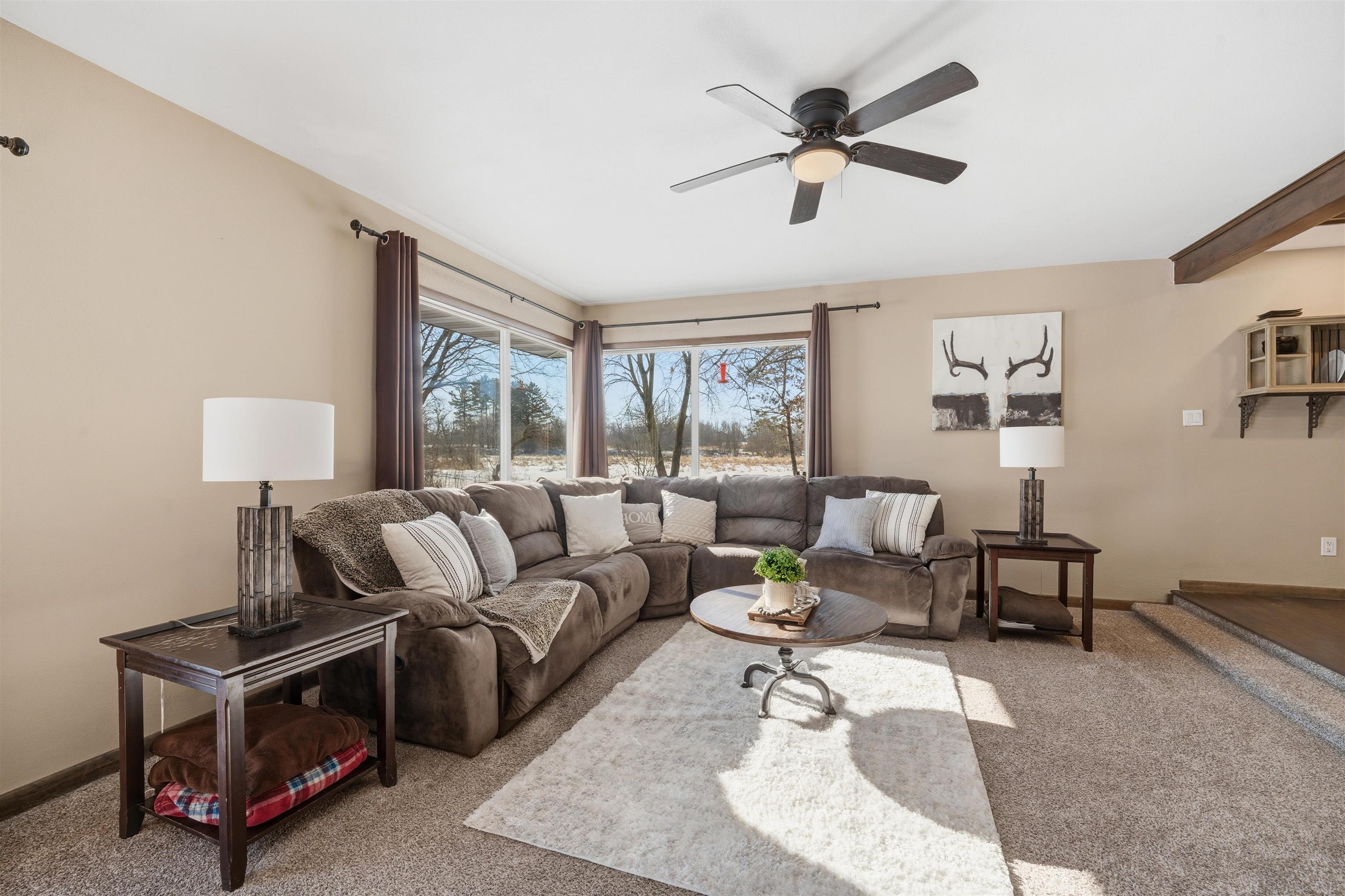 Nicely updated 2-bedroom, 2-bath ranch set on approximately 14+/- acres with Waupaca River frontage. The home features an updated kitchen and bathrooms with a functional layout designed for everyday living and entertaining. Thoughtful interior updates create a warm residential retreat, while the land offers exceptional recreational opportunities right in your backyard. The property includes established food plots, abundant wildlife and productive fruit trees with six apple trees and three plum trees. The lower level features a dedicated gun safe room for secure storage. A large pole shed provides excellent space for equipment, toys and storage. Enjoy the peaceful riverfront living and prime hunting land all in one remarkable property.