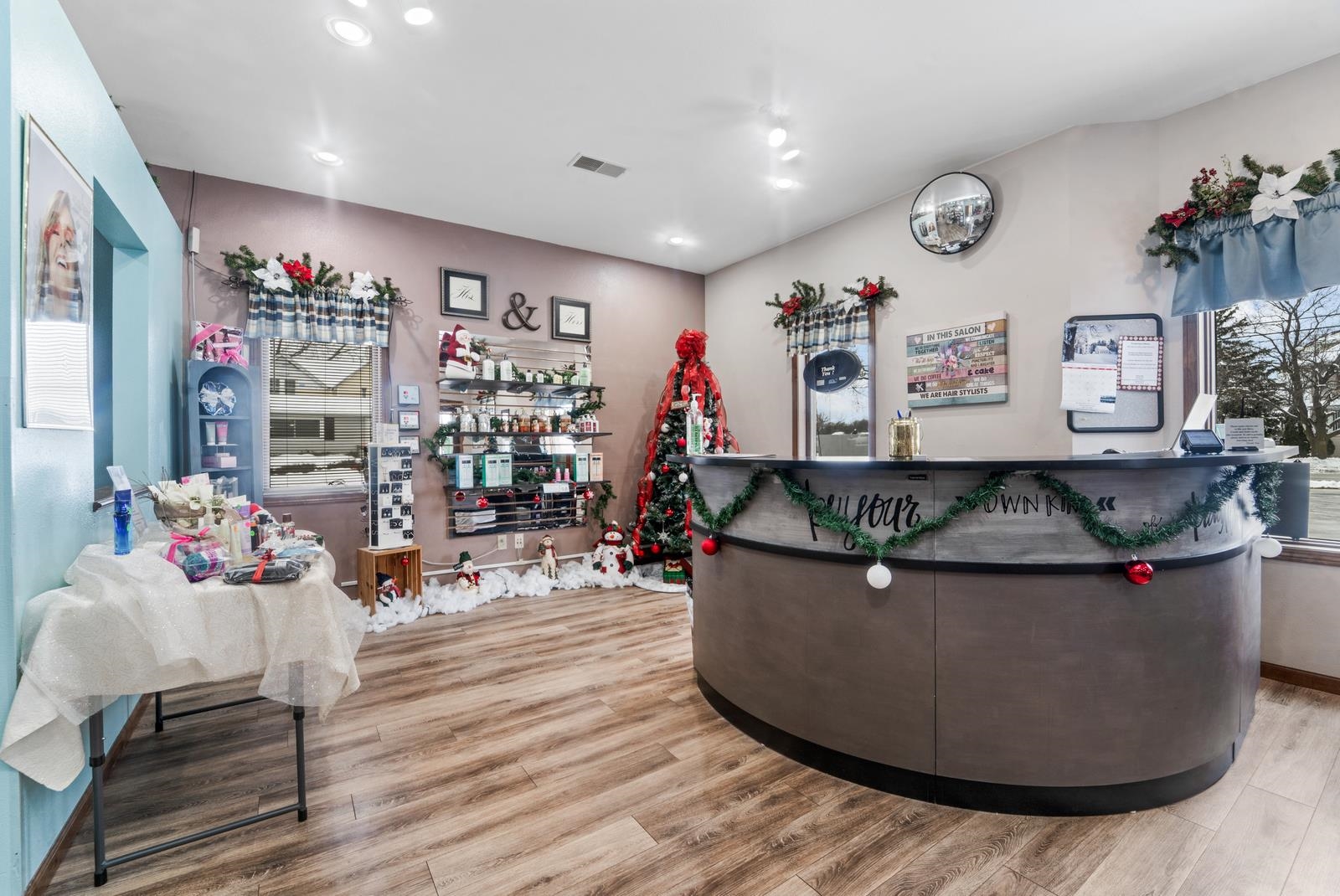 EVERYTHING INSIDE & OUT COMES WITH IT! Motivated seller! Well established, successful & profitable business in Manitowoc County & in Whitelaw! OWNER WANTS TO RETIRE after 25 years in this industry & at this location. It's all wrapped up into one, nice package for you! FULL-SERVICE hair salon w/6 styling stations, hair coloring area w/4 more styling chairs. They do nails & have 2 complete manicure tables & 2 pedicure stations. Generously sized reception & waiting area. 2 tanning rooms plus stand up tanning unit in back...WOW! There is an office room, employee break room, washer & dryer. BIG list of current clients. ZERO entry & quality built building. Per WisDOT traffic count as of 12/2024 average 4900 cars daily go past on Hwy 10 w/90' frontage. Serious buyers only.