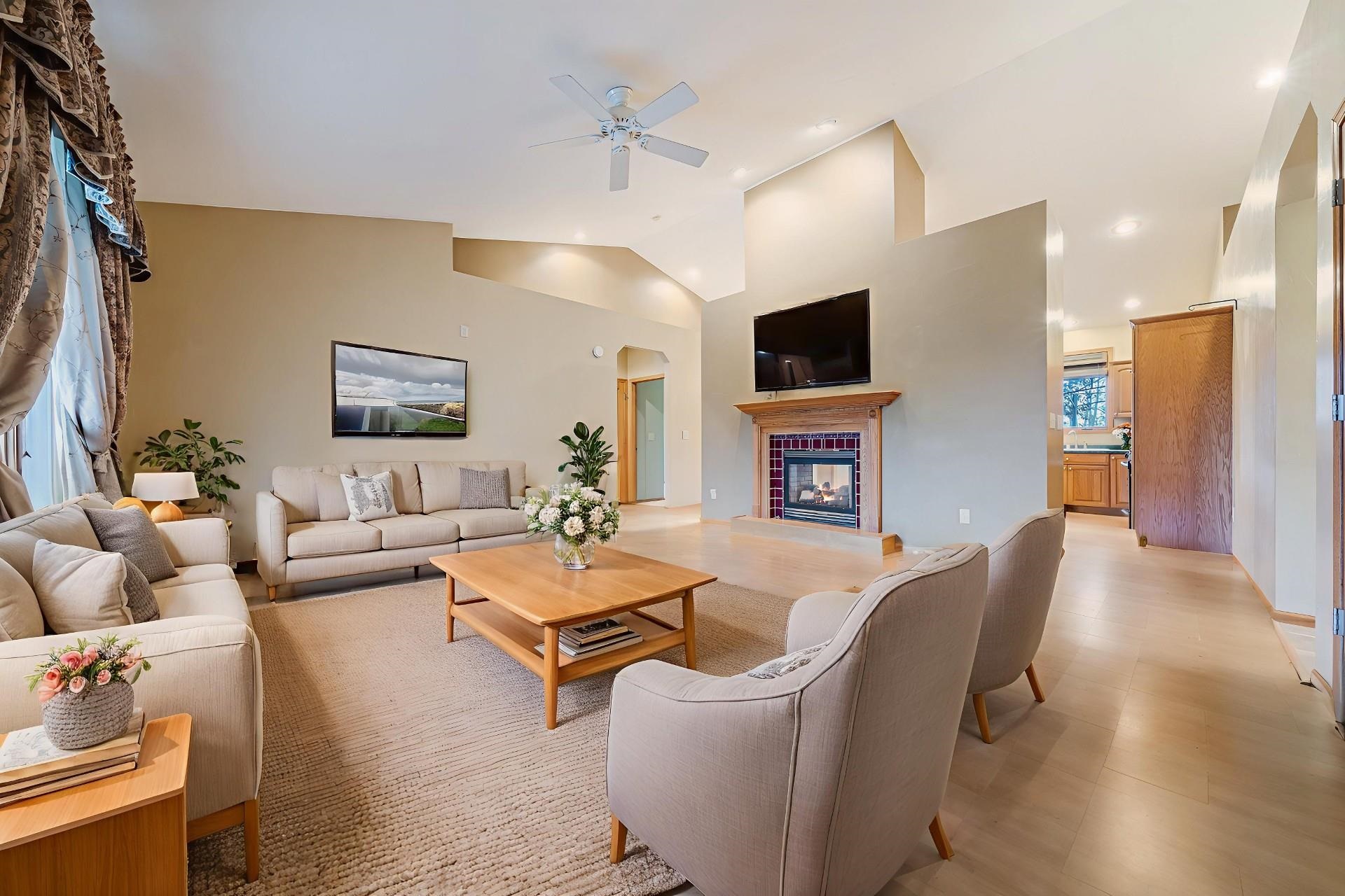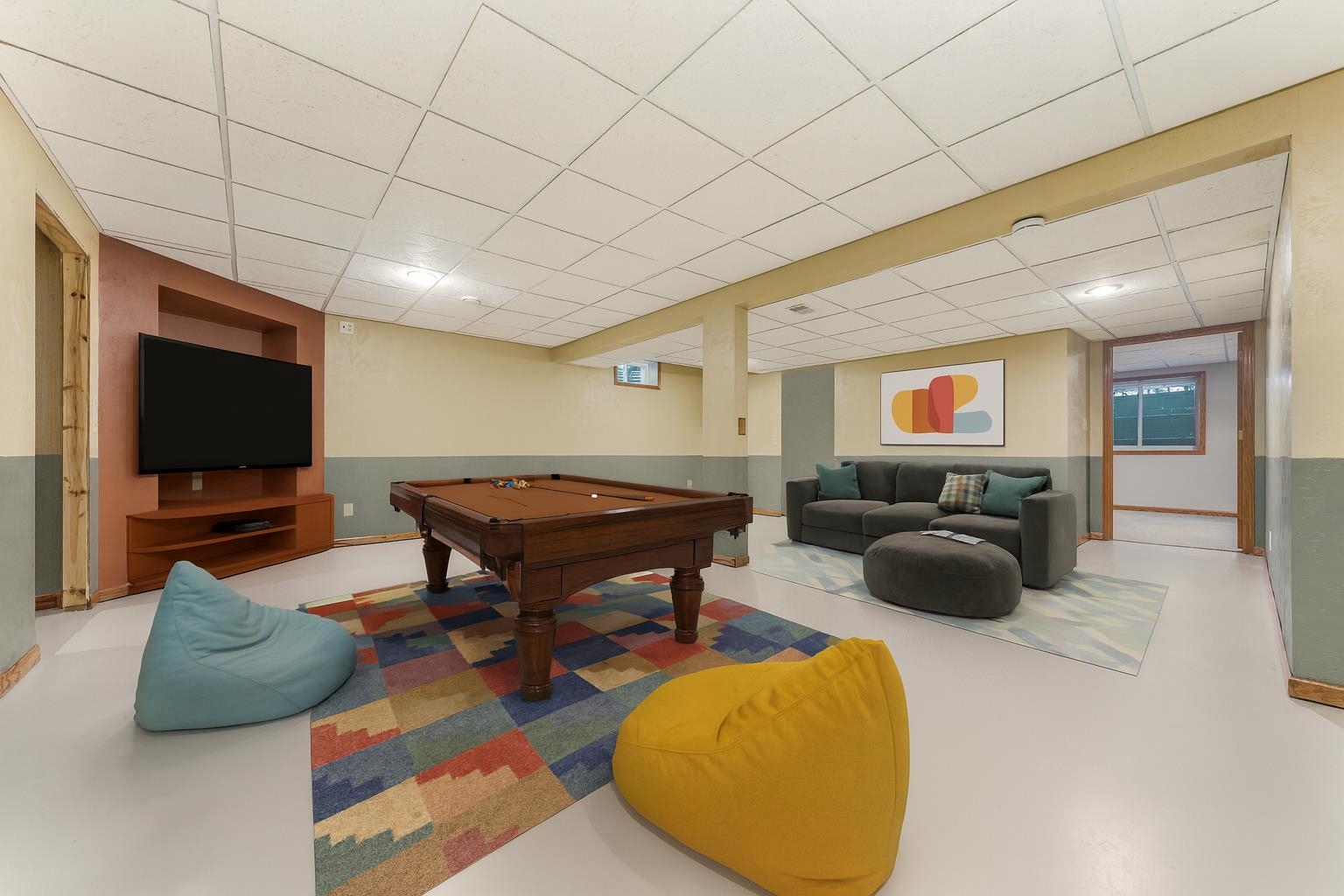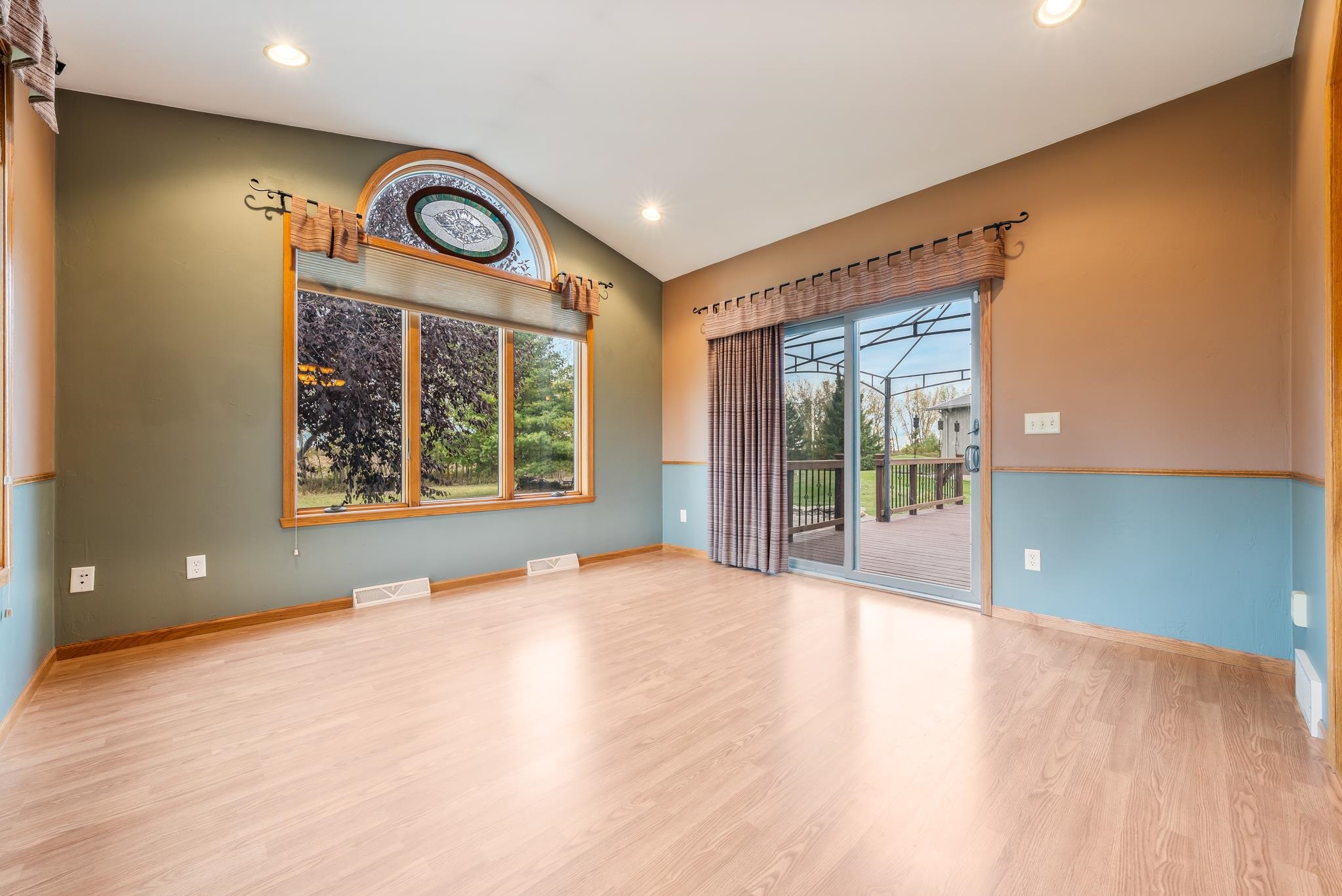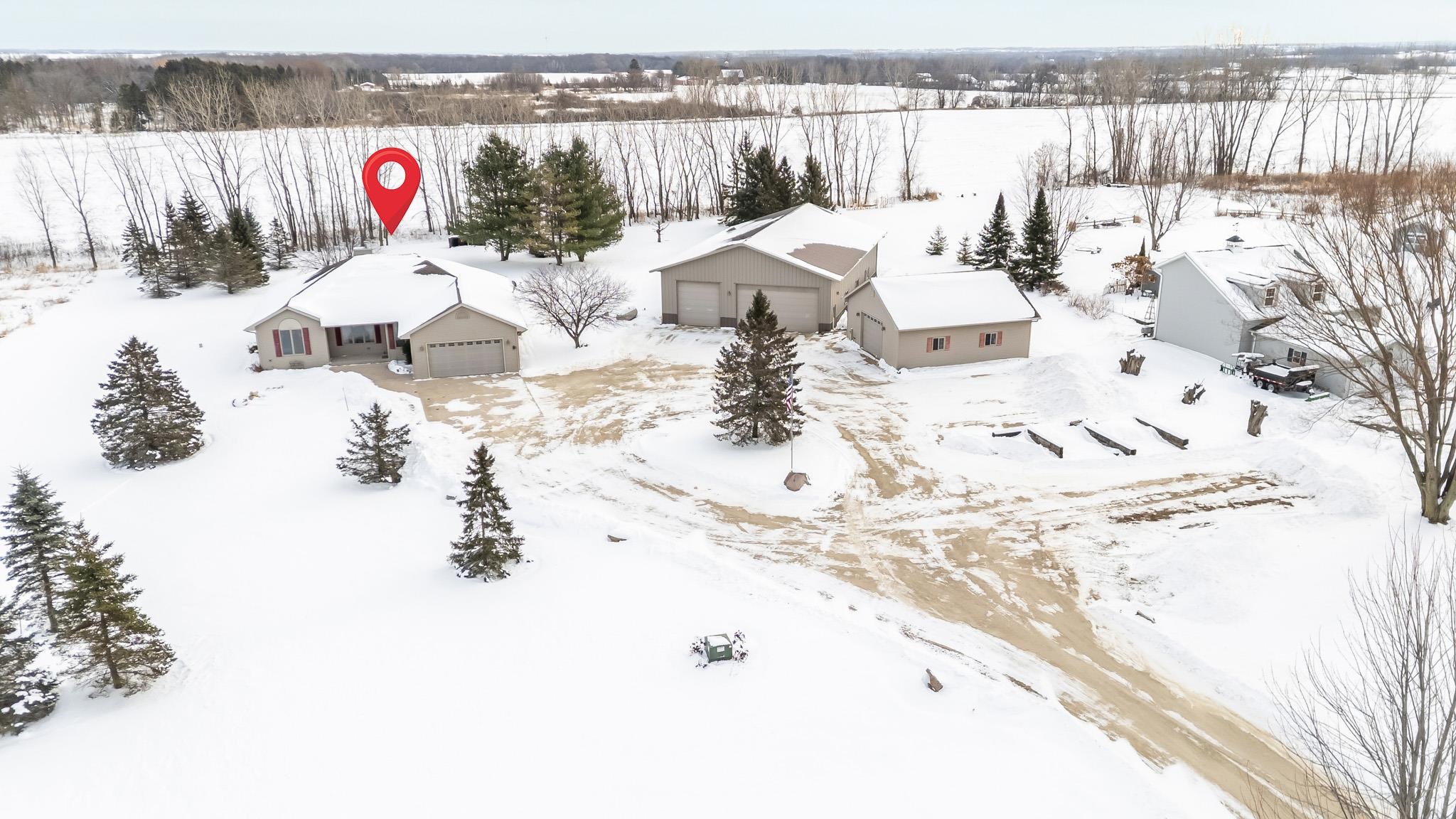 Peaceful country living with space to spread out. Incredibly well maintained 4 bedroom, 3 bath ranch nestled on a spacious 3.5 acre lot. You'll love the inviting sunroom that fills the home with natural light and offers stunning views of the property. Step inside the open kitchen area and see the two way gas fireplace creating a cozy warm space. The lower level boasts a finished room great for entertaining plus a bedroom and full bath. Outside there's room for everything, a massive 40x80 outbuilding providing endless possibilities for storage, hobbies, or a business, plus a 28x32 heated building with a cement floor for a workshop. At night relax around the fire pit area or enjoy time on the newly renovated deck and take in the wildlife. Please note the finished lower floor is painted