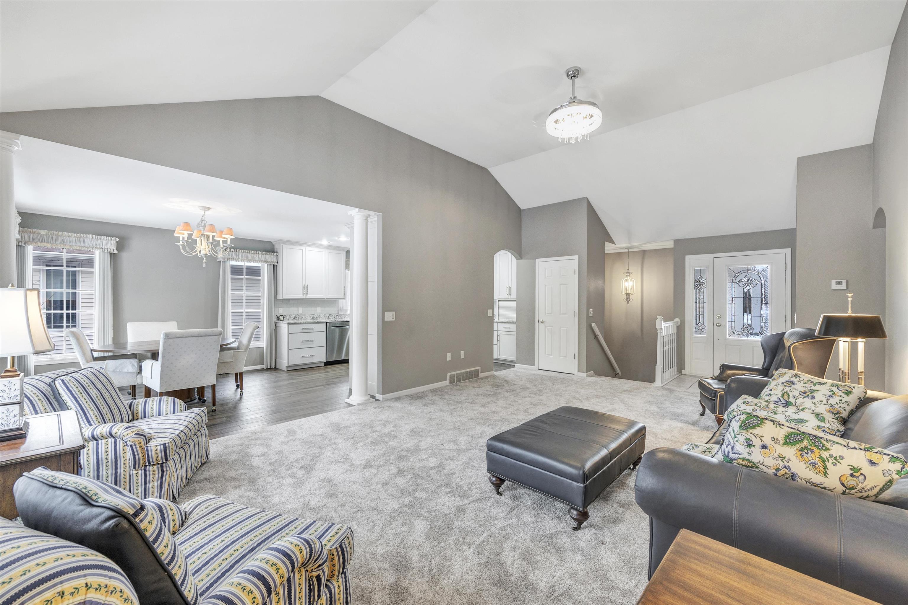 This well-maintained 2-bedroom home offers excellent flexibility with the potential to add a 3rd bedroom in the lower level, which already includes an egress window. The main floor features a full bath and half bath, first-floor laundry, vaulted ceilings, and updated stainless steel kitchen appliances installed within the past few years. The lower level includes an additional full bath, open staircase, bar area, gas fireplace, and a large unfinished storage room. Additional highlights include a fully insulated 2-car garage, zoned heating for both levels, and all new carpet installed in late June 2025. The dining area opens to a deck, patio, and semi-private backyard. Enjoy a short walk to The Ridges Golf Course for golf, dining, or the bar. Licensee is related to Seller and has an interest