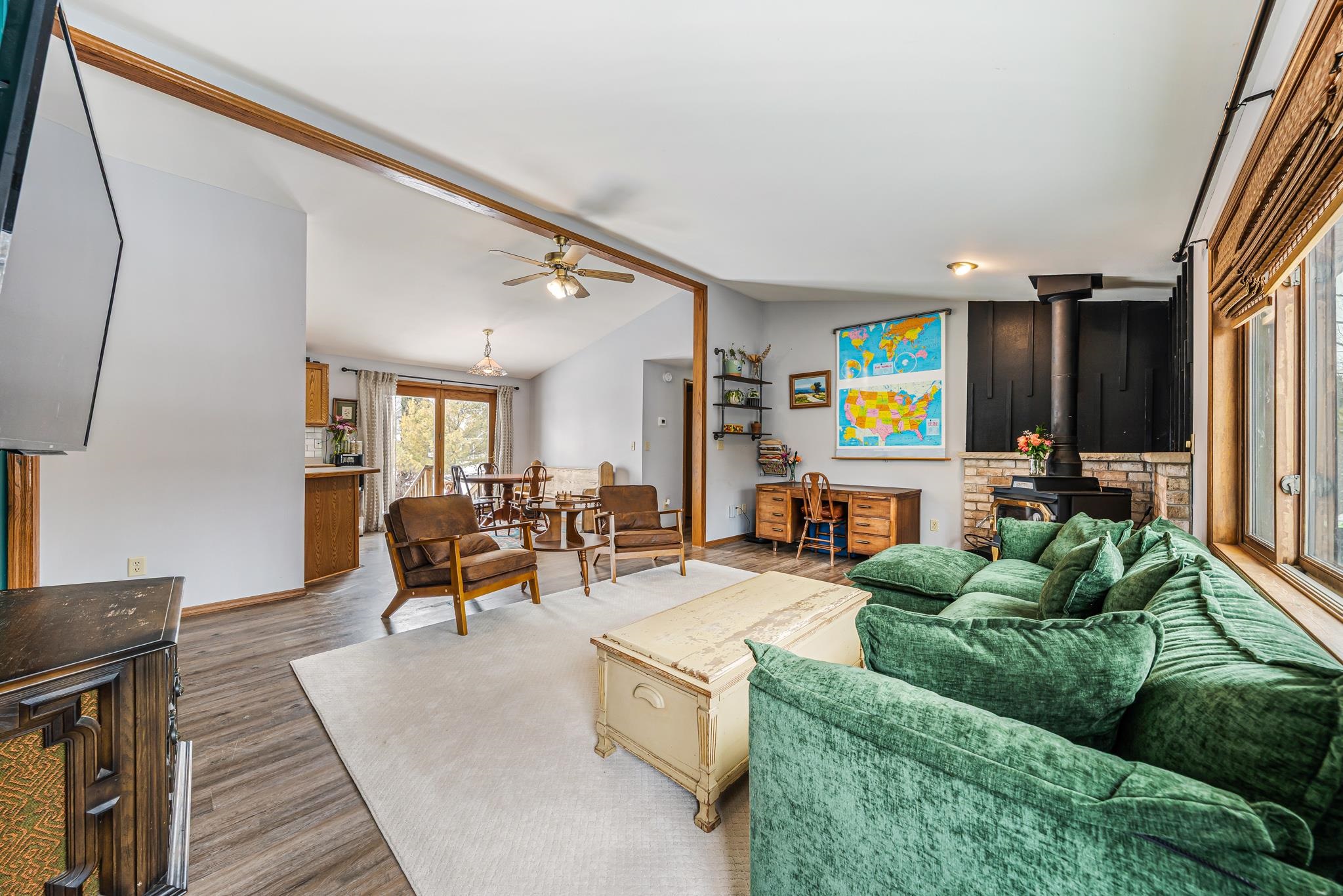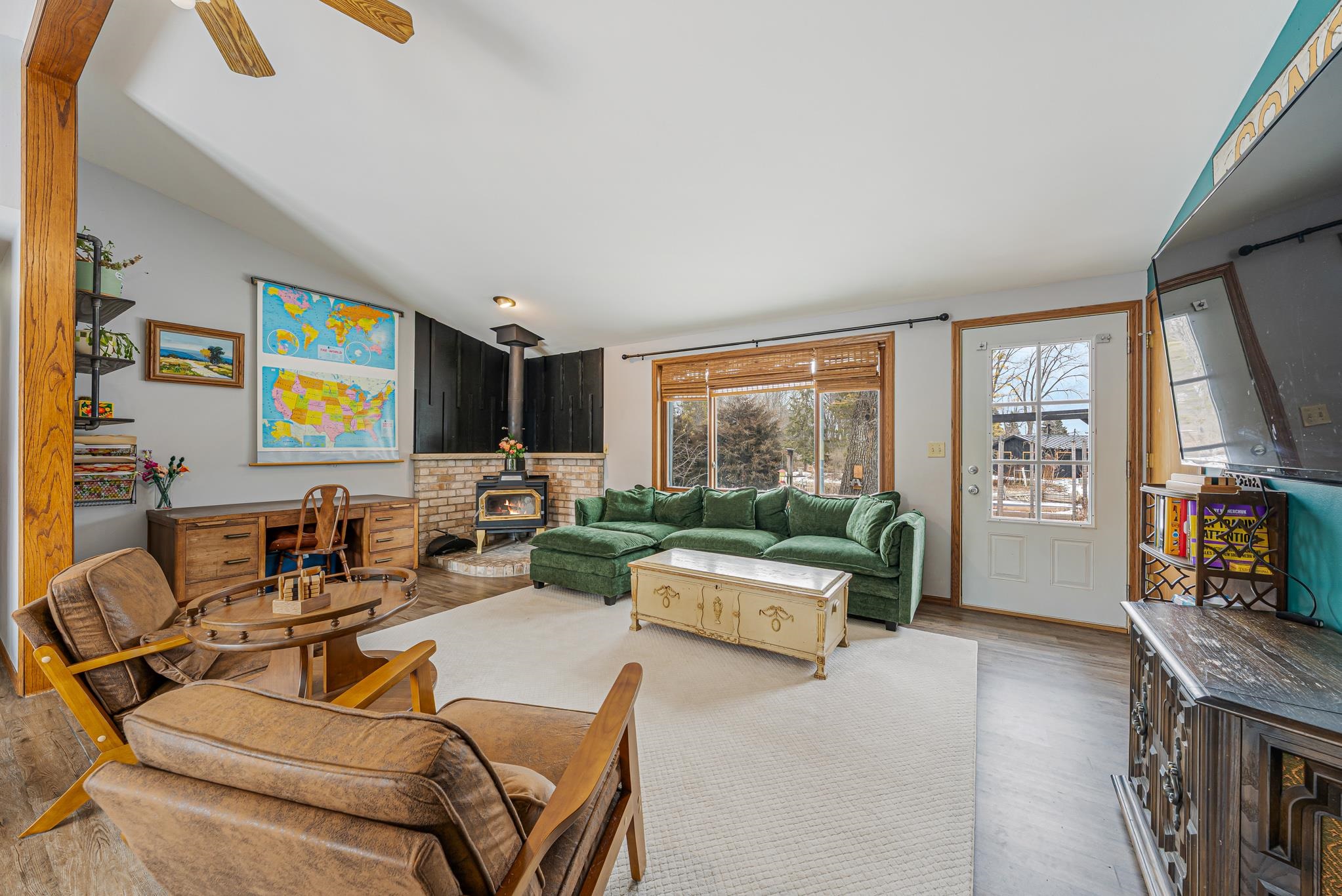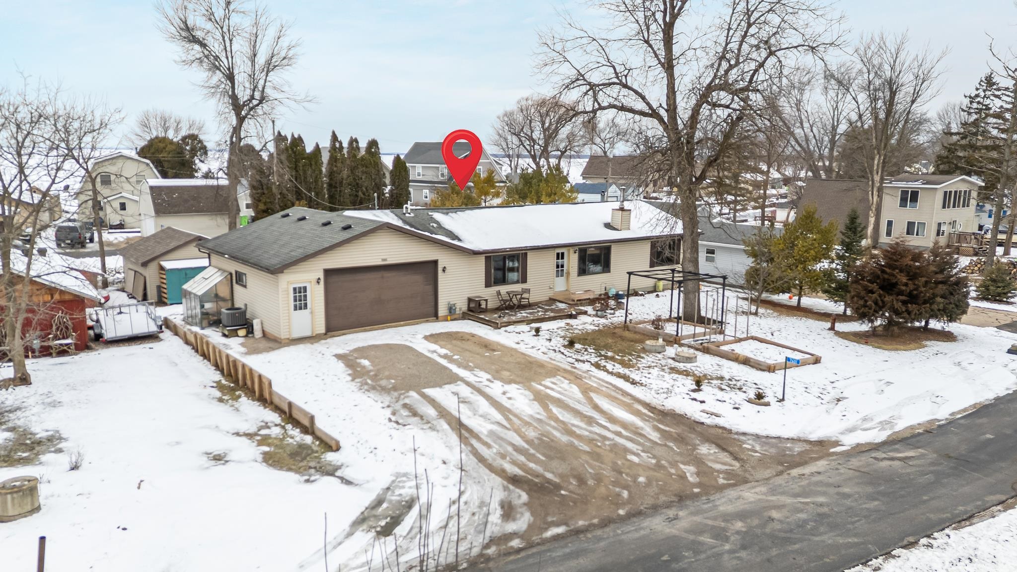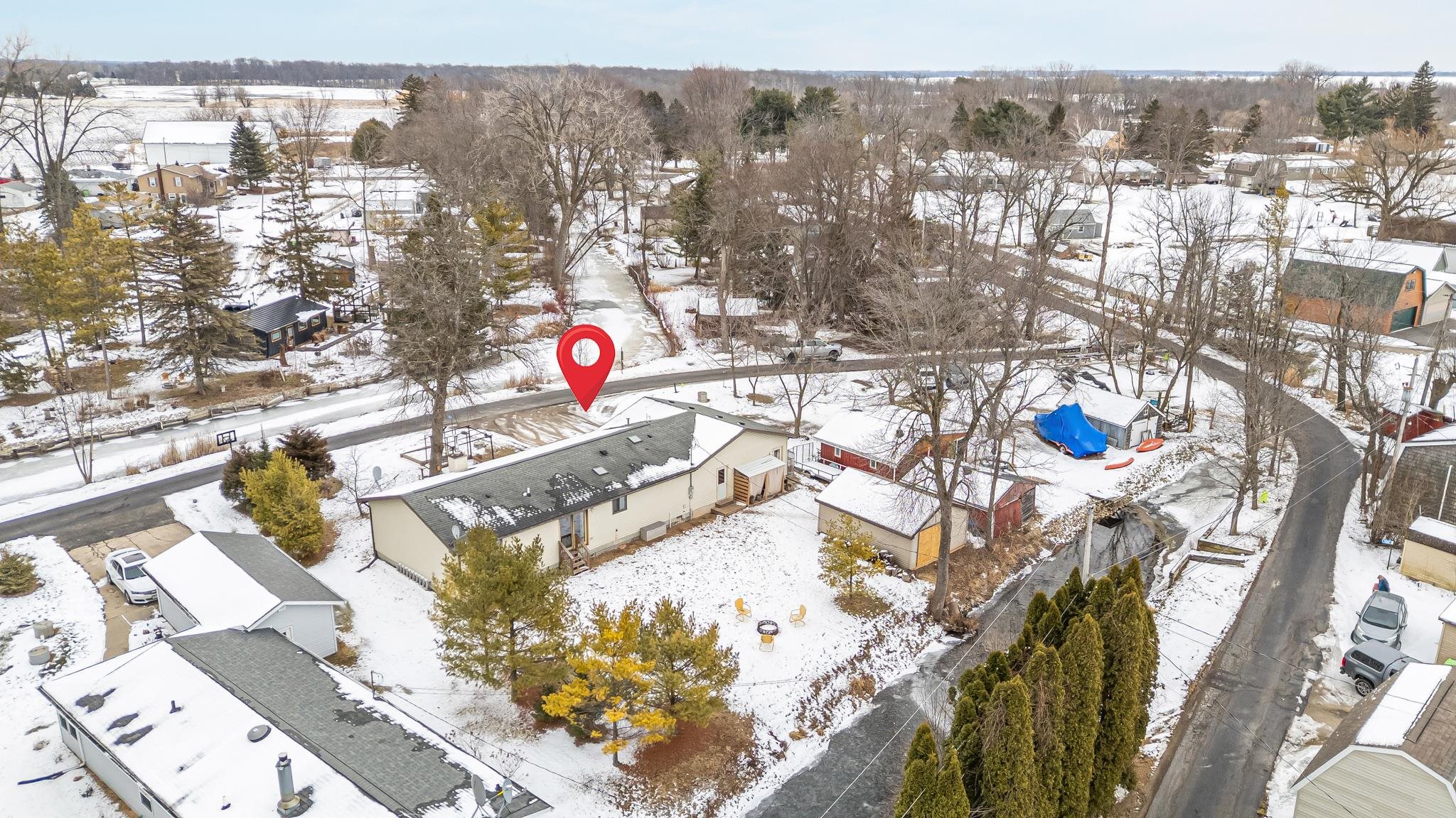 Tucked away on a private road, this ranch home offers peaceful waterfront living with channels on both sides, great for kayaking, duck boats, and enjoying nature right from your yard. The split floor plan features two bedrooms and a full bath on one end, with a private primary suite and ensuite on the other for added comfort. Vaulted ceilings and a cozy wood-burning fireplace create a warm, inviting main living space. Major updates include a furnace and AC installed in 2021 and a new water softener in 2026, giving buyers added peace of mind. Located in a quiet neighborhood just a short distance to the boat launch. Seller is a licensed Realtor