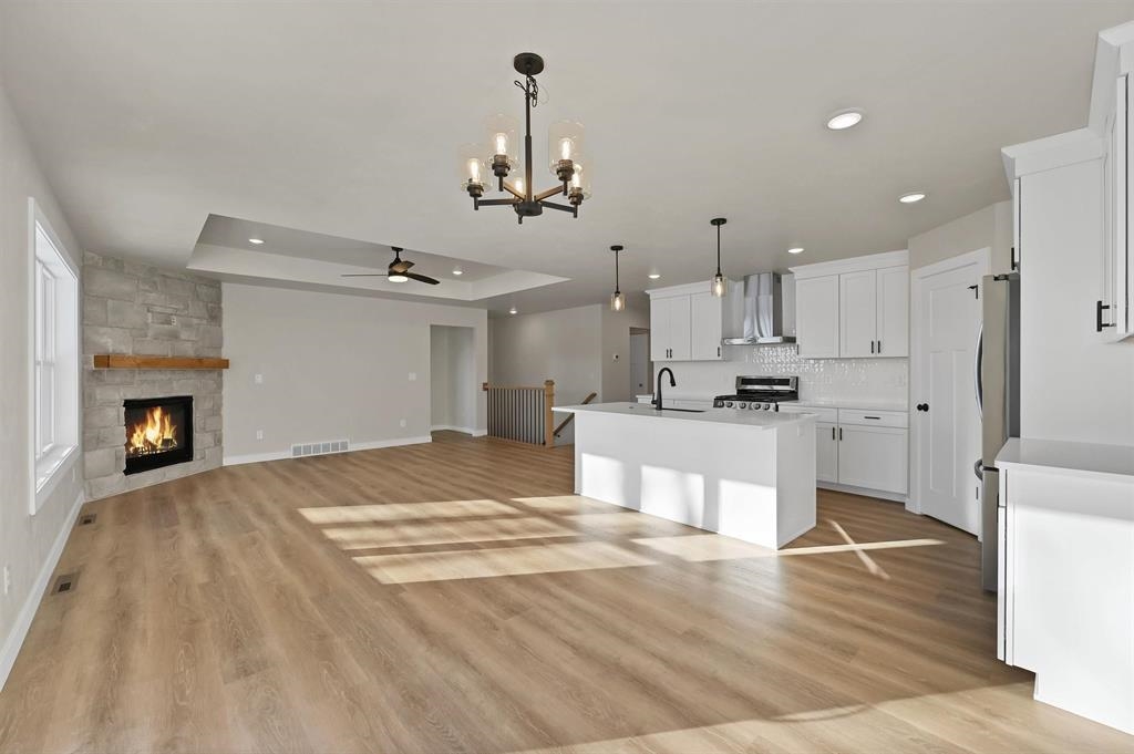 Discover a stunning new home ideally positioned between Appleton and Green Bay, nestled in the coveted Royal St. Patrick’s golf community. This thoughtfully designed residence offers a bright, open living experience comfort from the moment you step inside. Kitchen featuring a walk-in pantry, abundant natural light, soft-close cabinetry, and a large island that overlooks the great room. Stone fireplace framing a cozy, inviting living space. Split bedroom layout for the primary suite and guest bedrooms. Primary suite with a generous walk-in closet and bathroom featuring double sinks, and a large shower. Home is located within walking distance of the community park and clubhouse. *Home finishes will be similar to pictures shown*