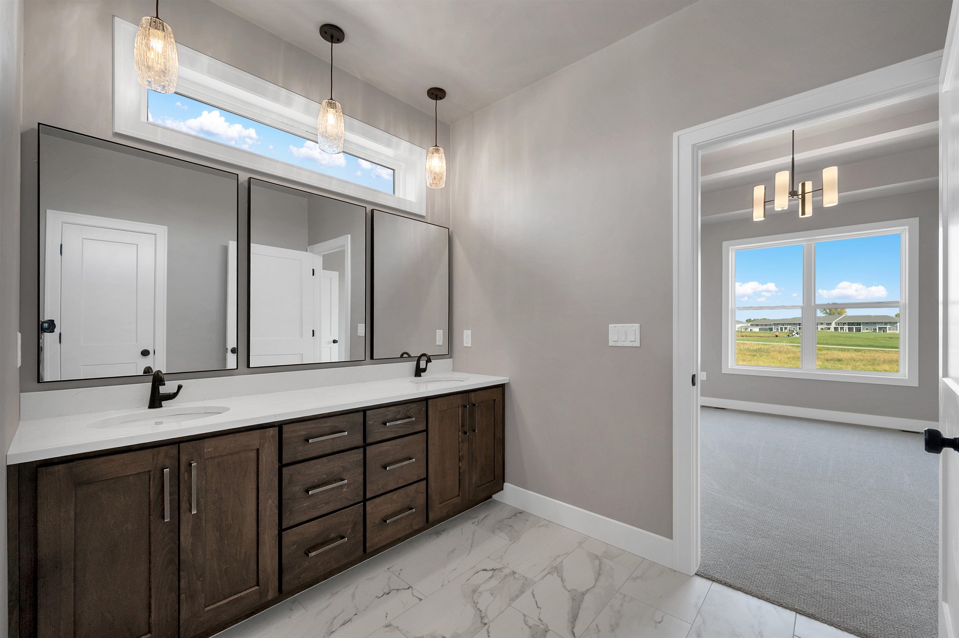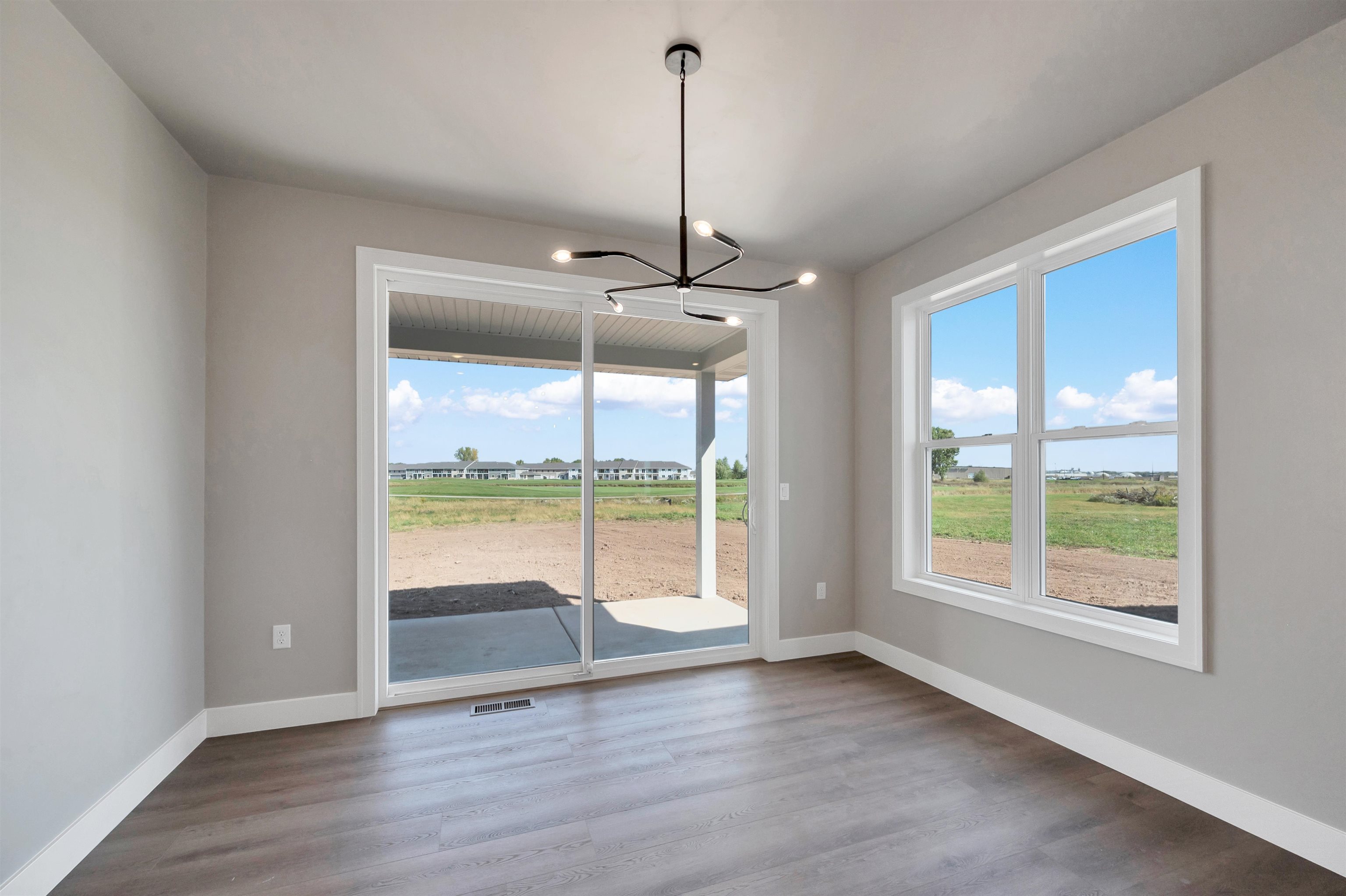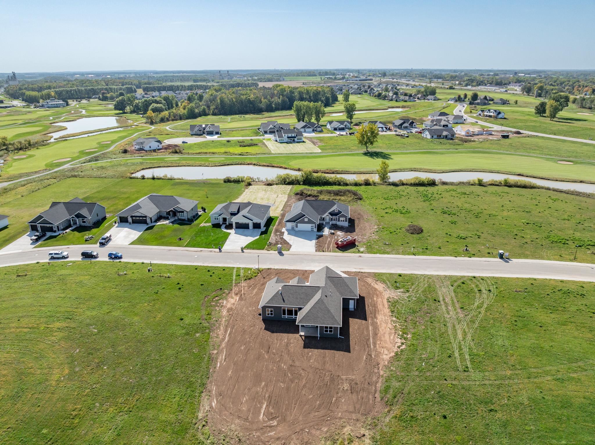 Experience refined living in this stunning new build by Bartolazzi Custom Builders. Enjoy living directly on Royal St. Pats Golf Course. Designed for elegance and comfort, the open-concept layout boasts a great room with a gas fireplace and coffered ceilings, flowing seamlessly into a chef’s kitchen with a center island and walk-in pantry. The luxurious primary suite features a tray ceiling, spa-inspired en-suite with dual vanities, walk-in shower, and an walk-in closet. Two additional bedrooms, a full bath, front office/den, half bath, mudroom, and laundry complete the main level. The lower level offers future potential with a bathroom rough-in. A 3.5 car garage with basement access and a covered back patio over looking the golf course. Photos are virtually staged.